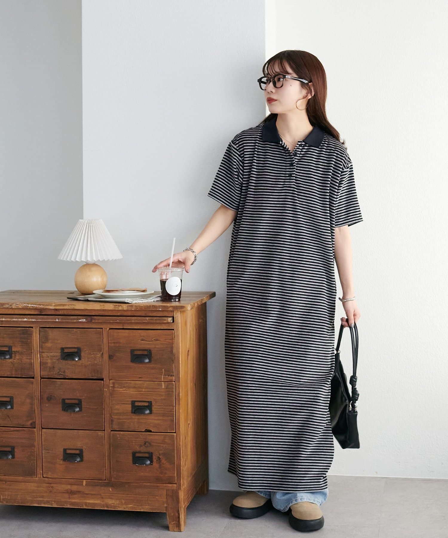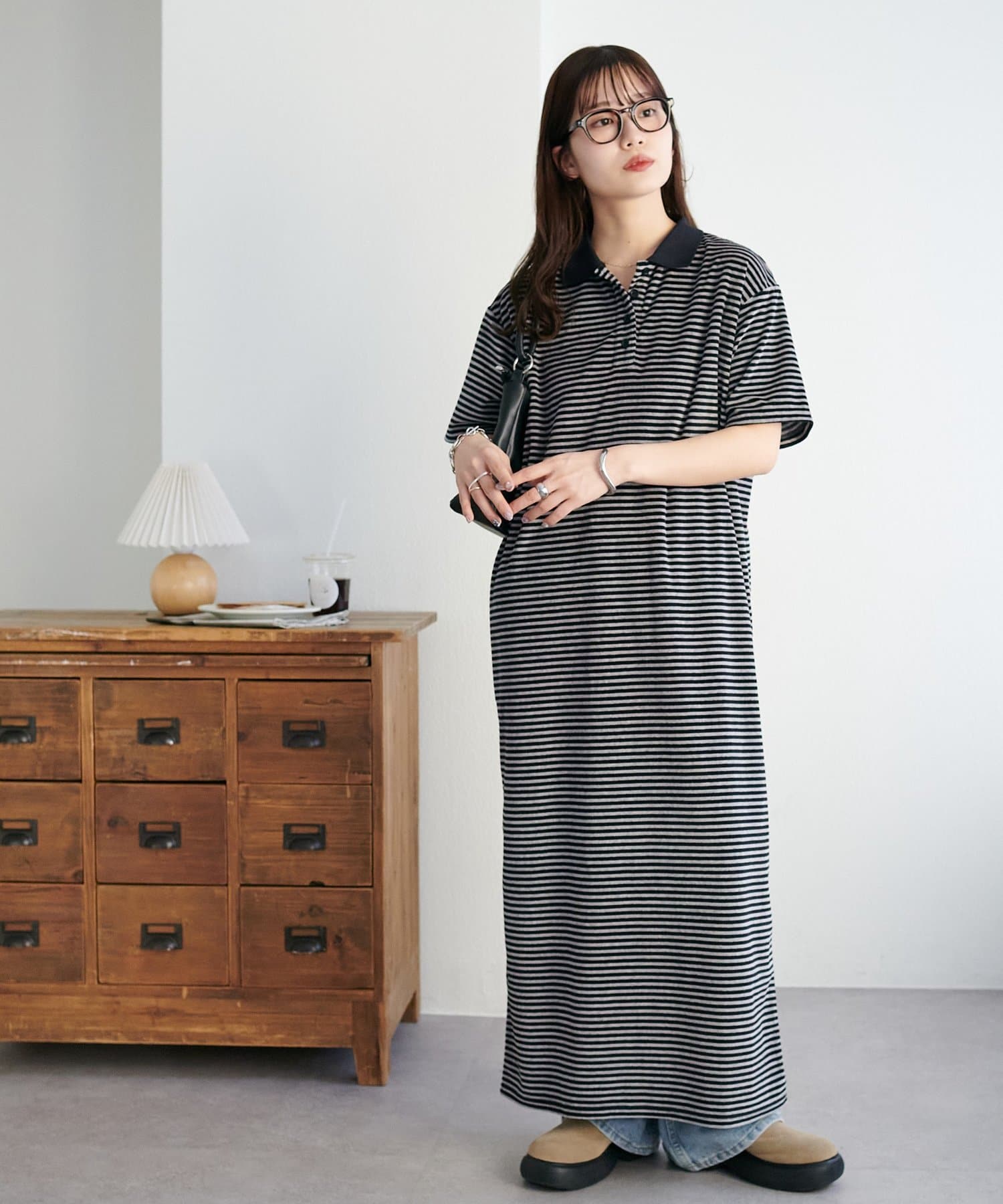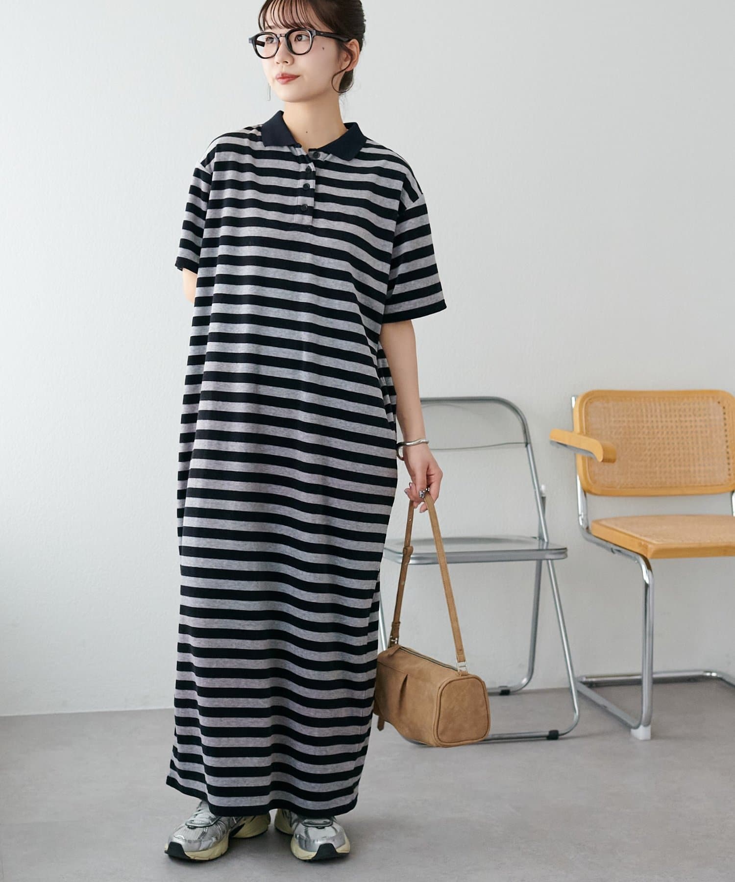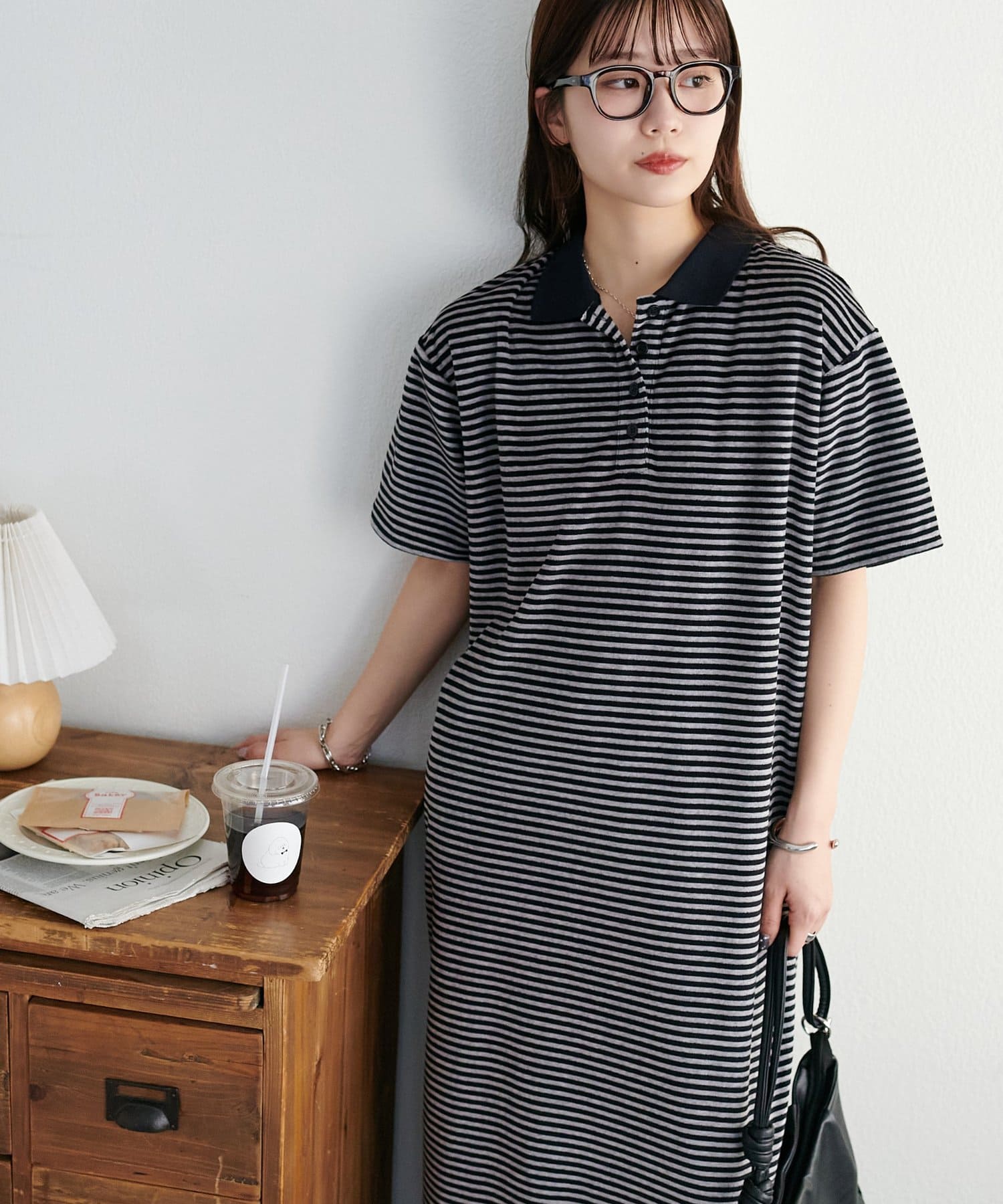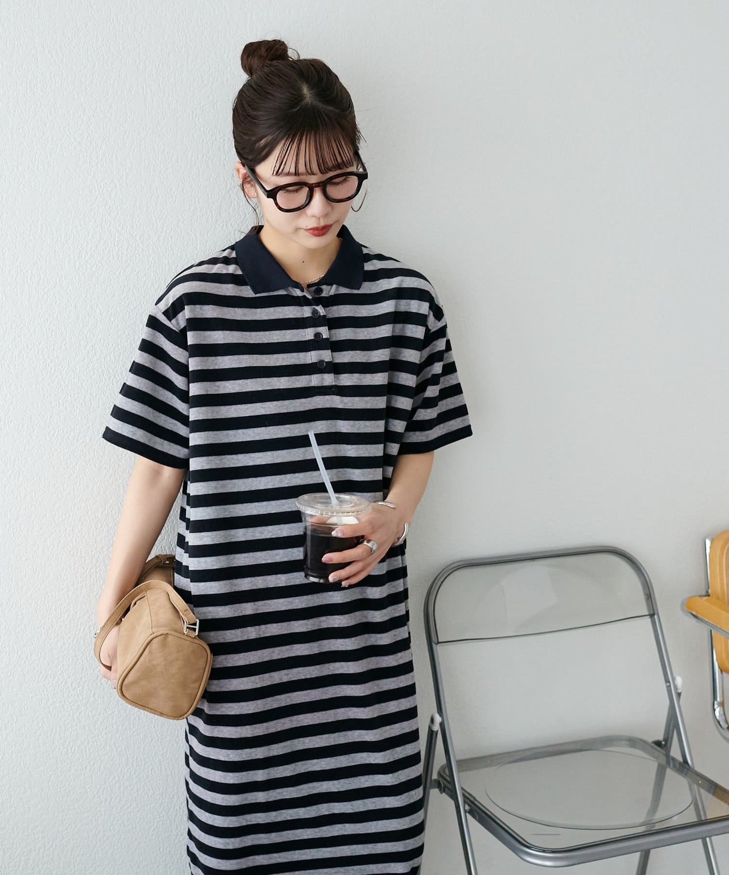 一枚で着こなしが決まる♪爽やかなボーダー柄のポロワンピース