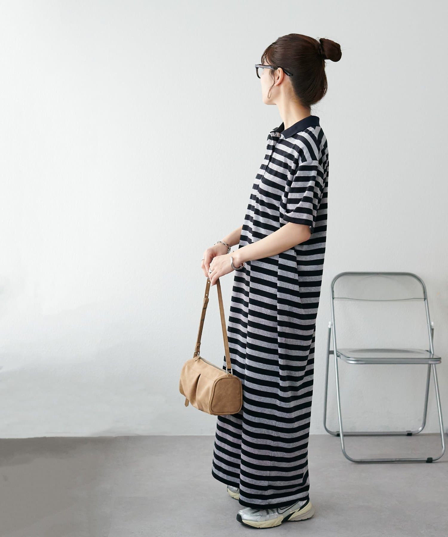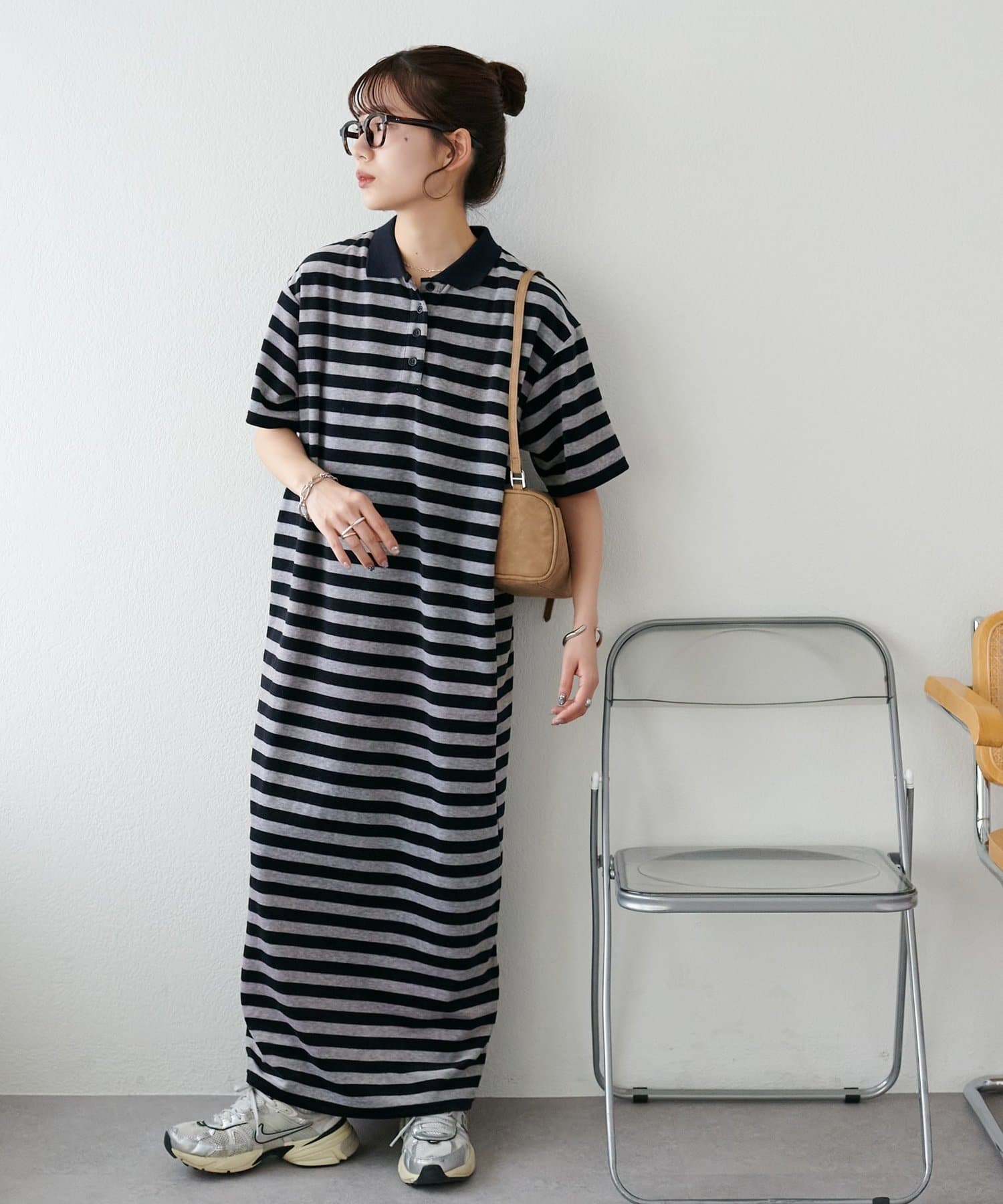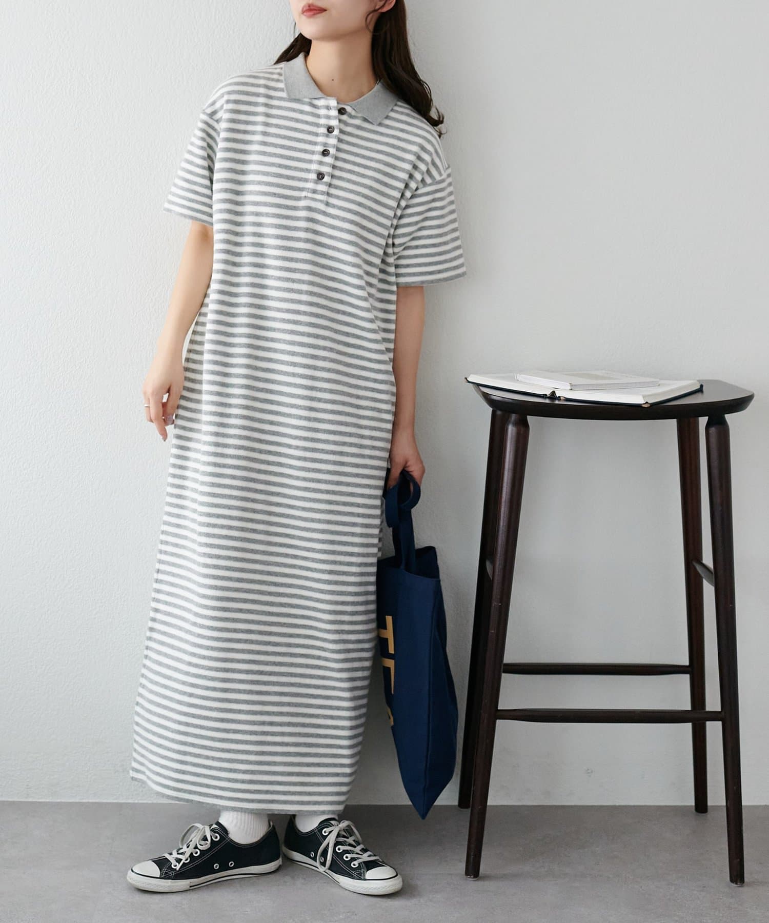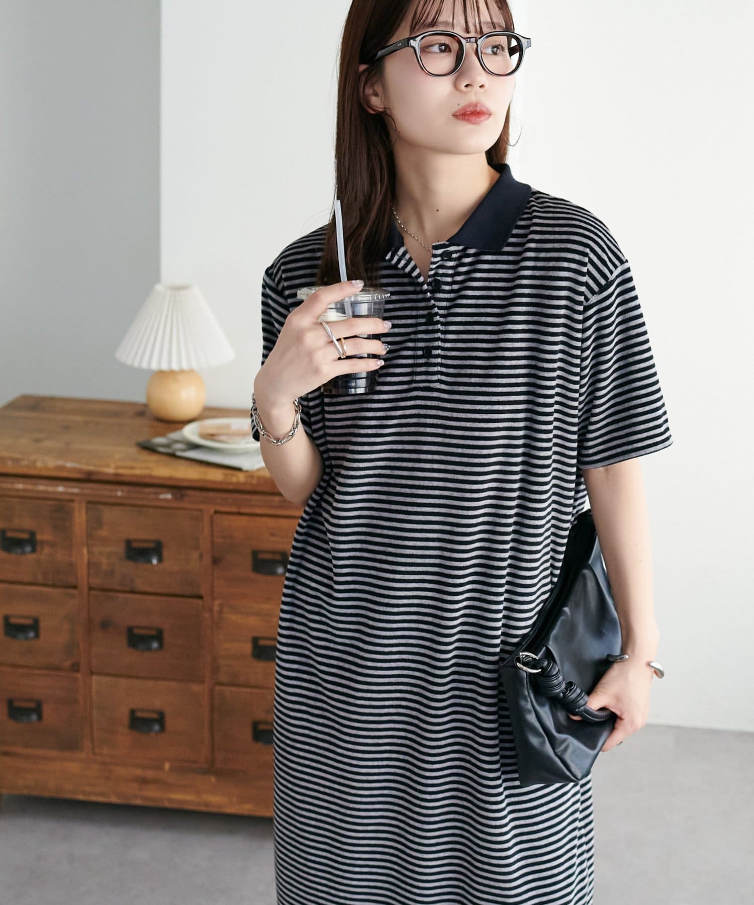 一枚で着こなしが決まる♪爽やかなボーダー柄のポロワンピース