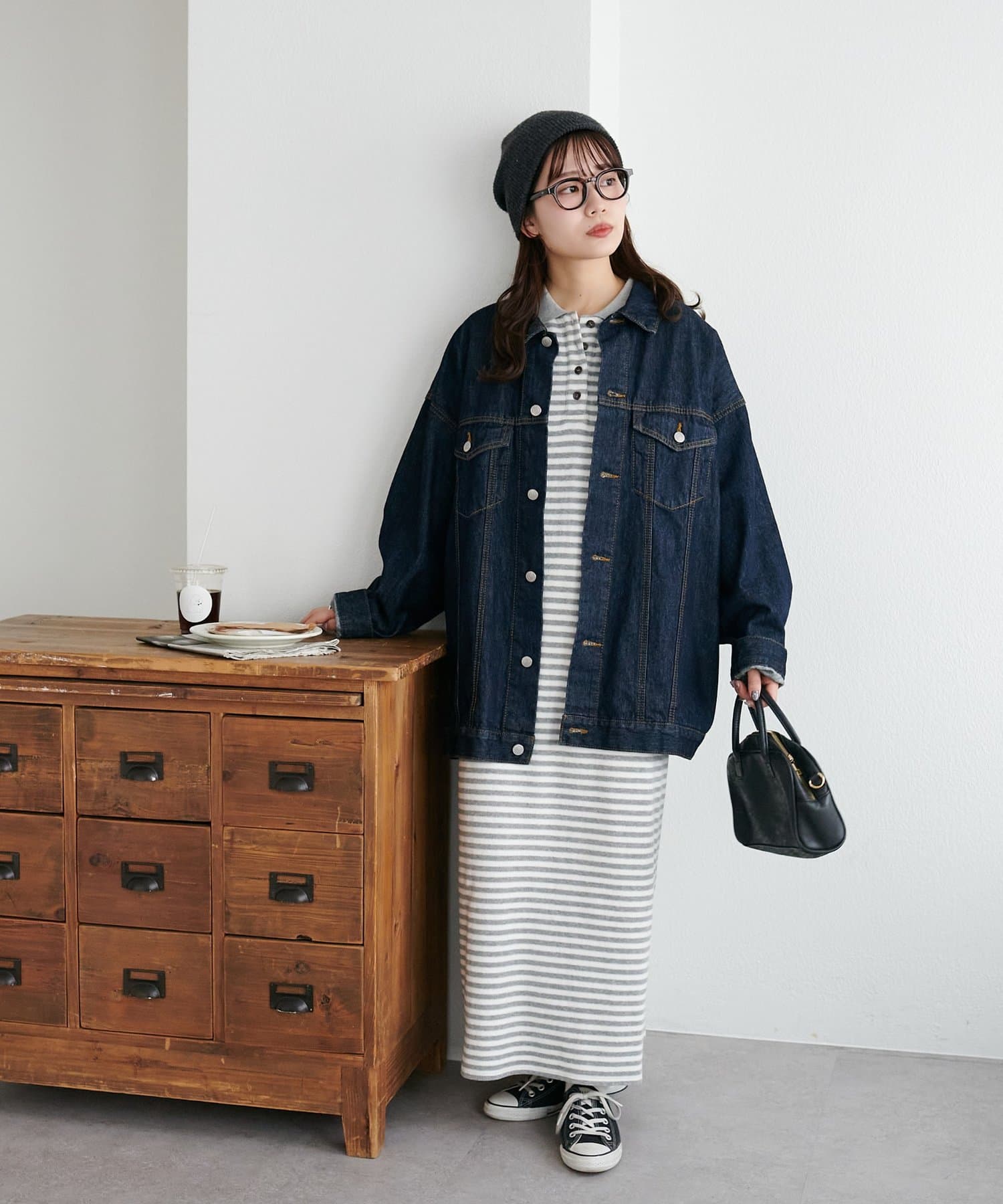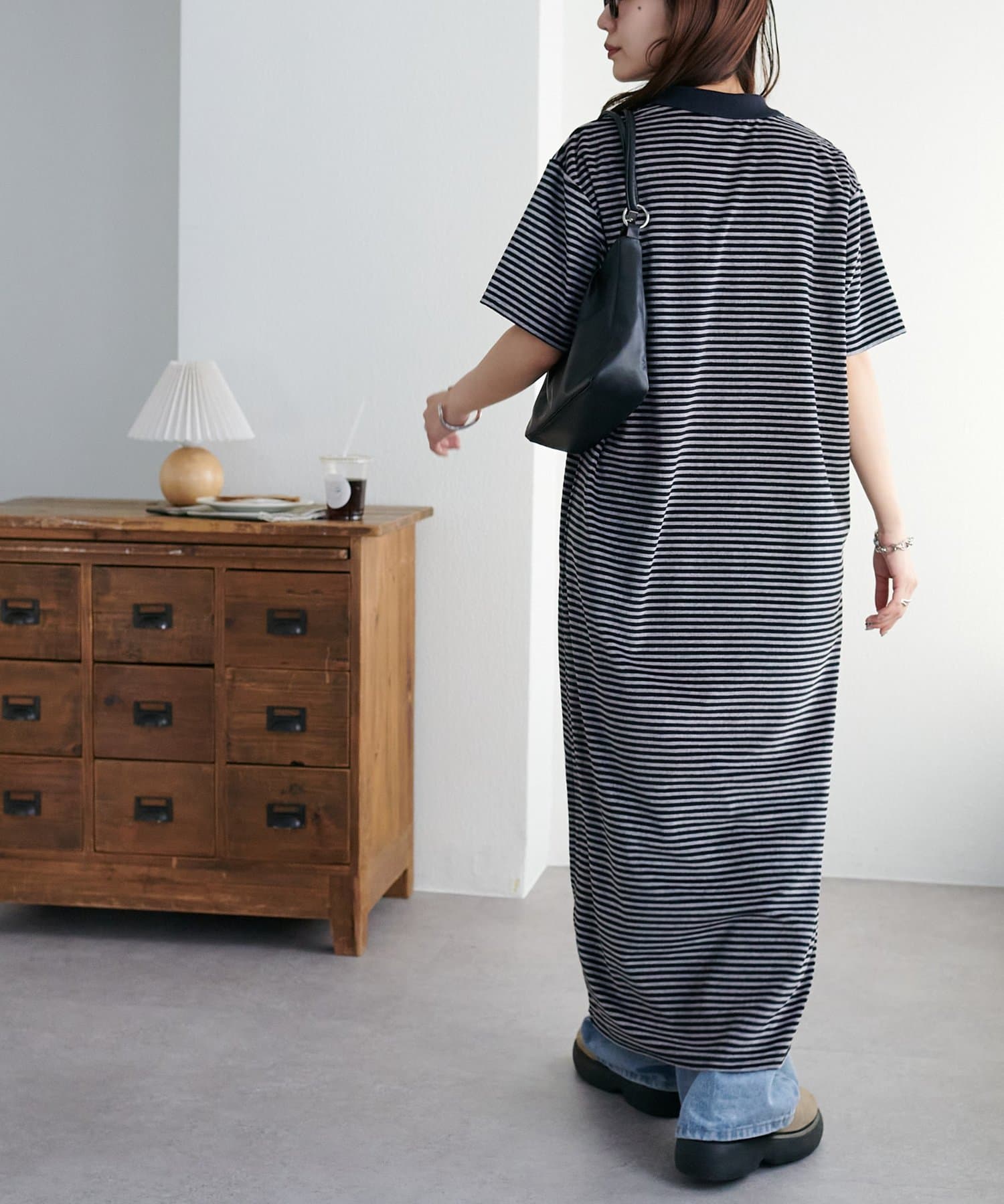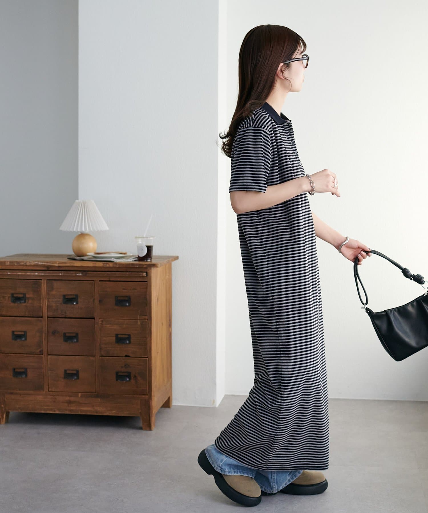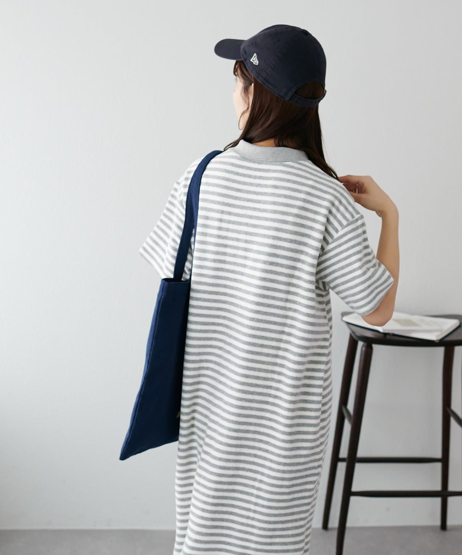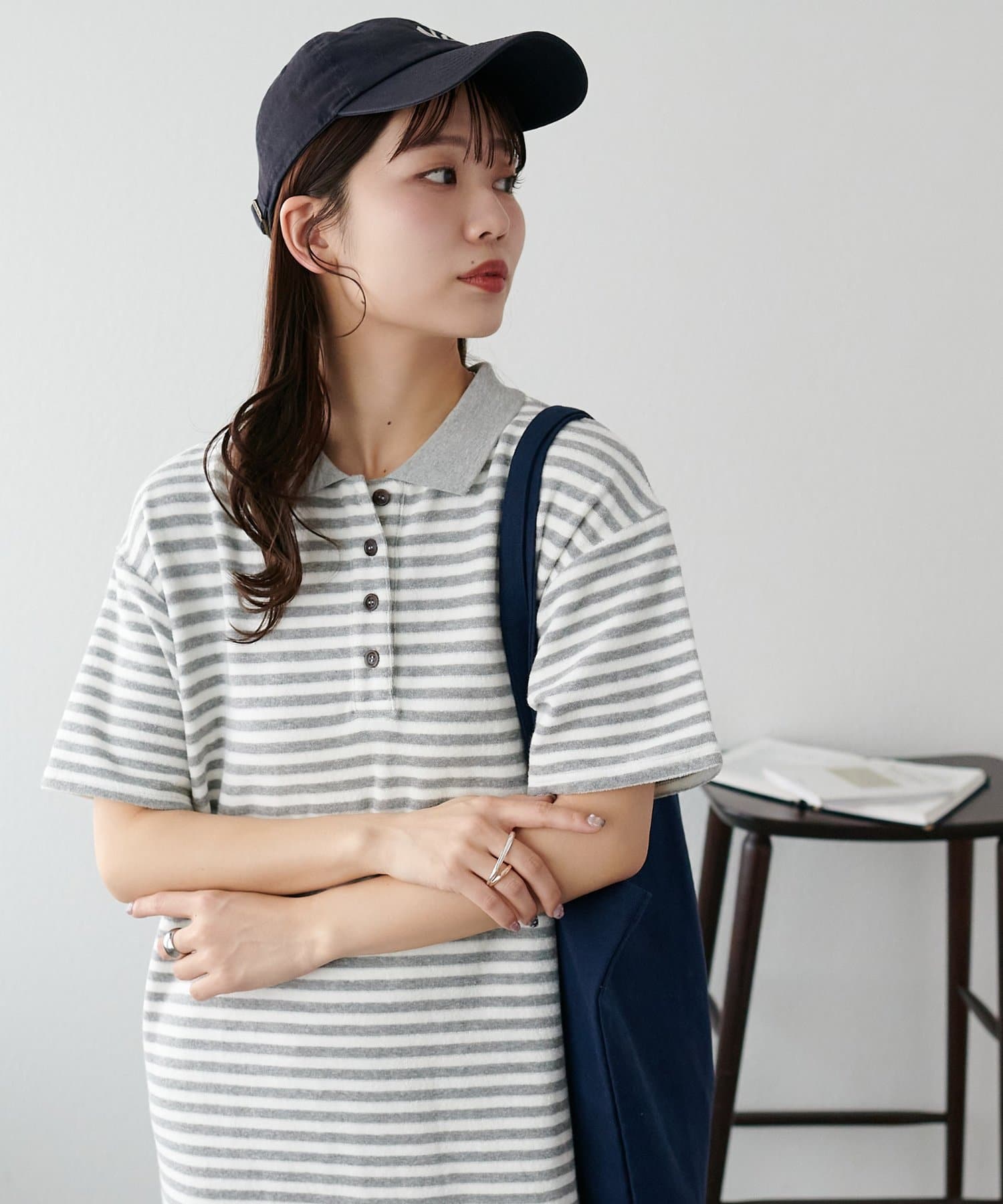 一枚で着こなしが決まる♪爽やかなボーダー柄のポロワンピース