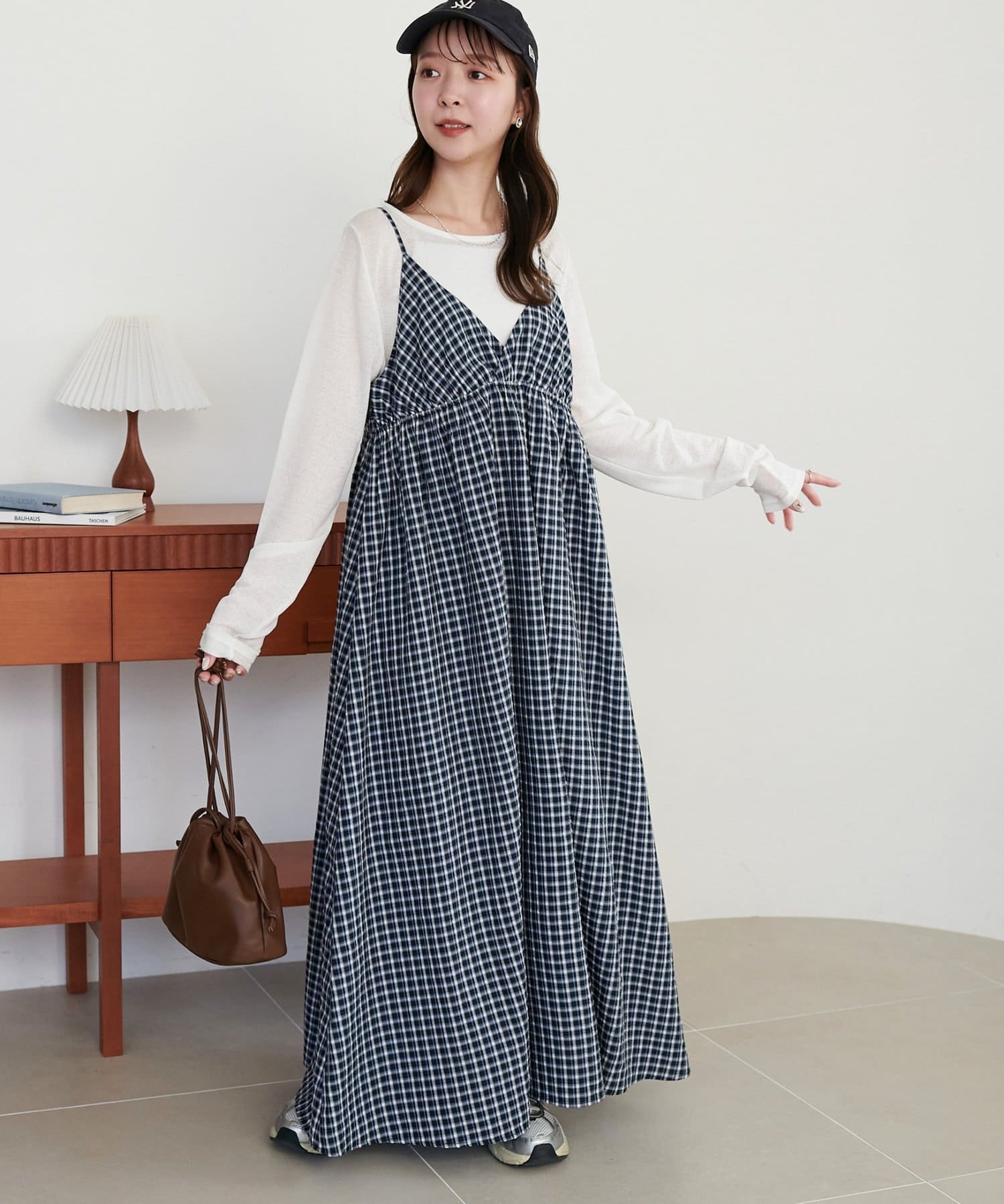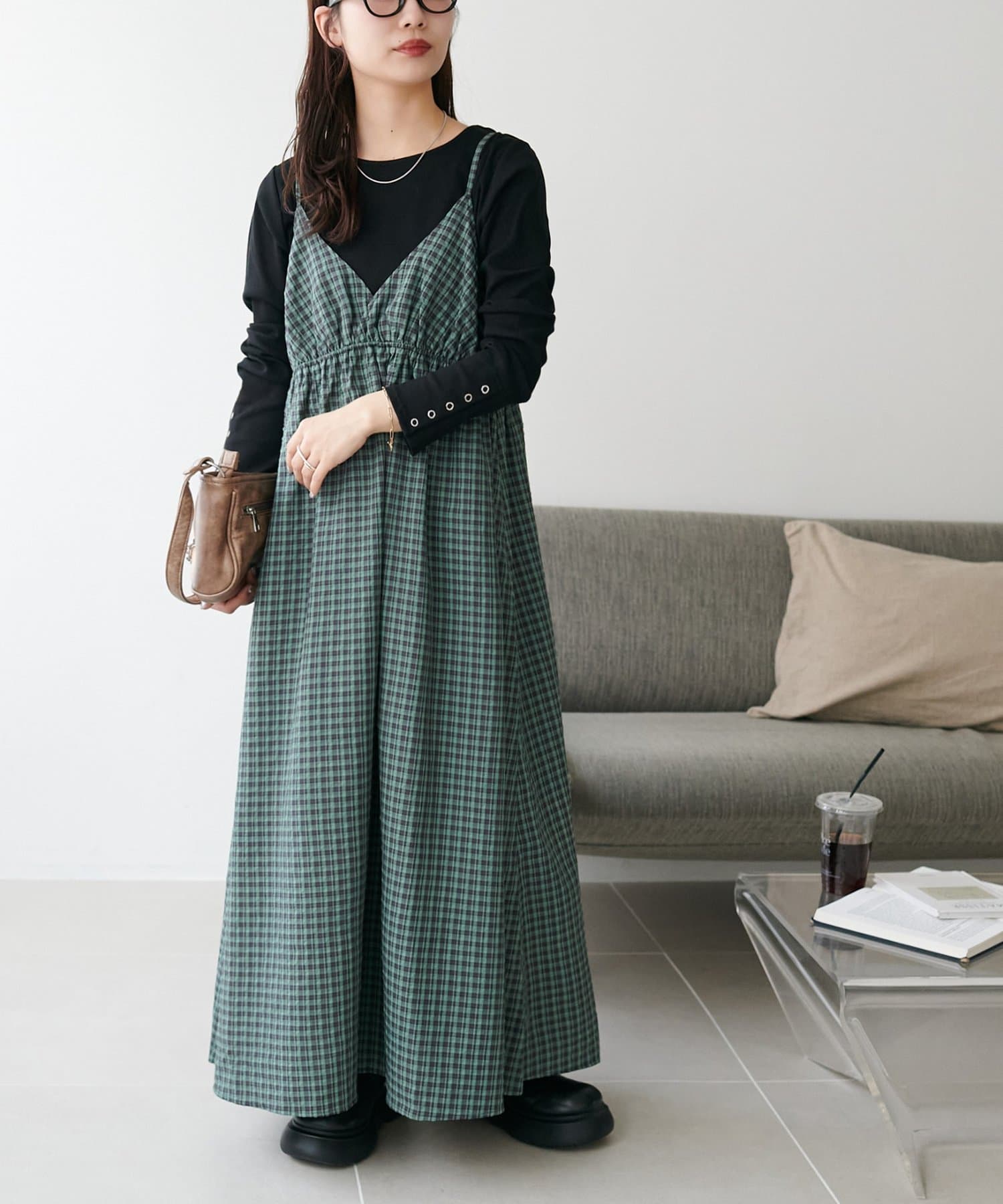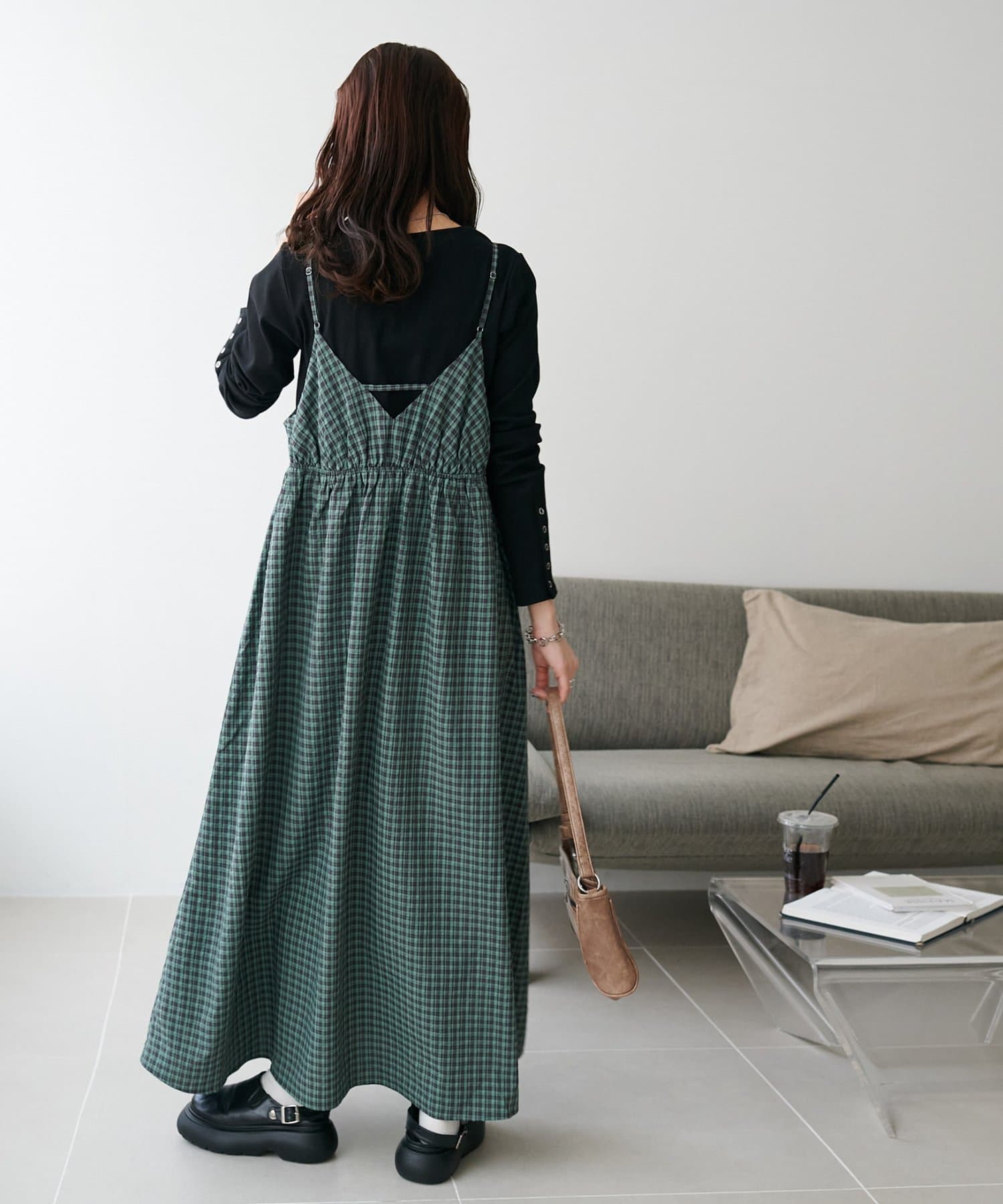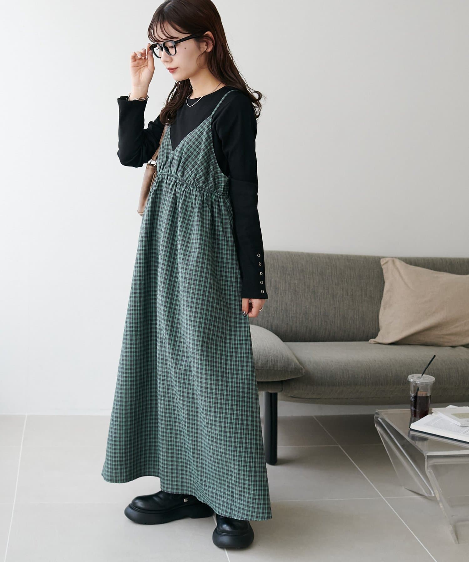 【丈感調整可/WEB限定 】チェックキャミワンピース