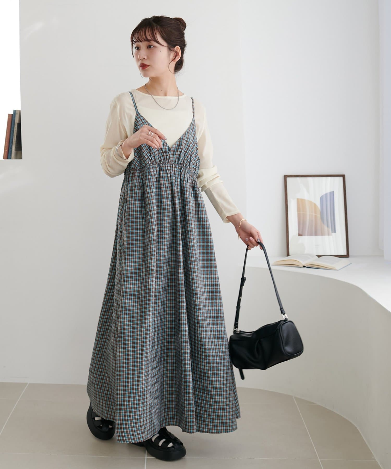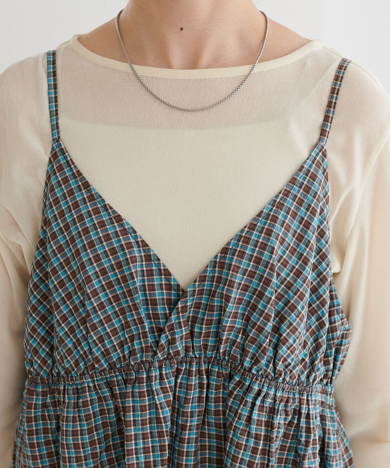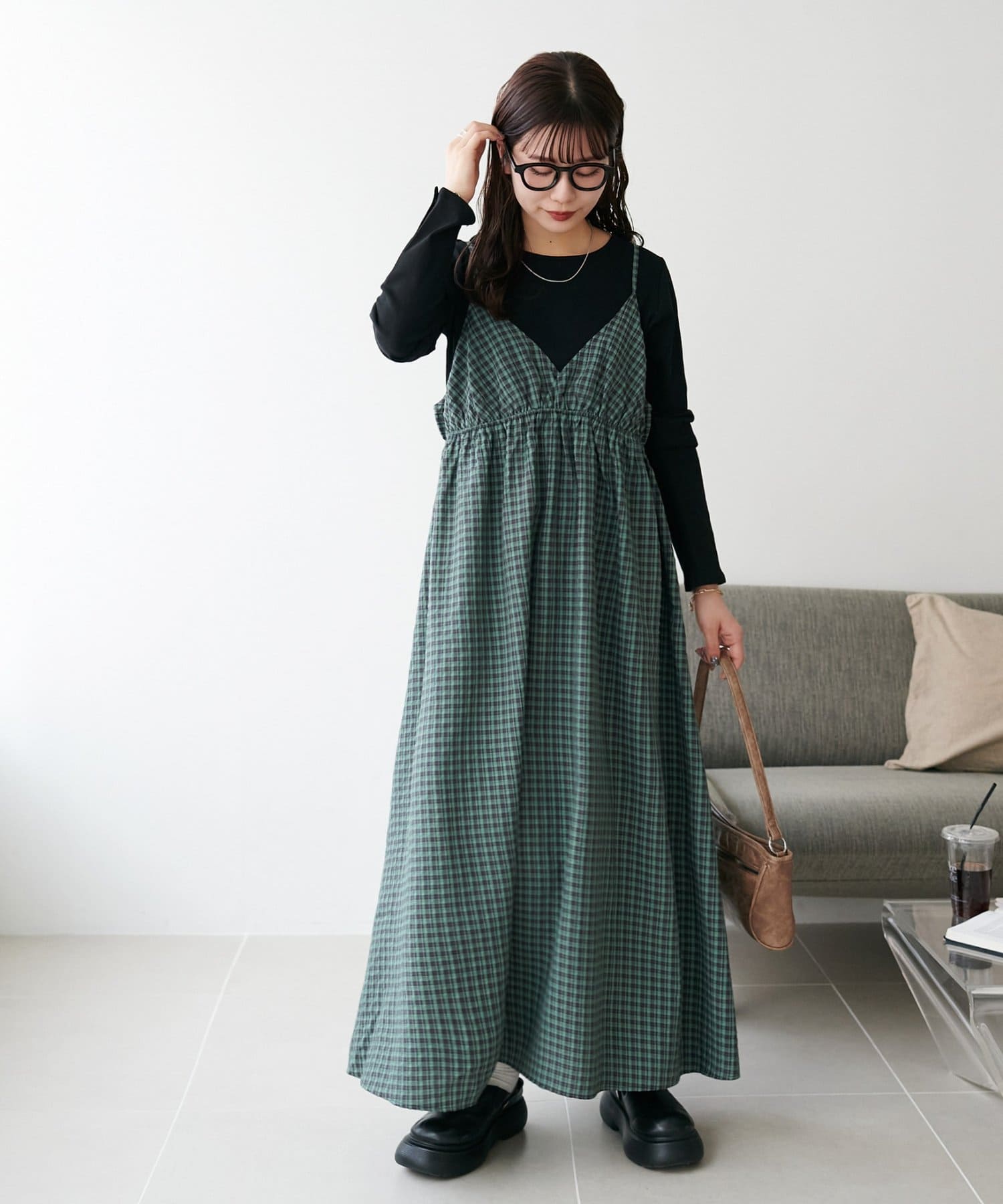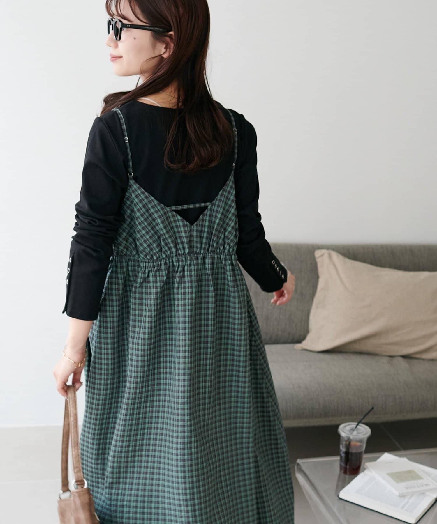 【丈感調整可/WEB限定 】チェックキャミワンピース