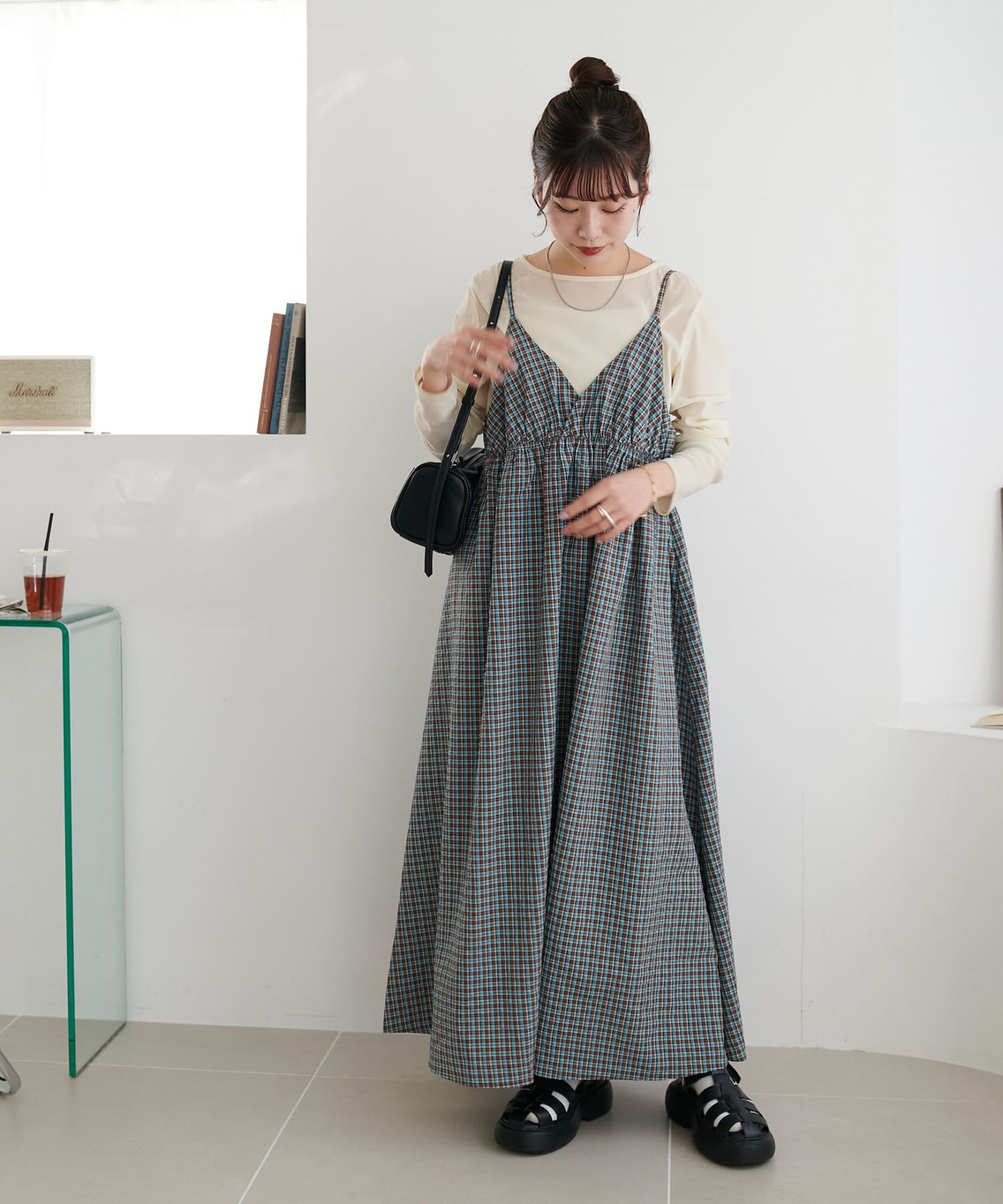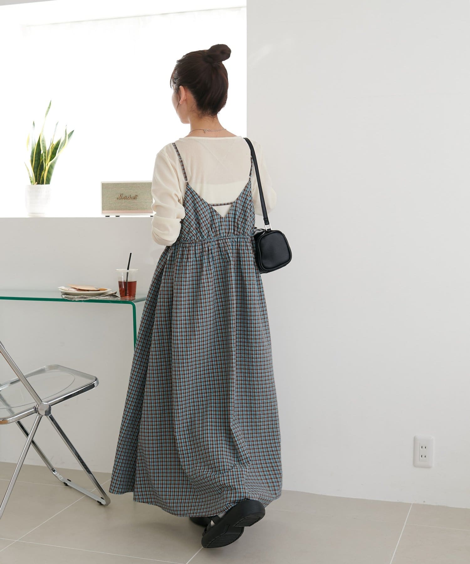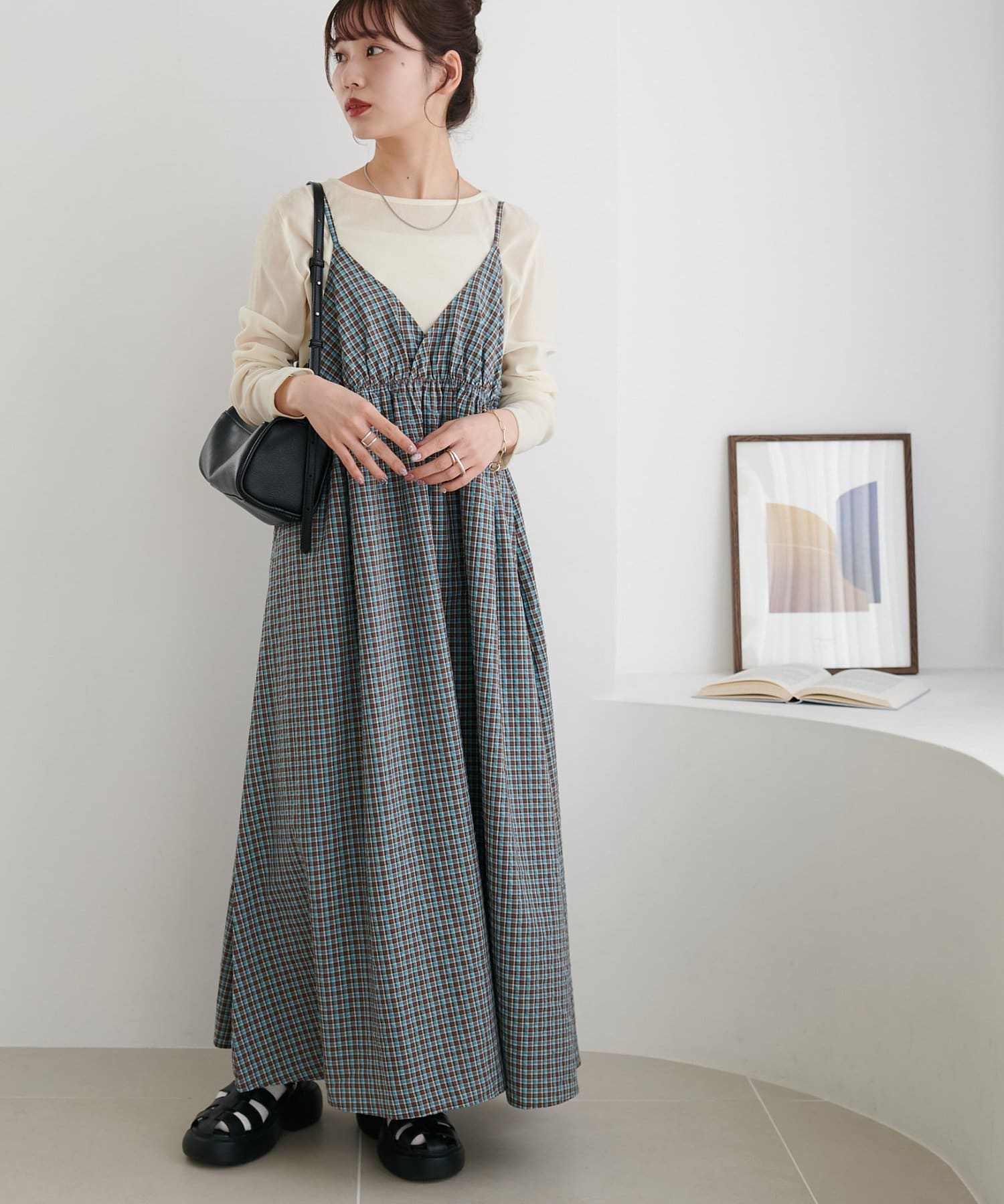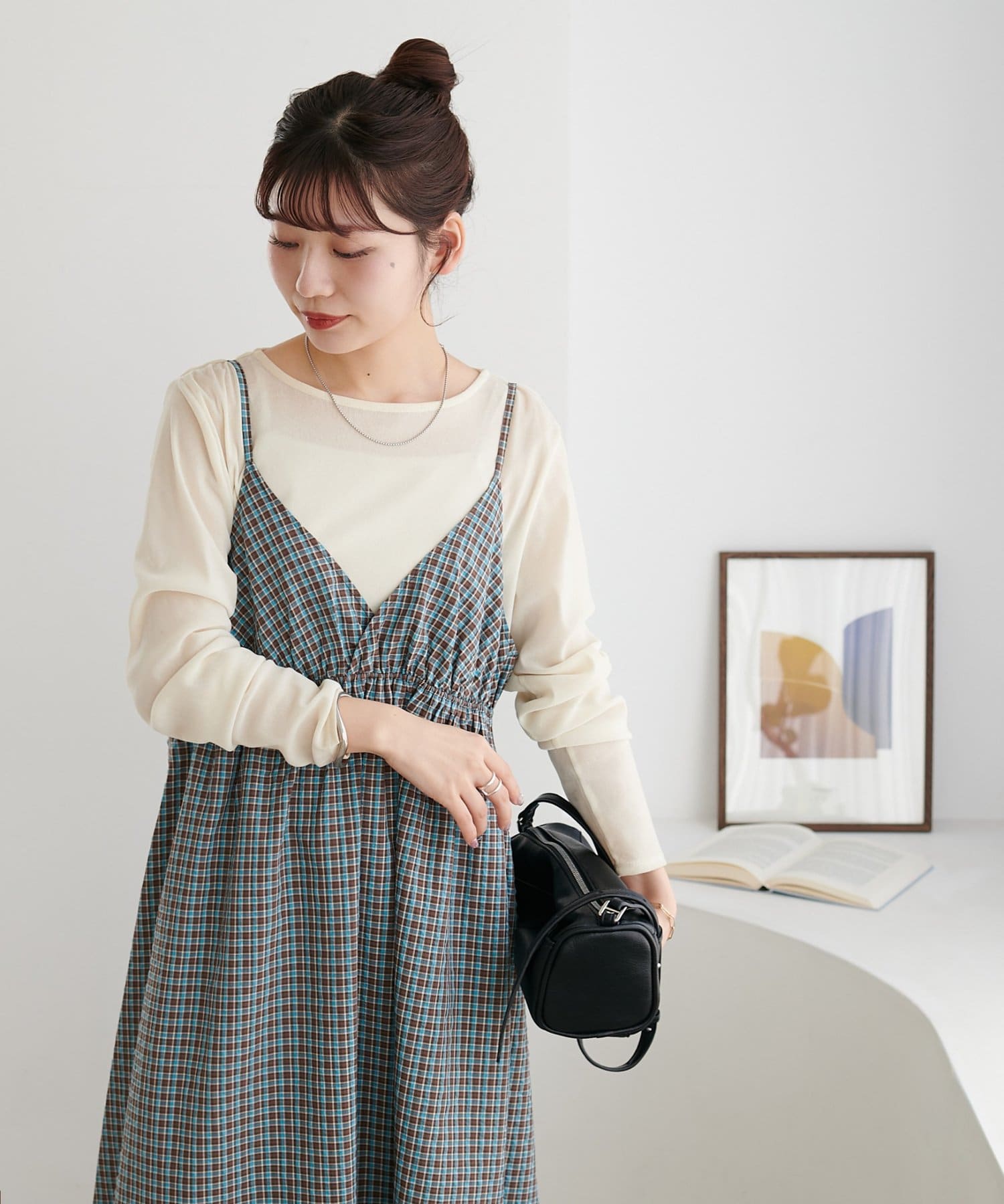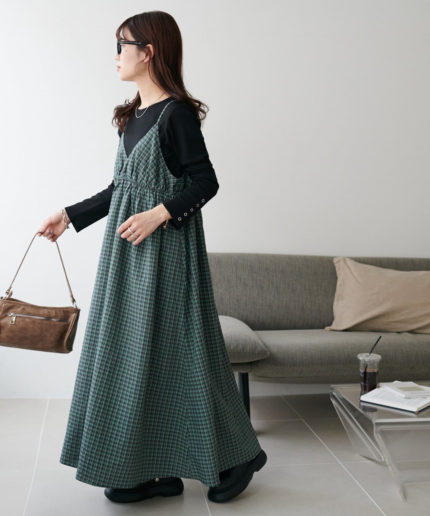【丈感調整可/WEB限定 】チェックキャミワンピース
