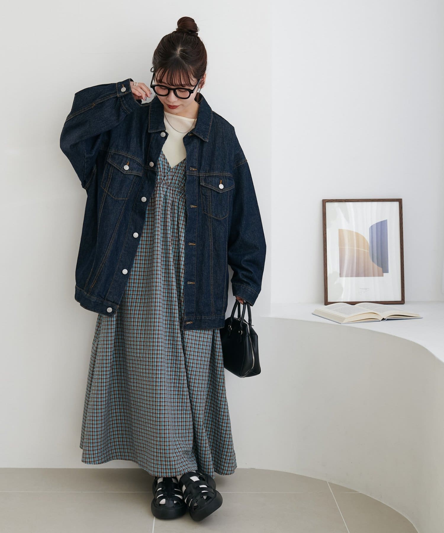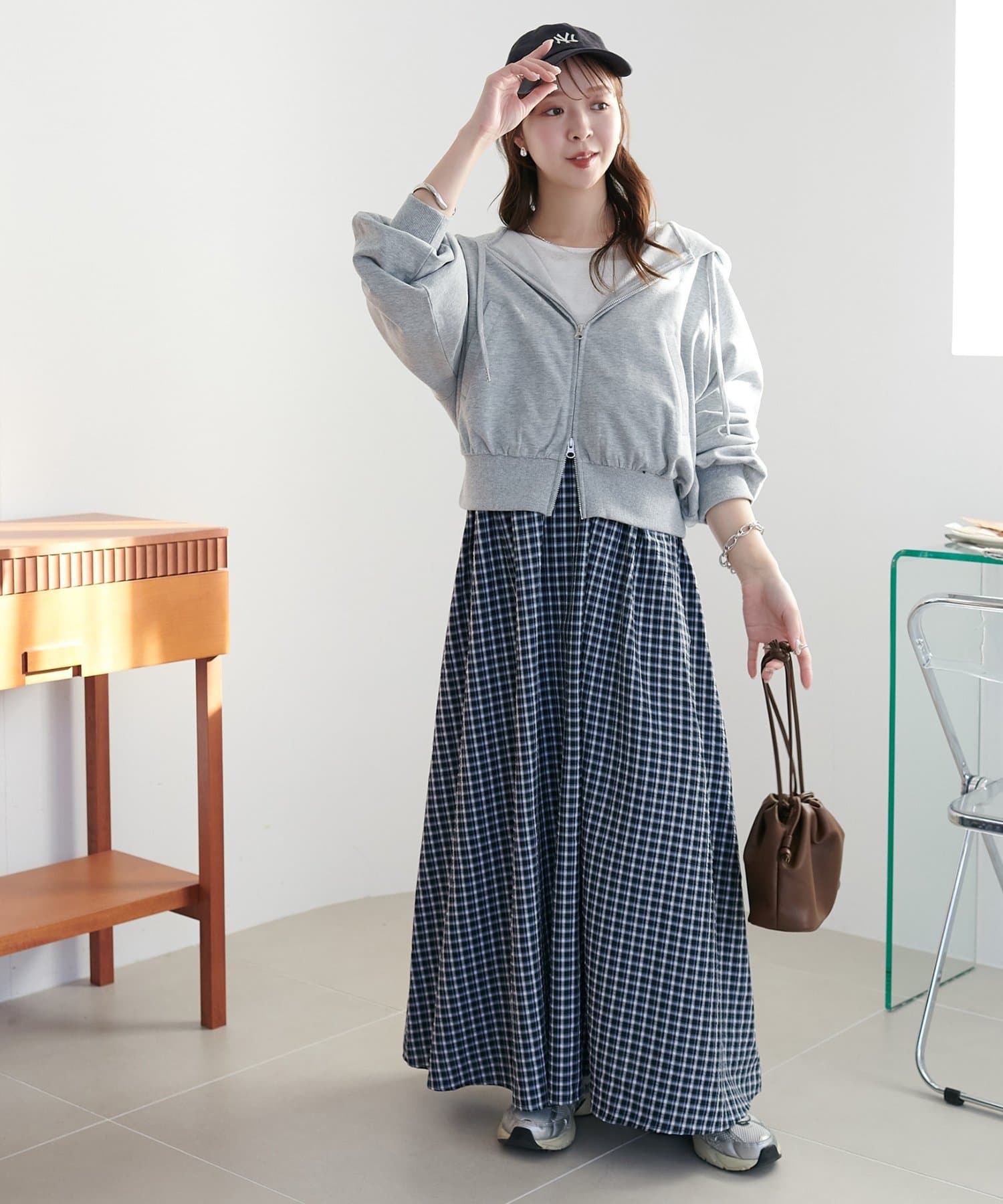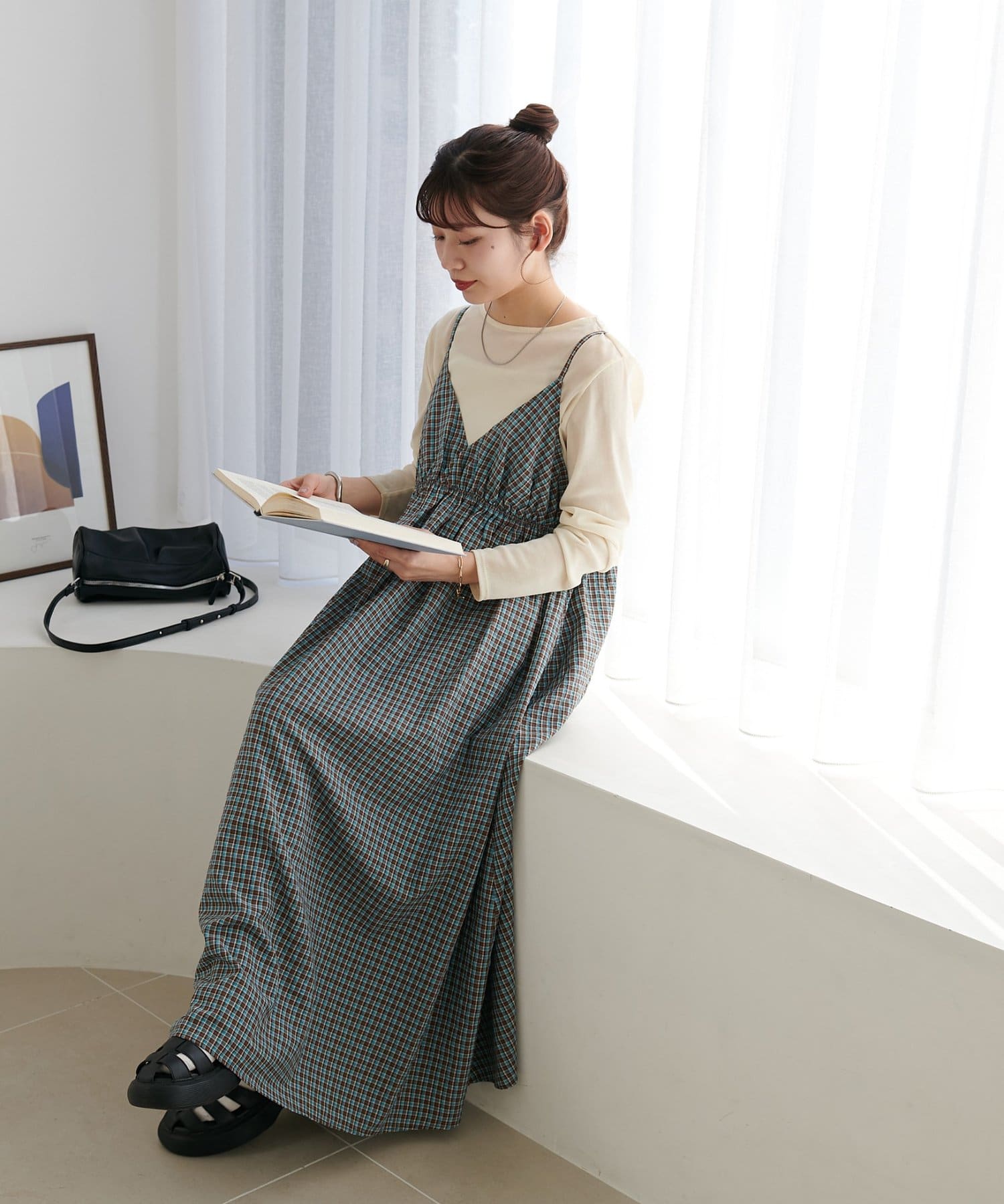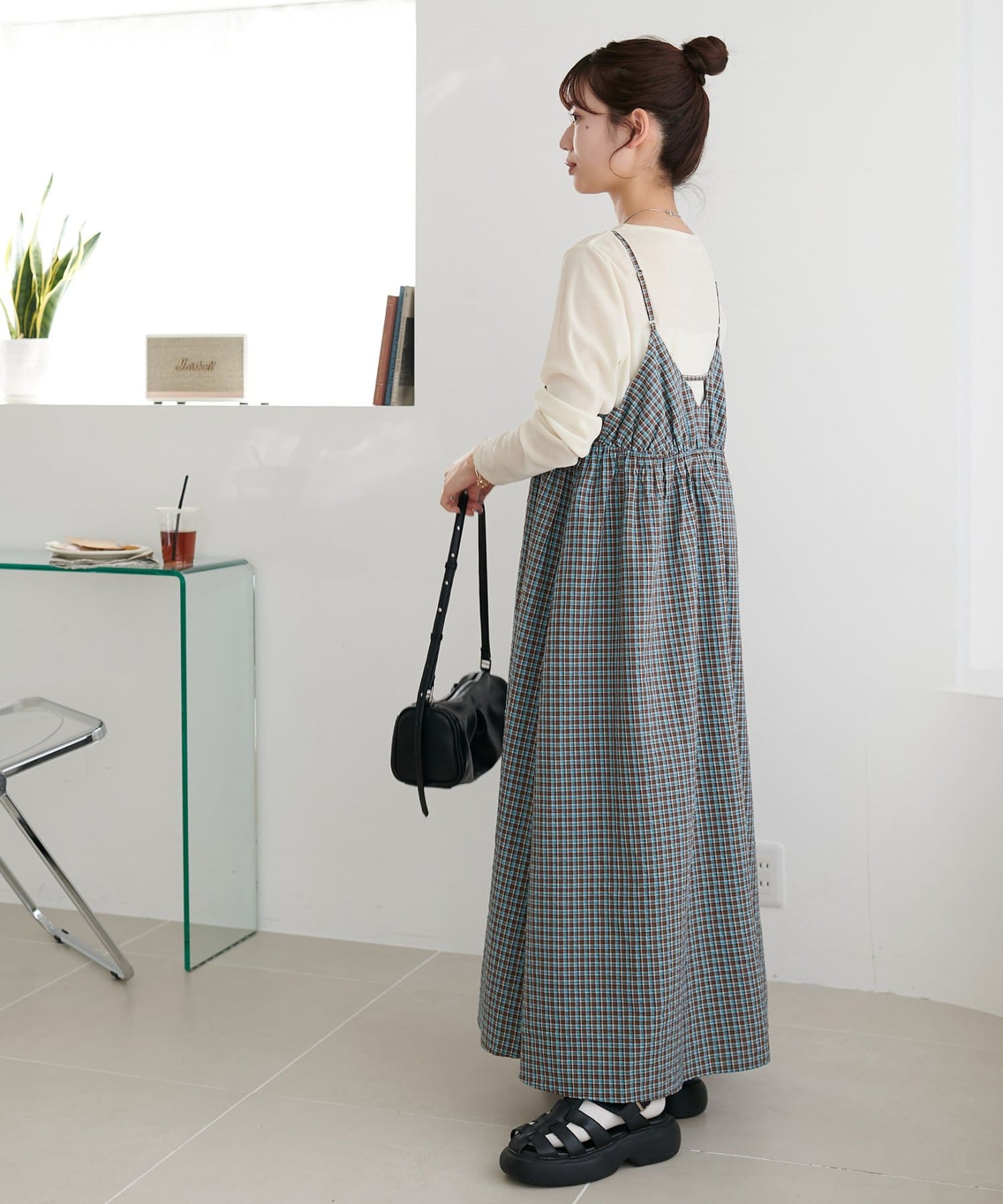 【丈感調整可/WEB限定 】チェックキャミワンピース