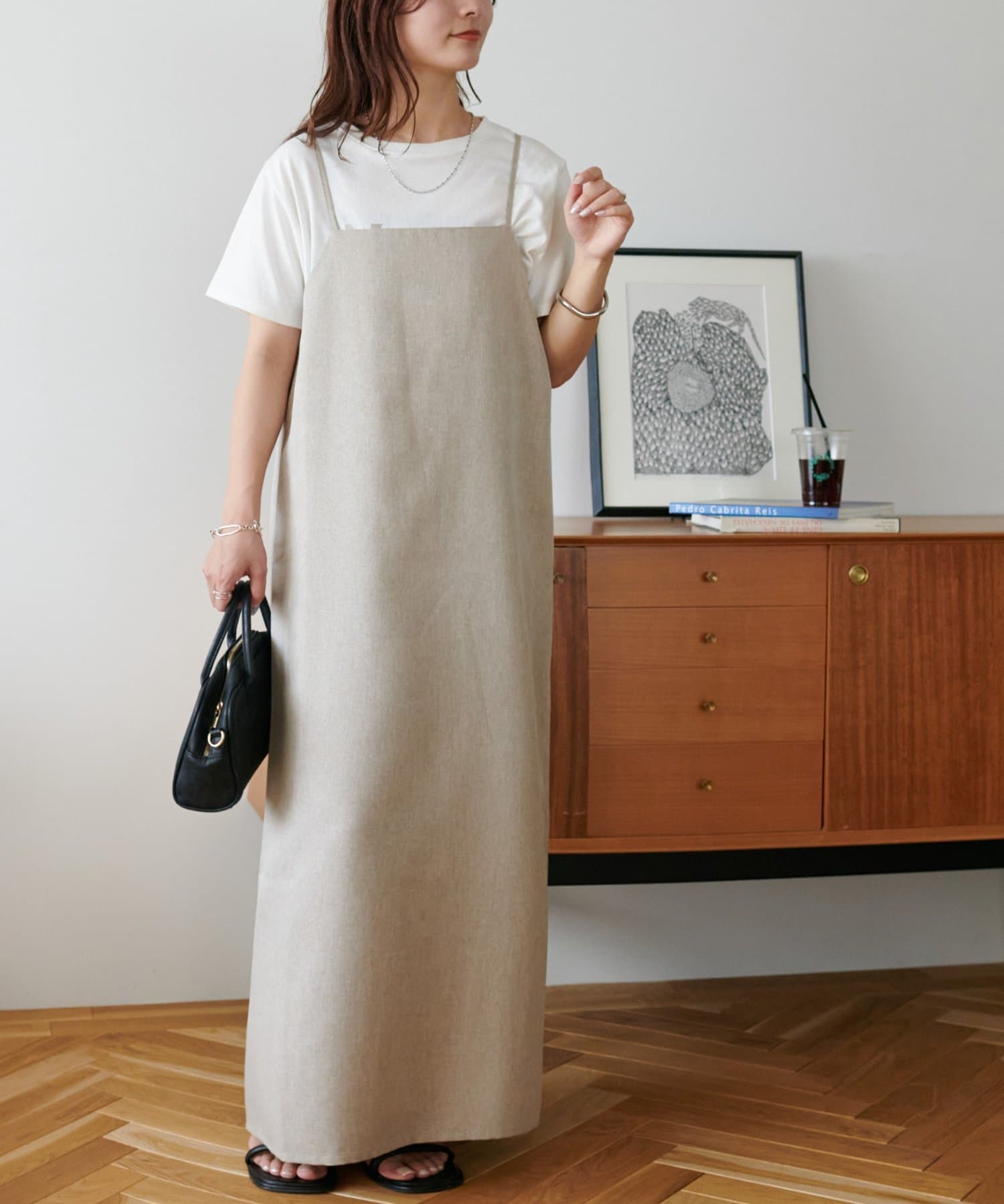・すっきりとしたIラインシルエットが魅力のリネンライクキャミワンピース。
