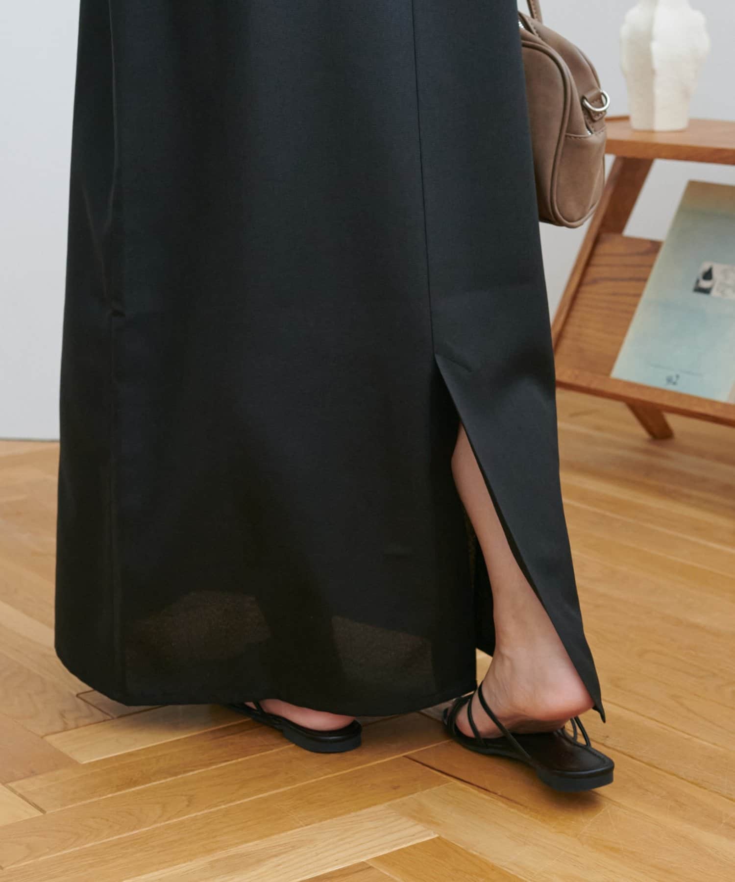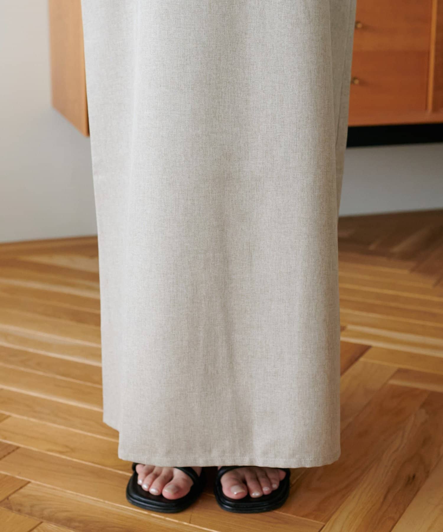 158cmスタッフ:足首までしっかり隠れる丈感でした。バックスリットが入っているので足捌きもしやすいです!