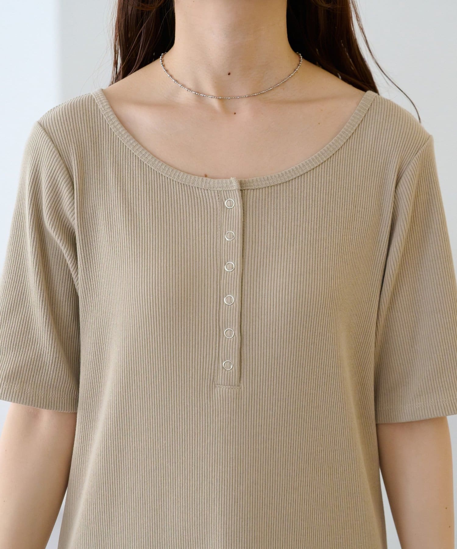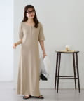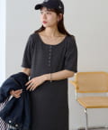 TOP > DISCOAT > レディース > ワンピース > ワンピース > リブリングドットヘンリーカット半袖ワンピース【WEB限定カラーあり】