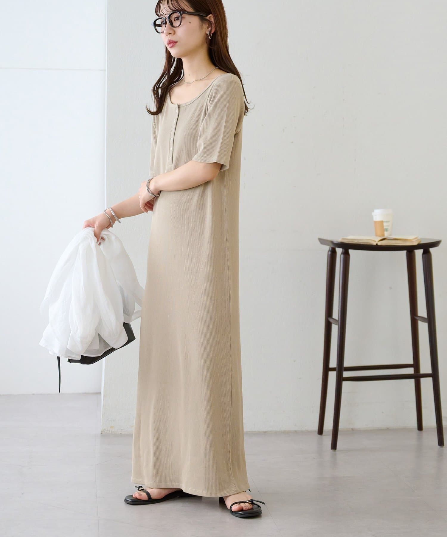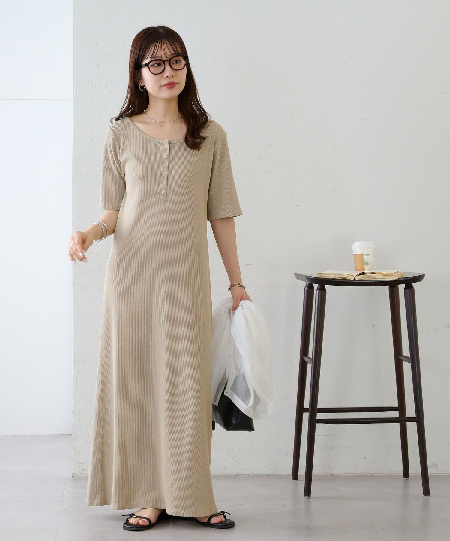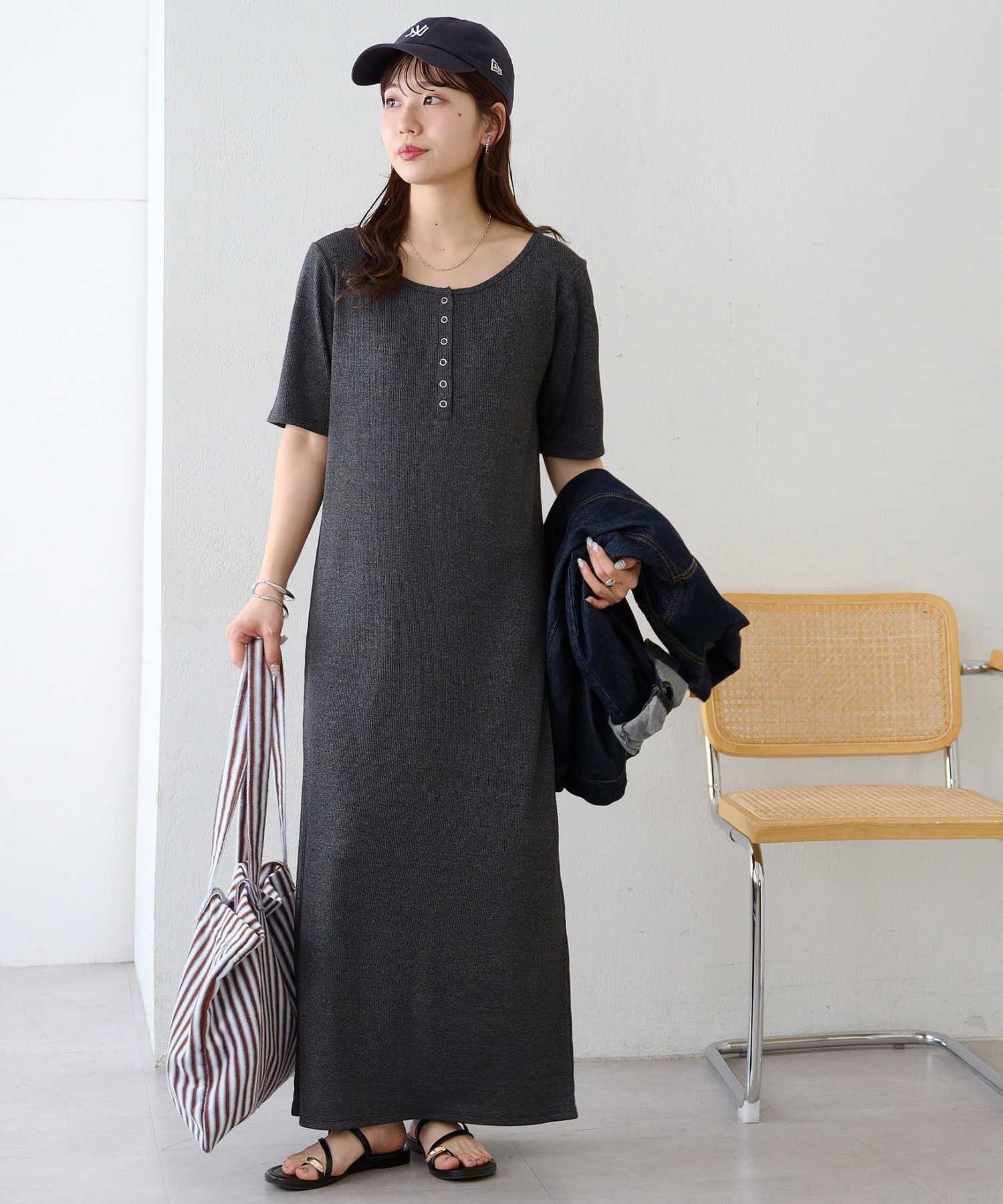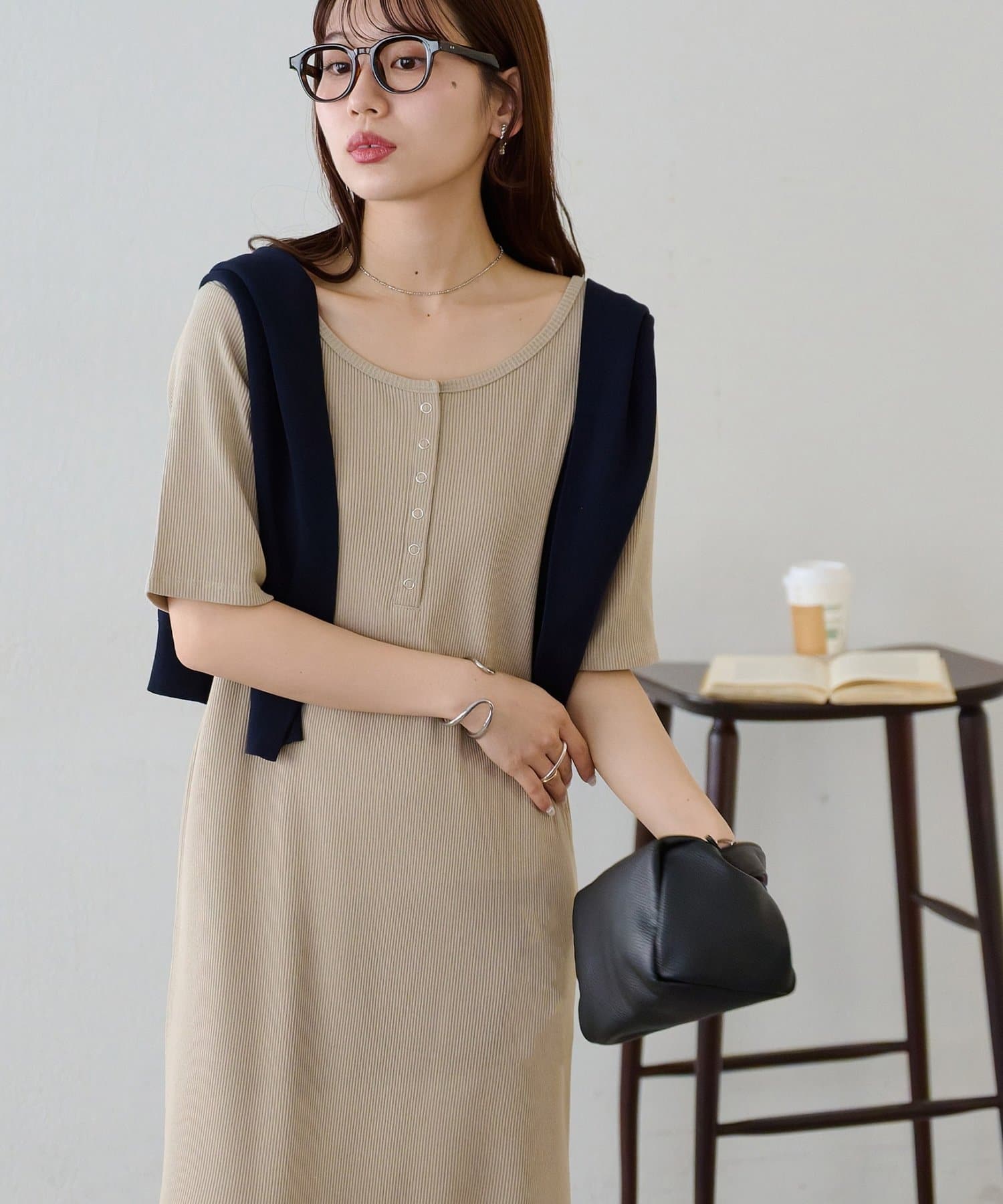 リブリングドットヘンリーカット半袖ワンピース【WEB限定カラーあり】