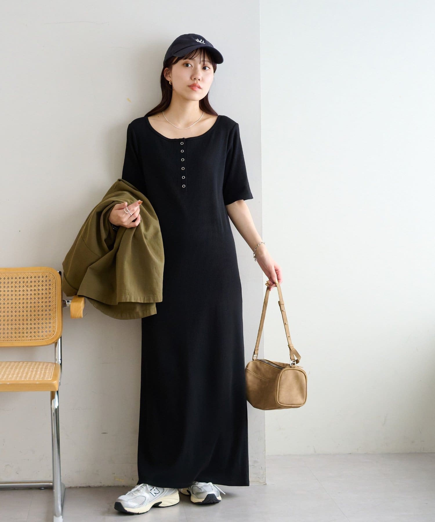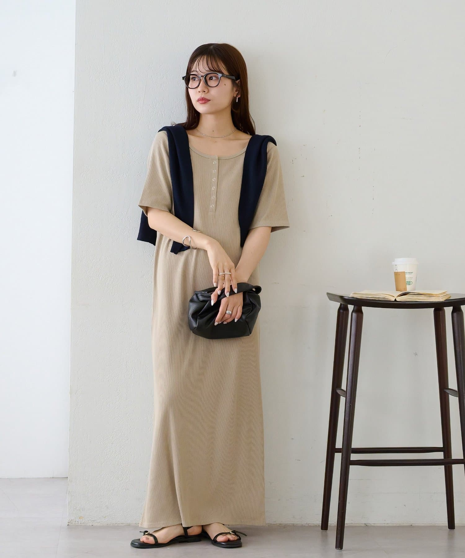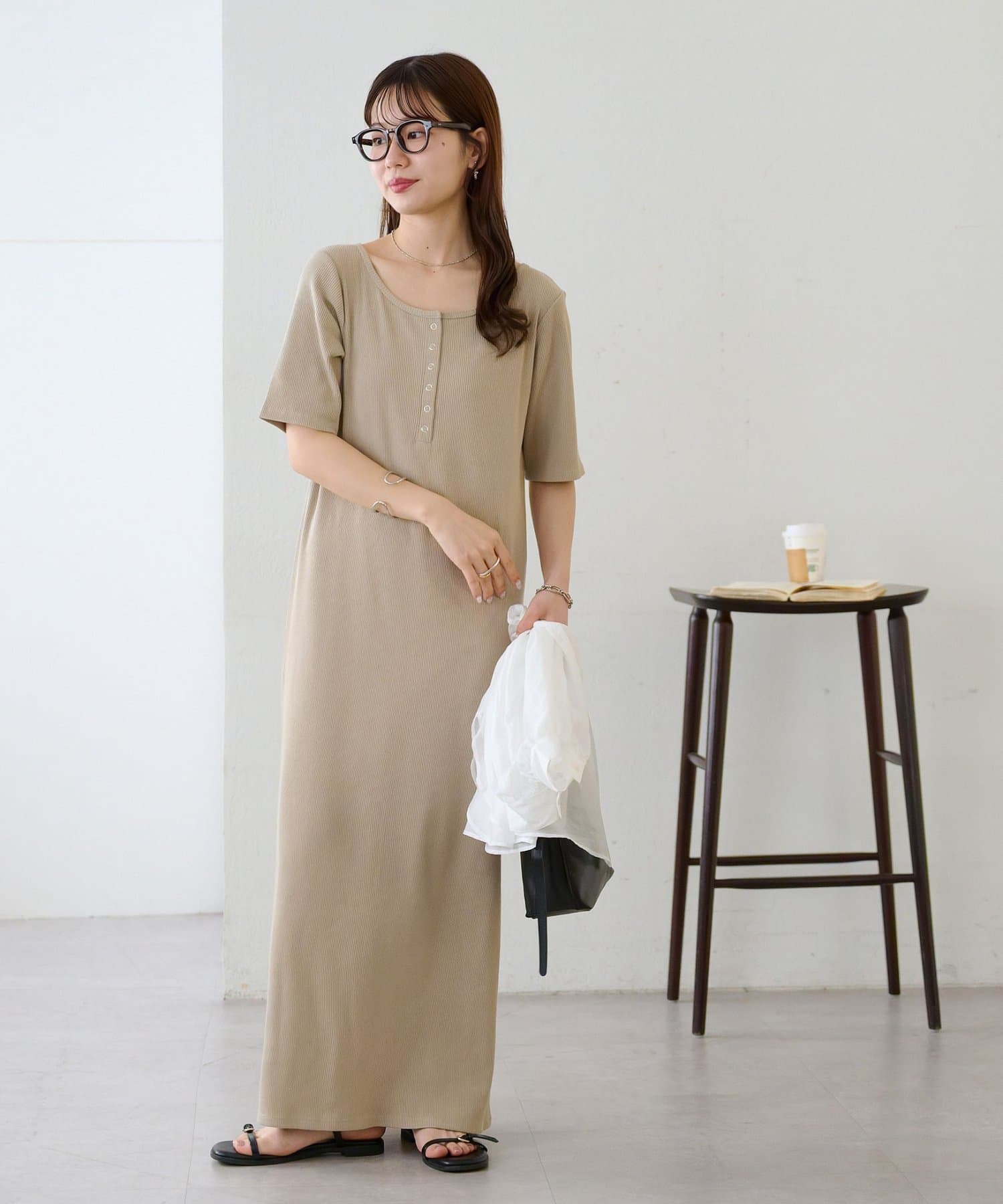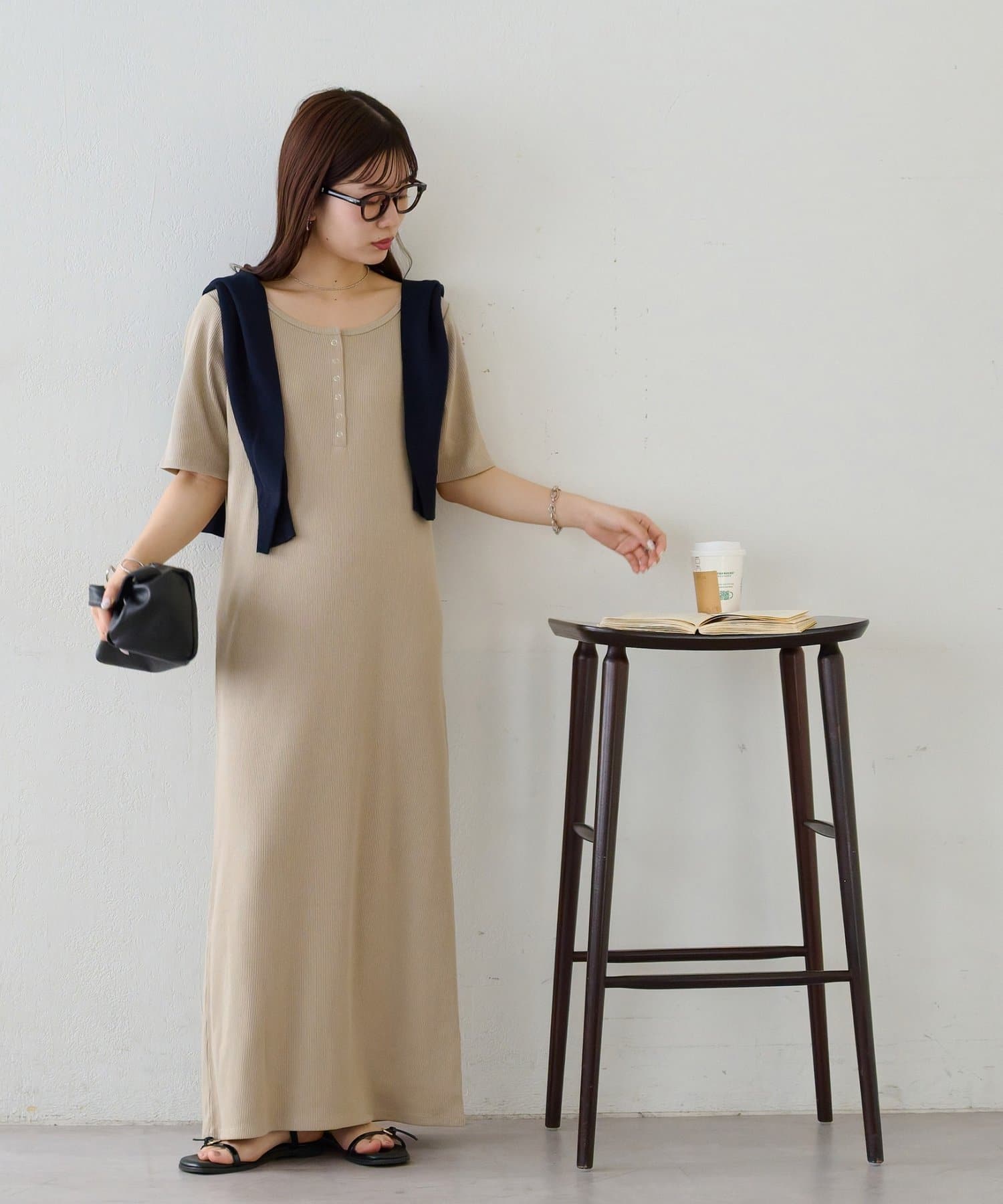 リブリングドットヘンリーカット半袖ワンピース【WEB限定カラーあり】