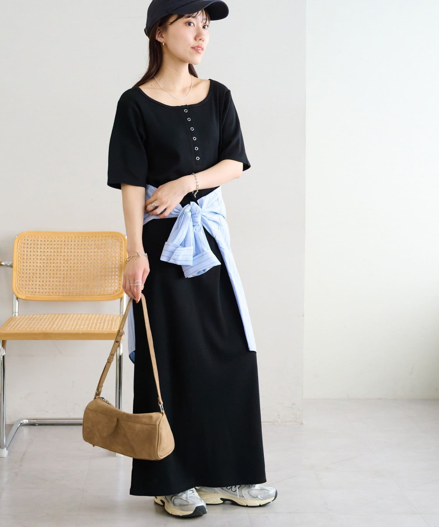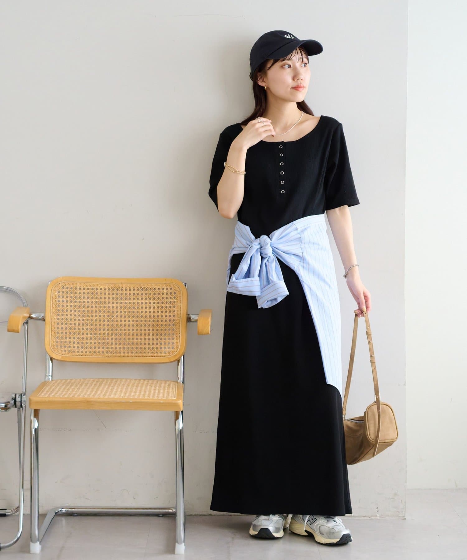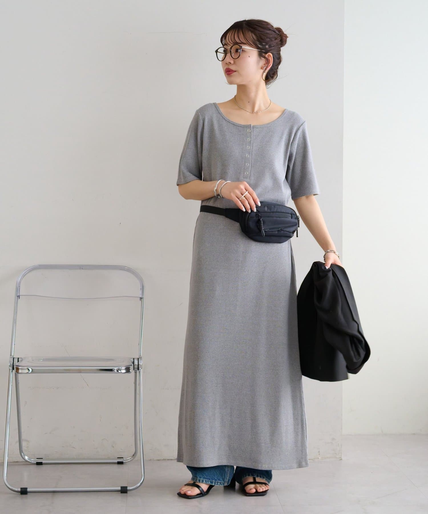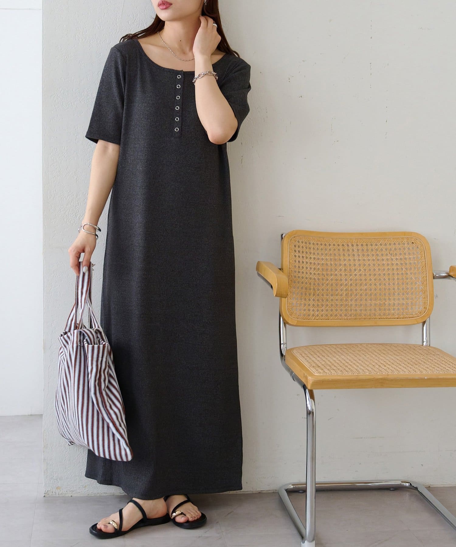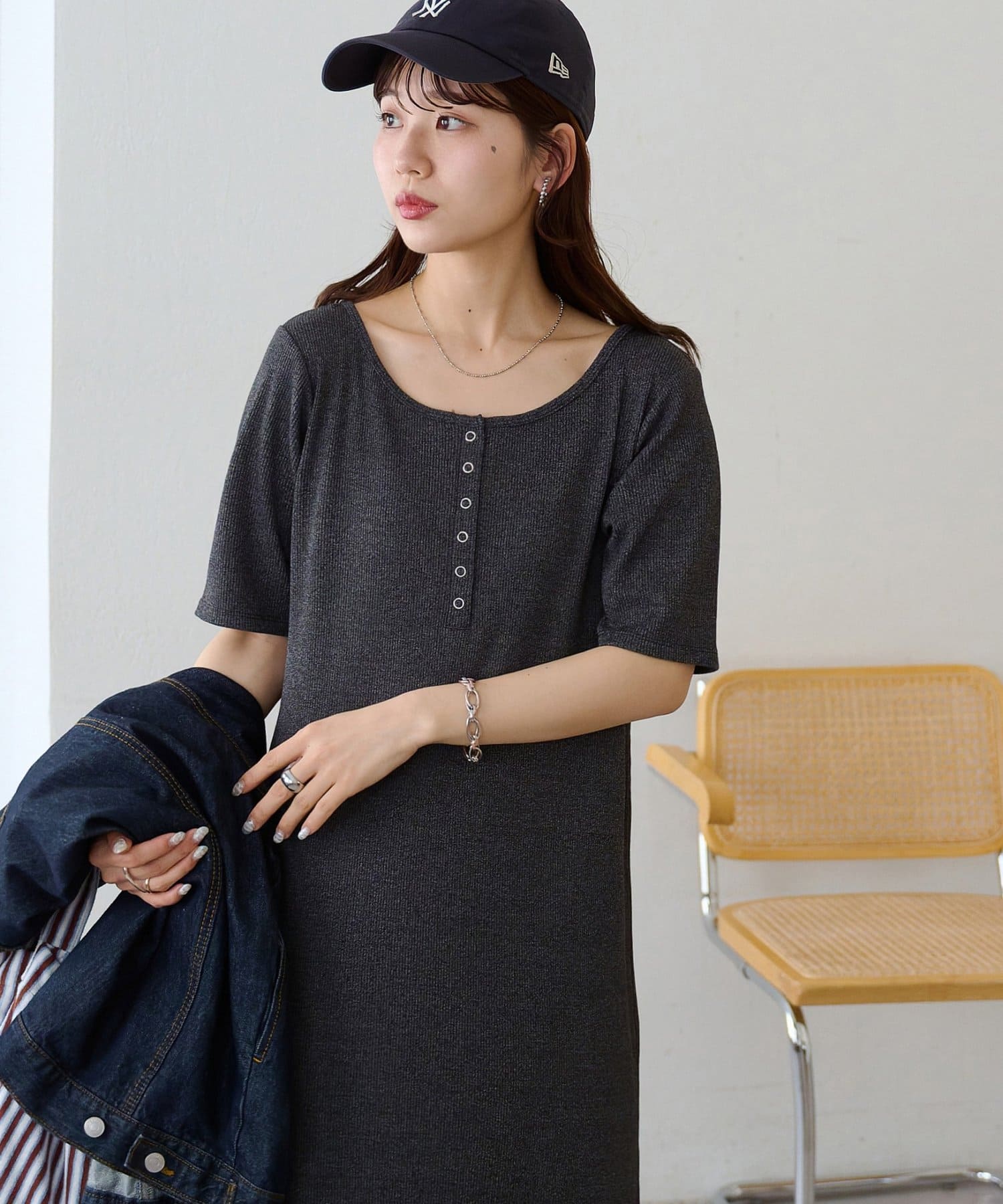 • DISCOAT(ディスコート) リブリングドットヘンリーカット半袖ワンピース【WEB限定カラーあり】