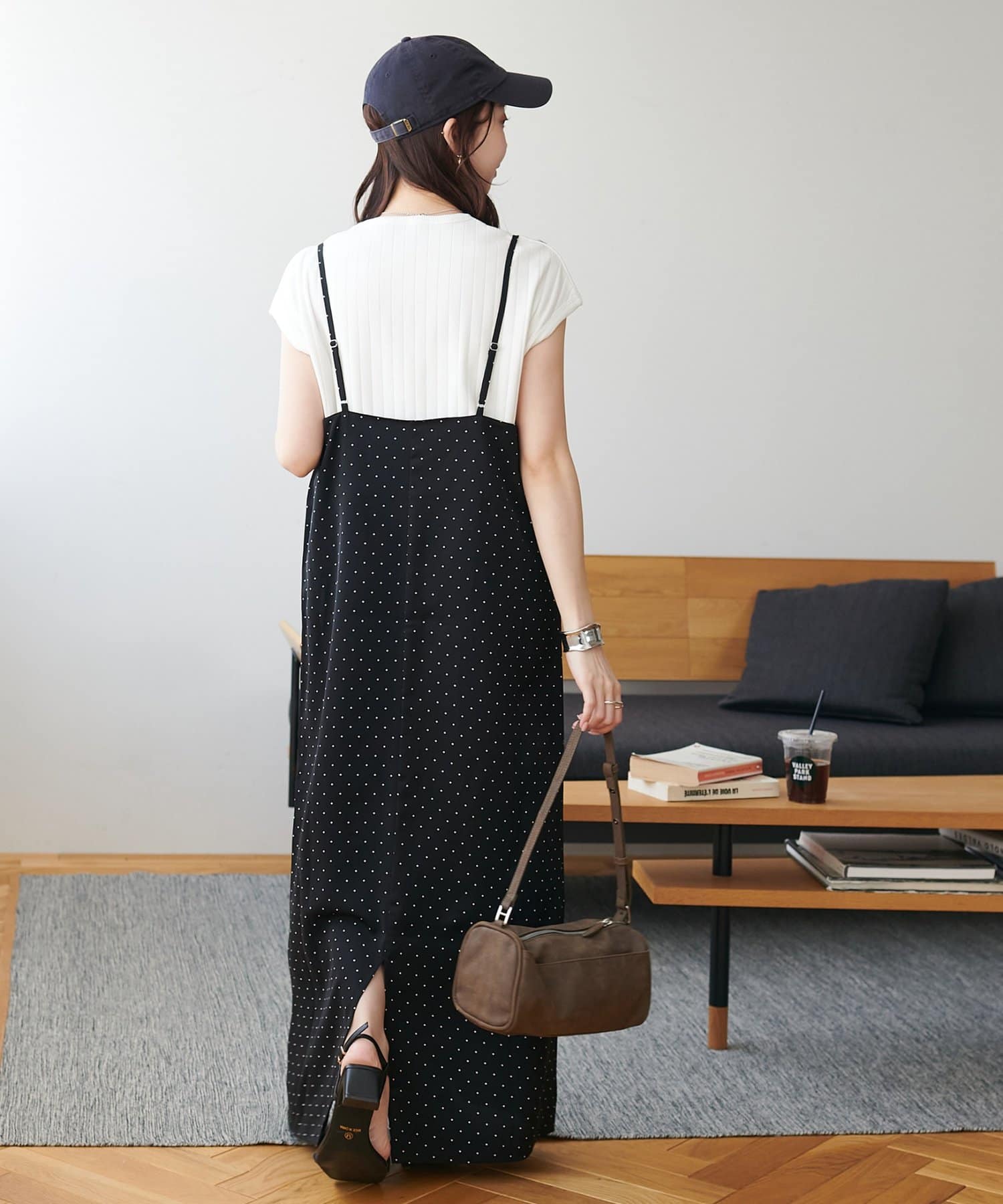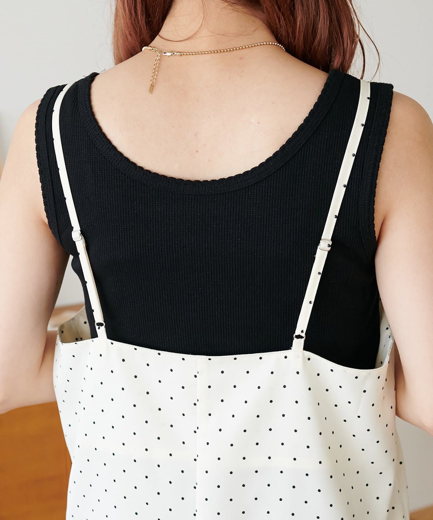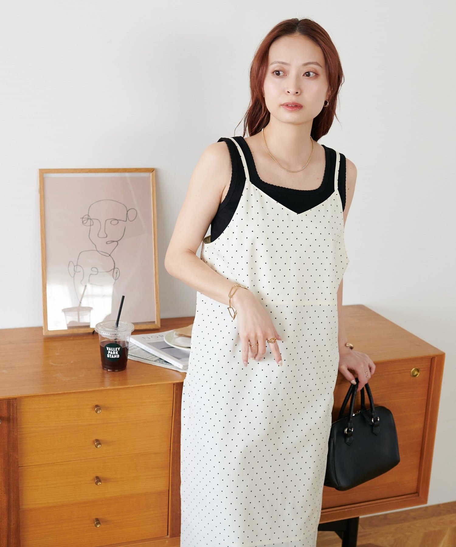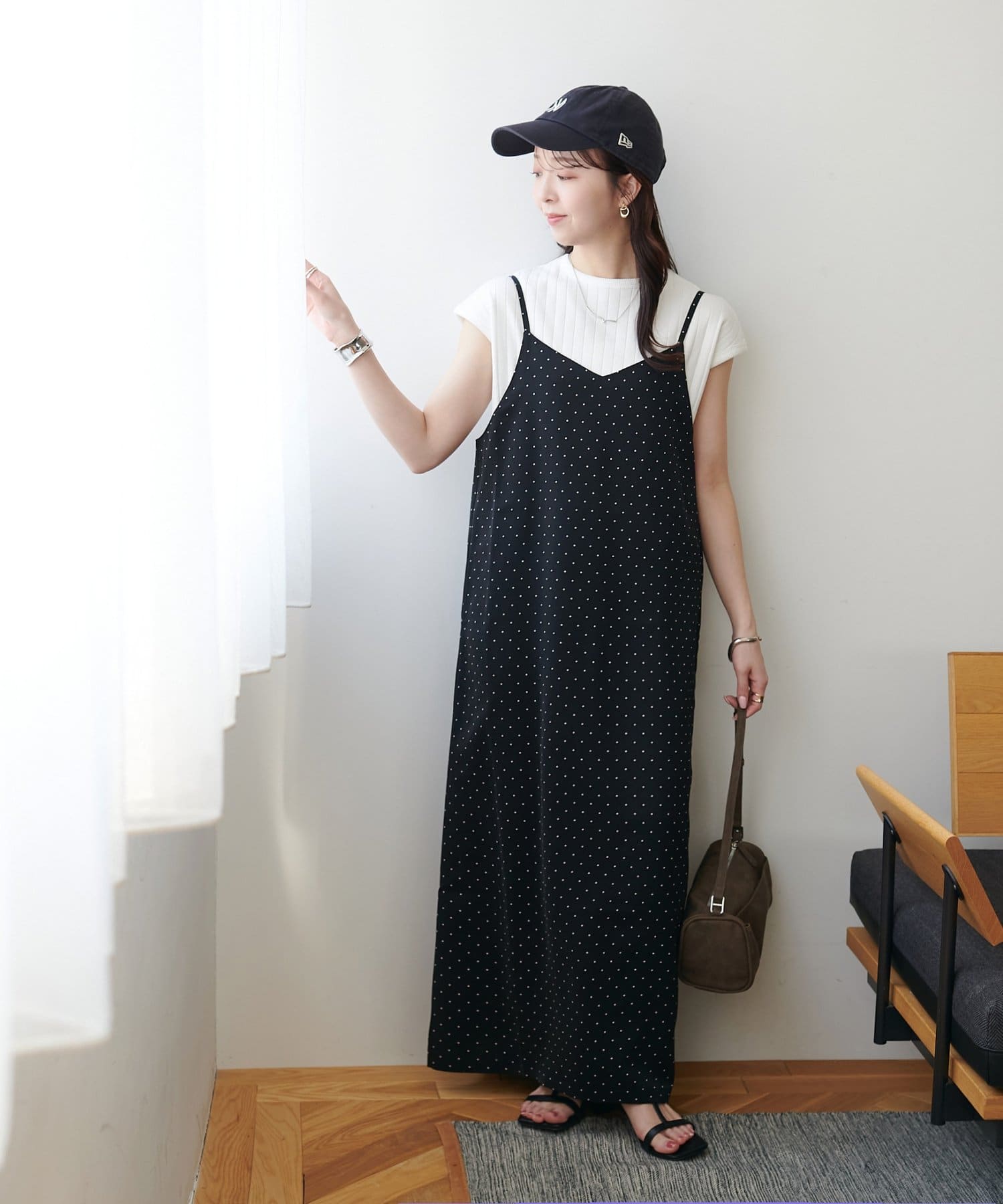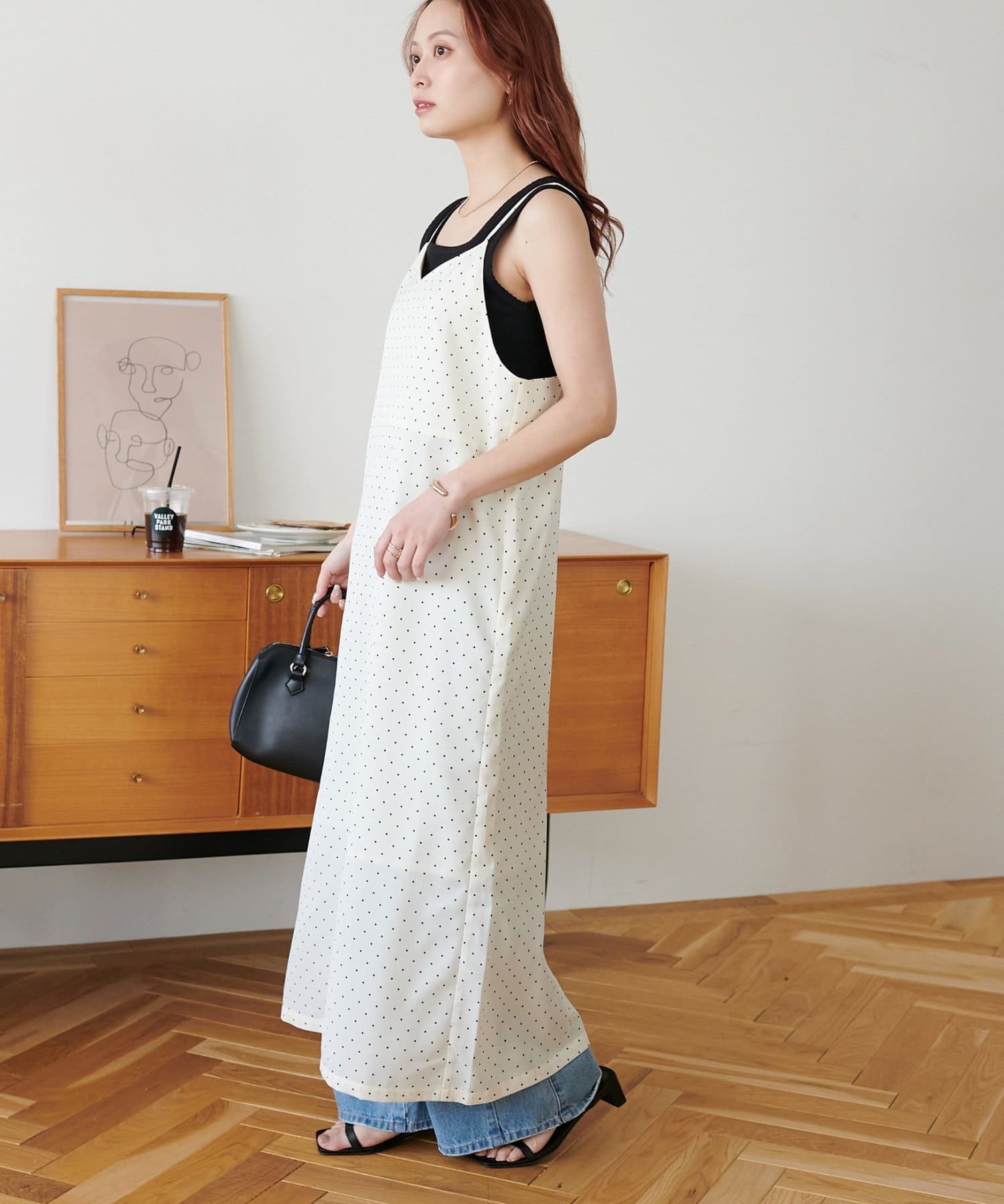 大人可愛い、ドット柄マキシキャミワンピース