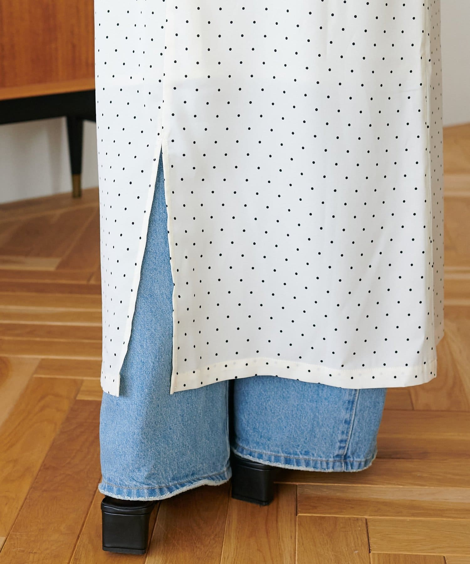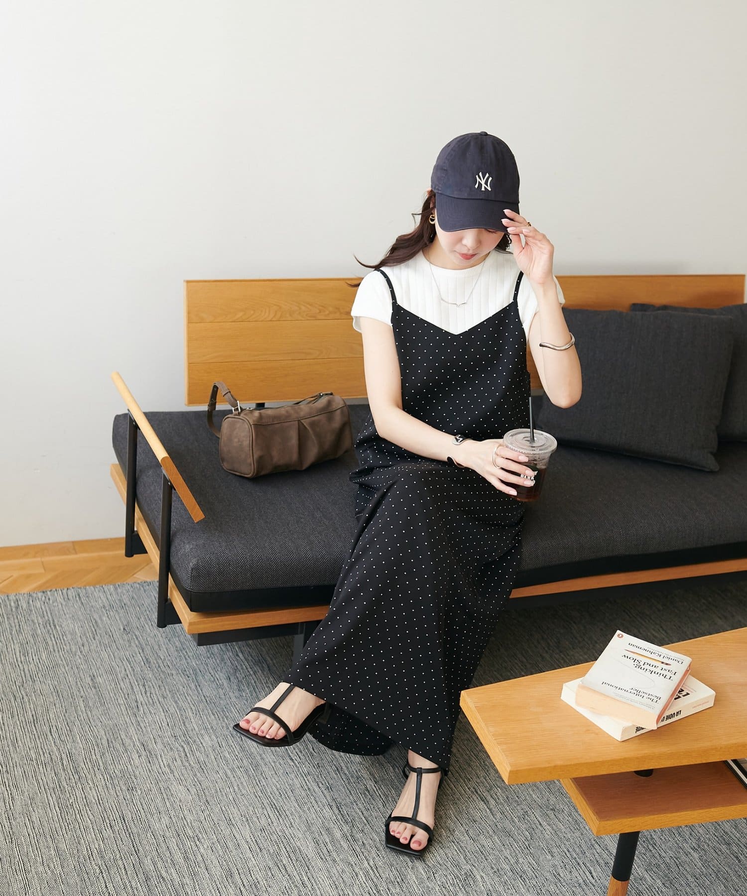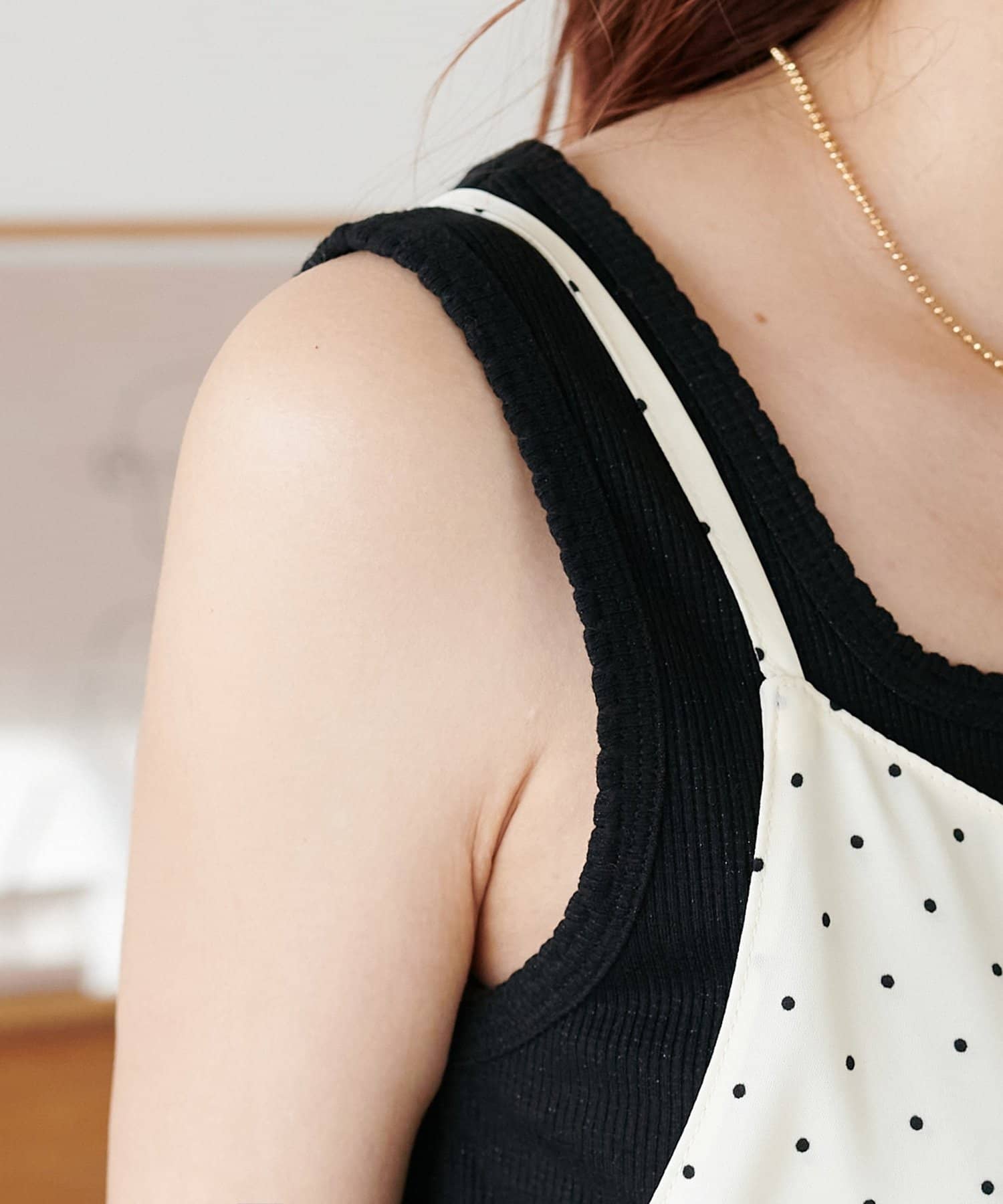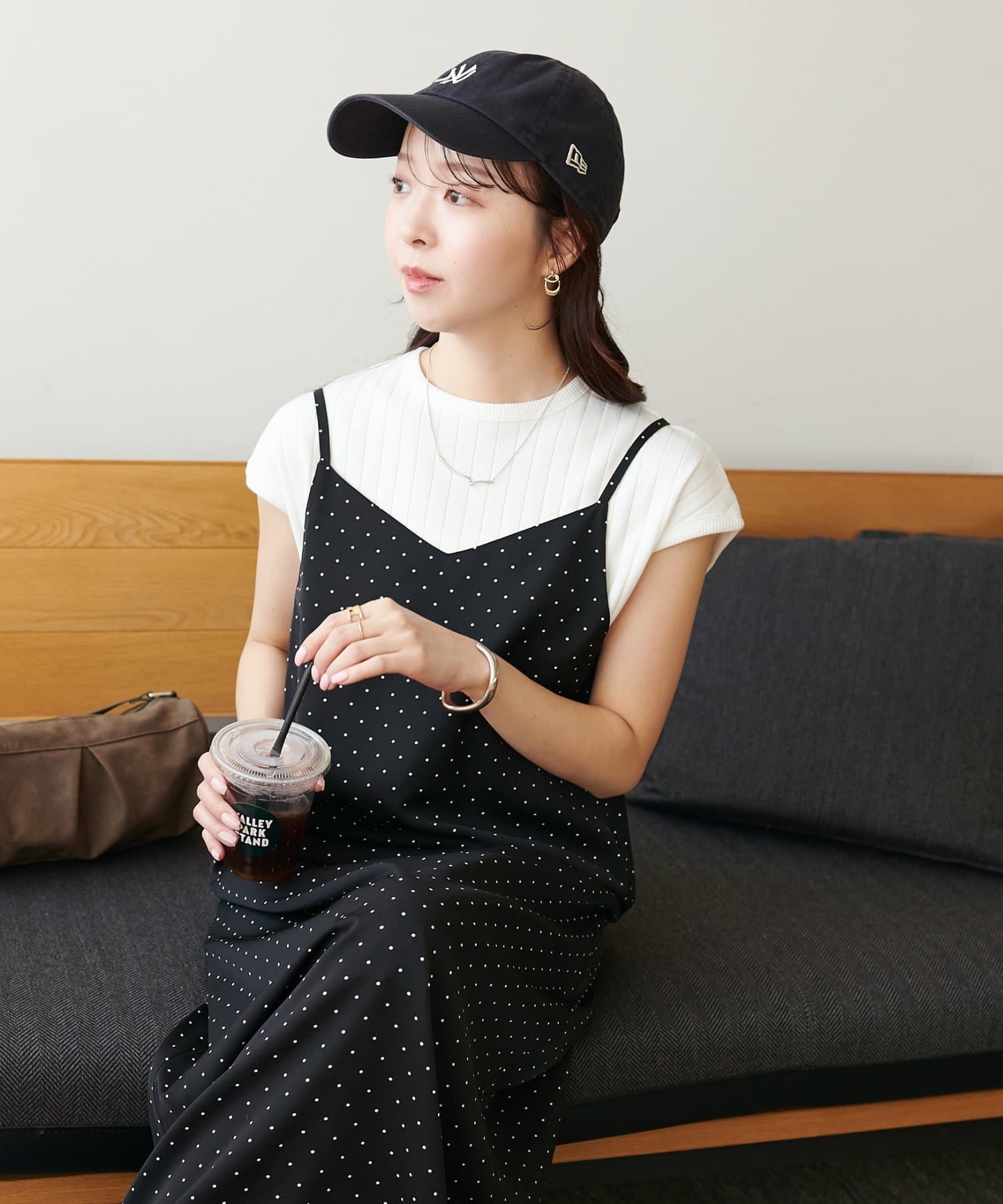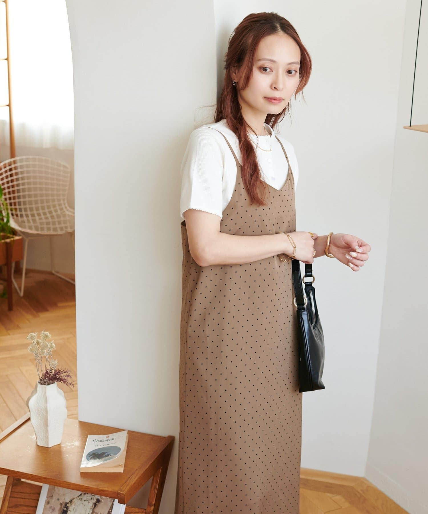 大人可愛い、ドット柄マキシキャミワンピース
