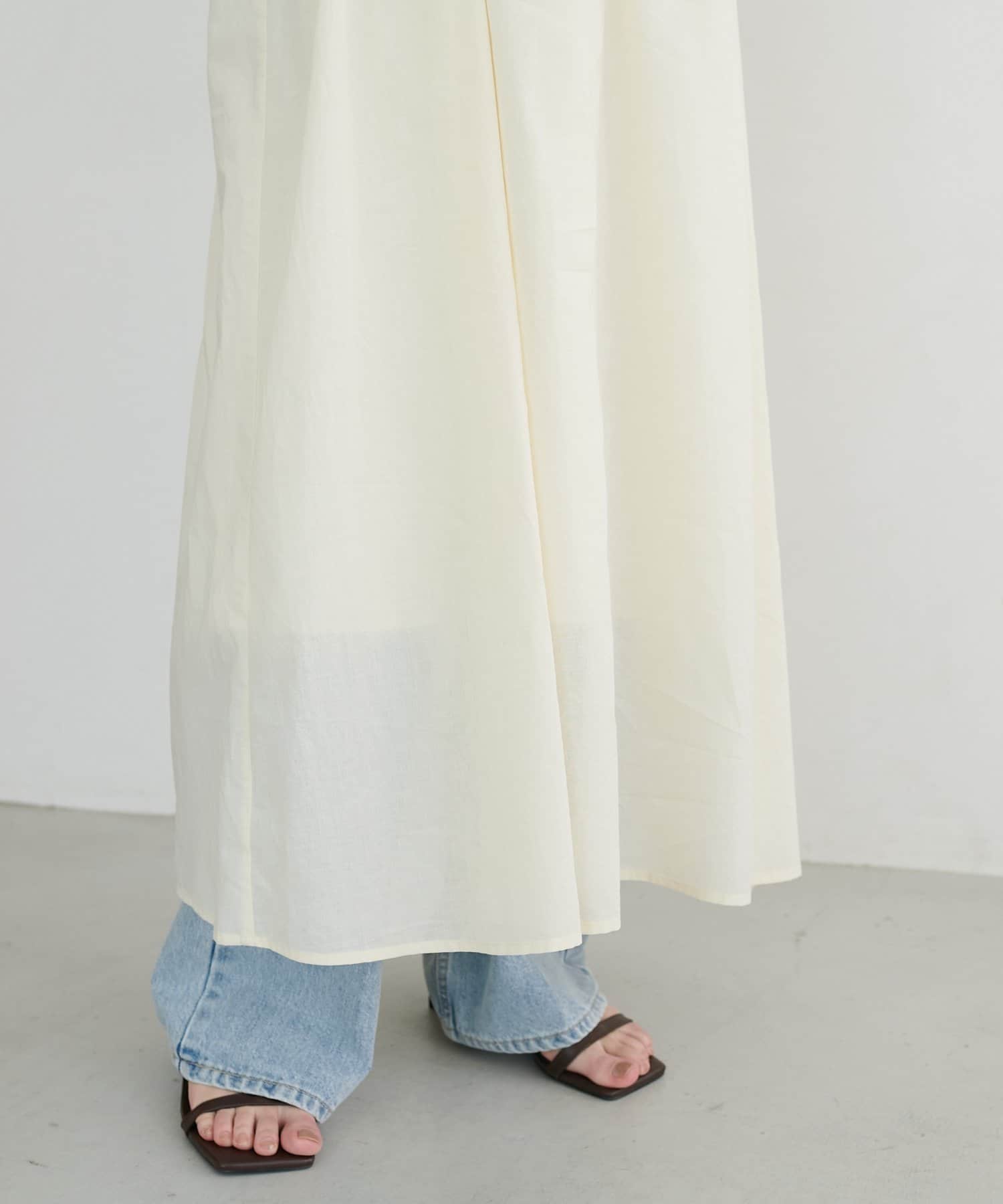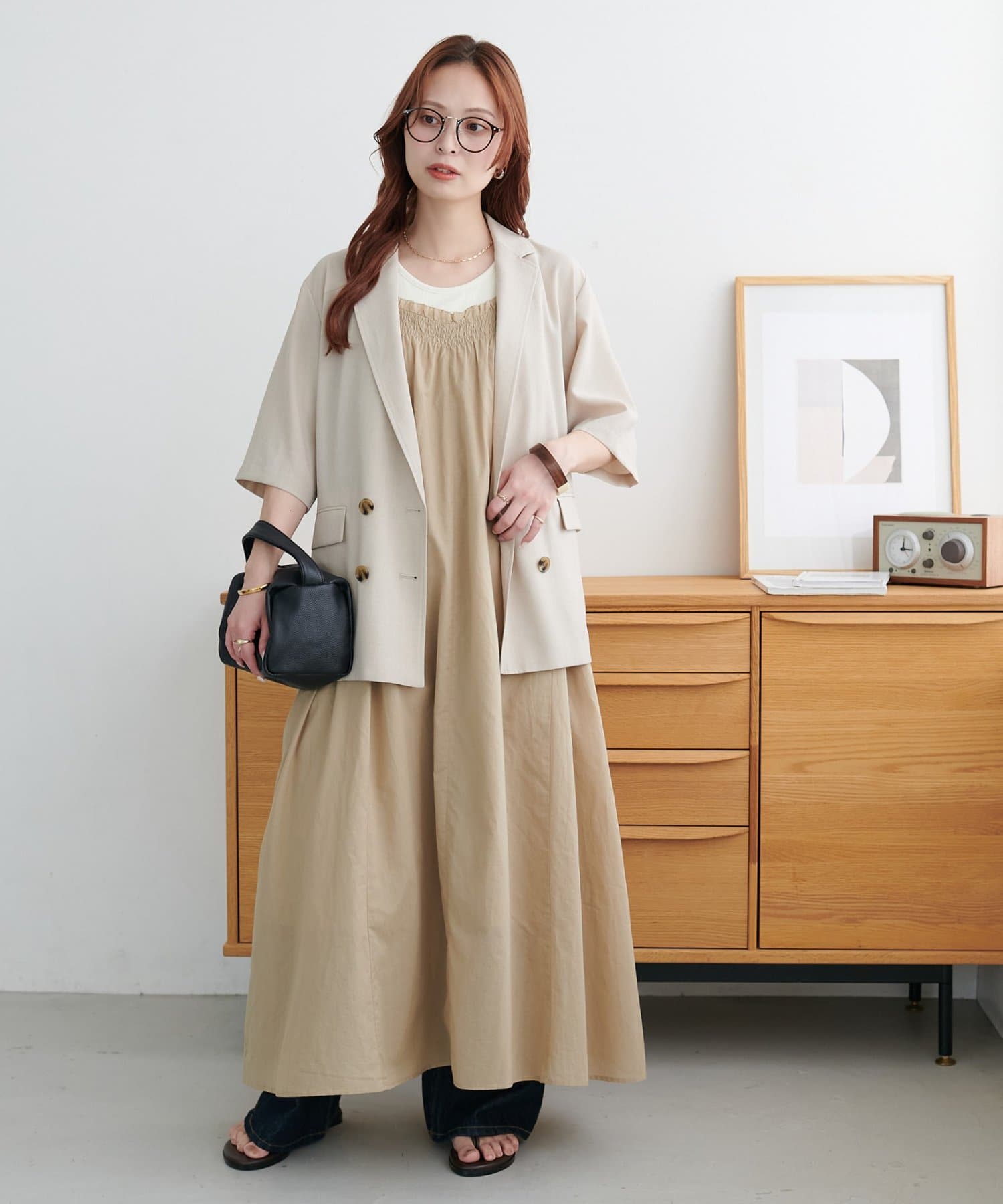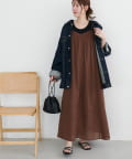 ・ワンピースの上からショート丈のカーディガンやシャツを羽織ると、目線が上がりスタイルアップ効果◎