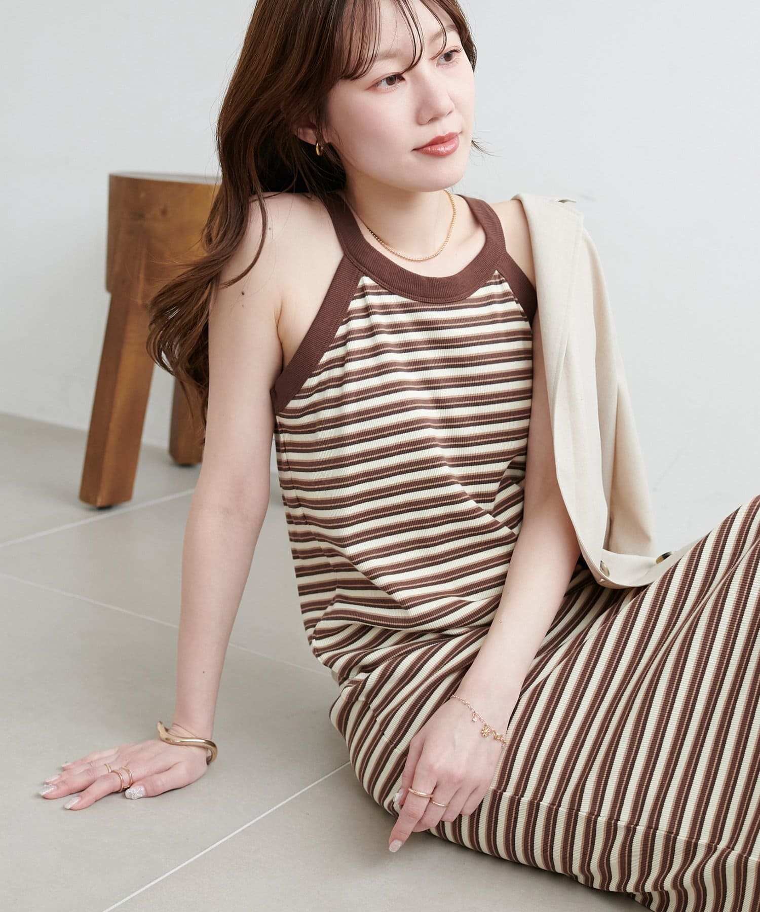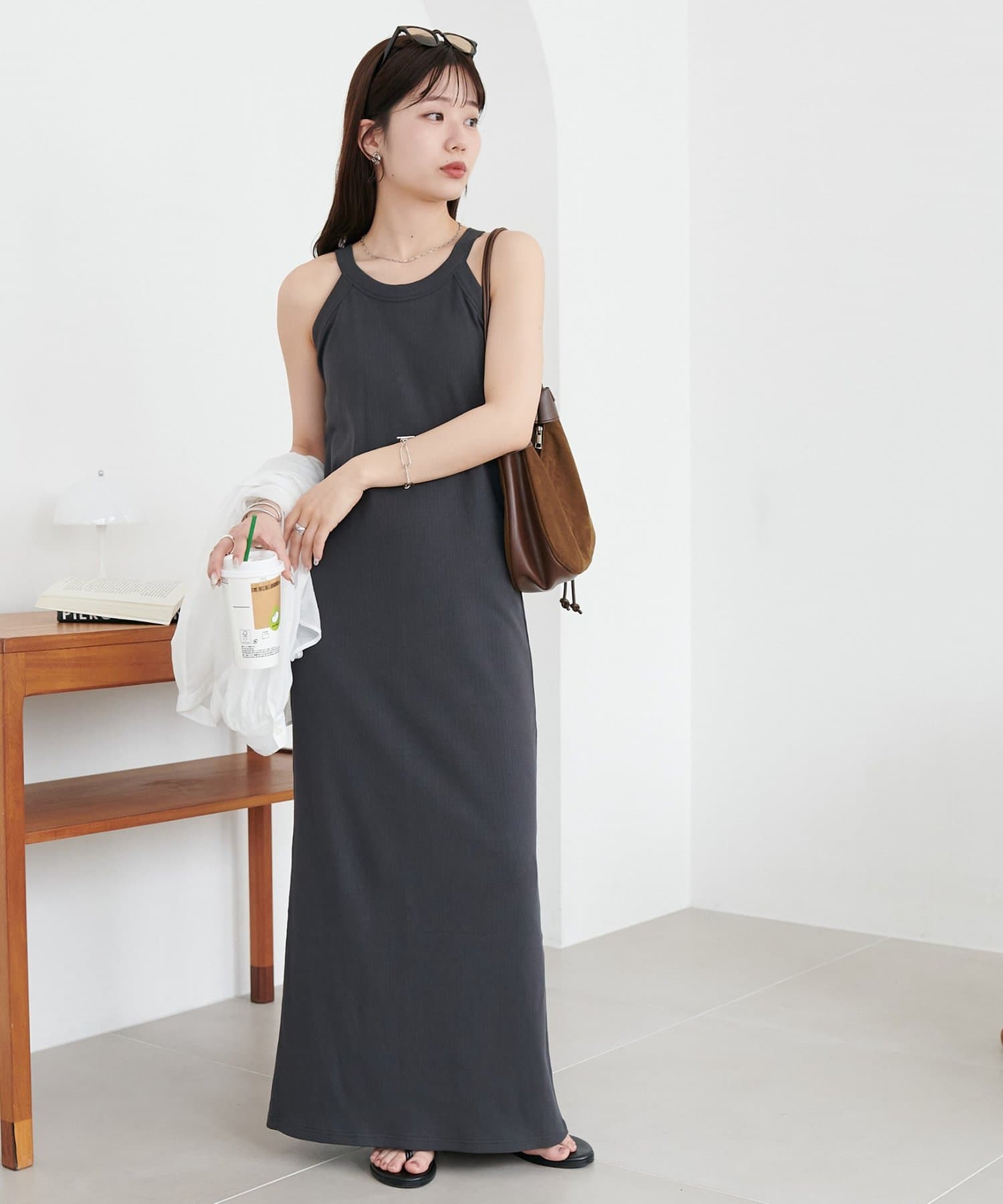 TOP > DISCOAT > レディース > ワンピース > ワンピース > 【3サイズ展開/快適な着心地&お洒落見え】カップ付アメスリリブワンピース