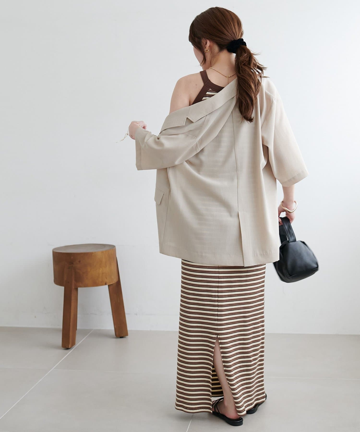 ・シアー感のあるシャツ合わせはヘルシーな印象を楽しめます。