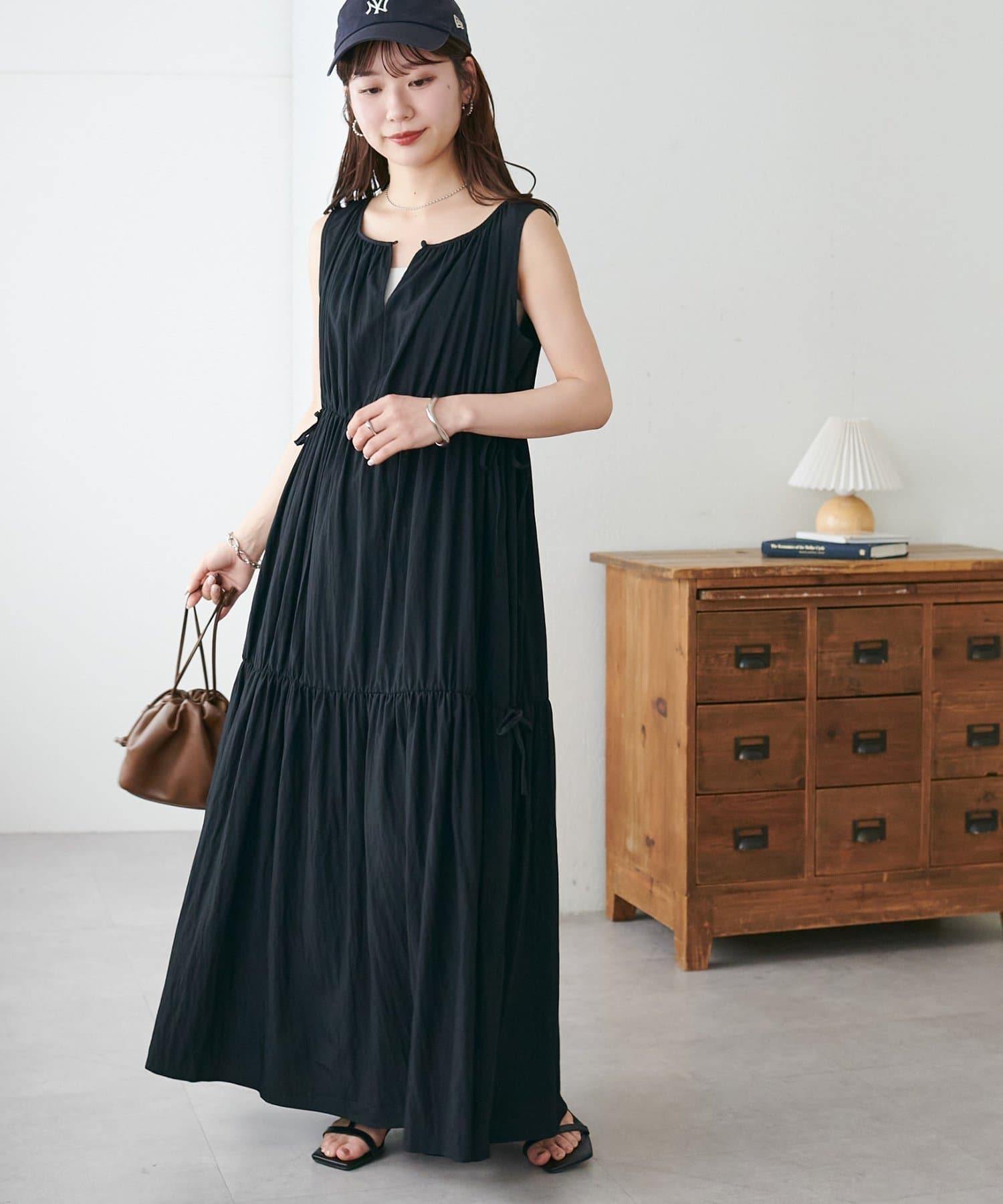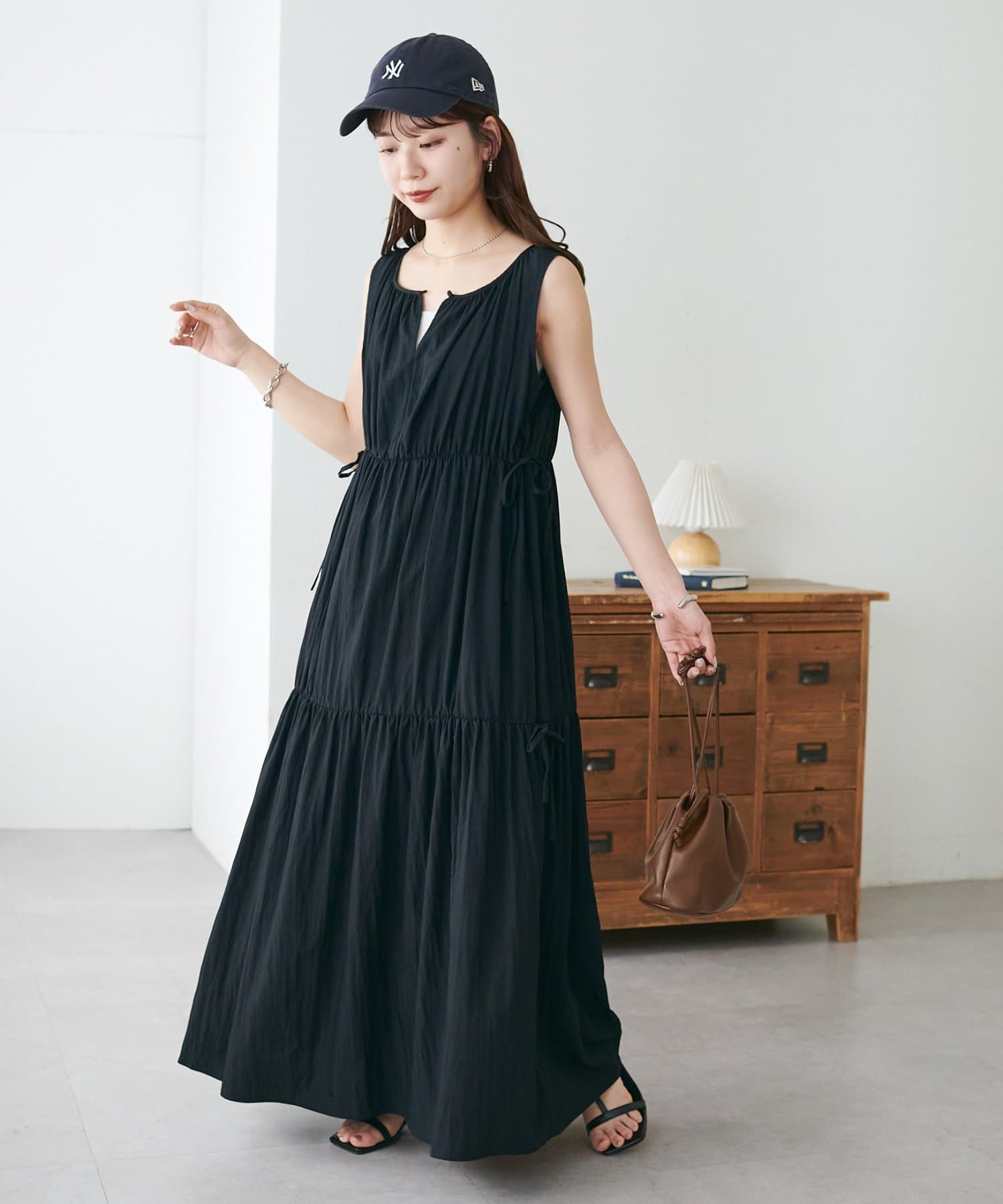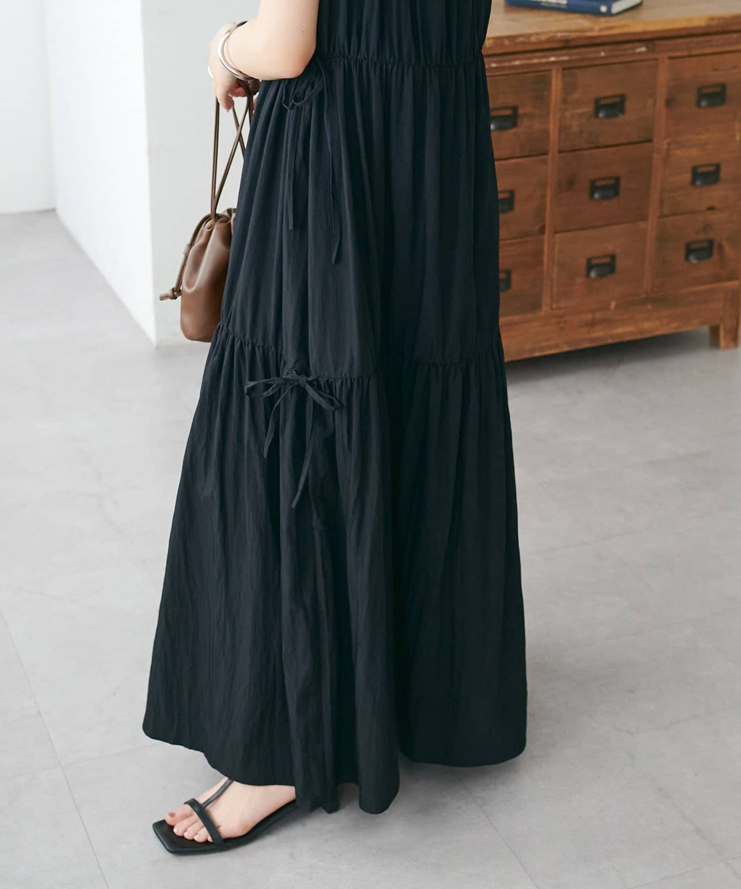 ウエストリボンティアードワンピース