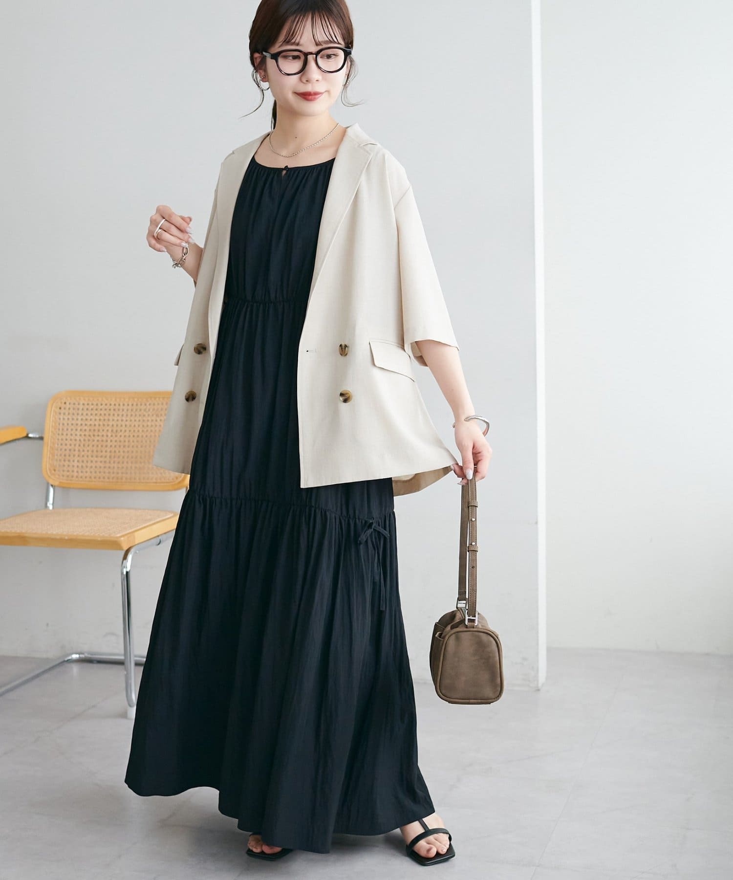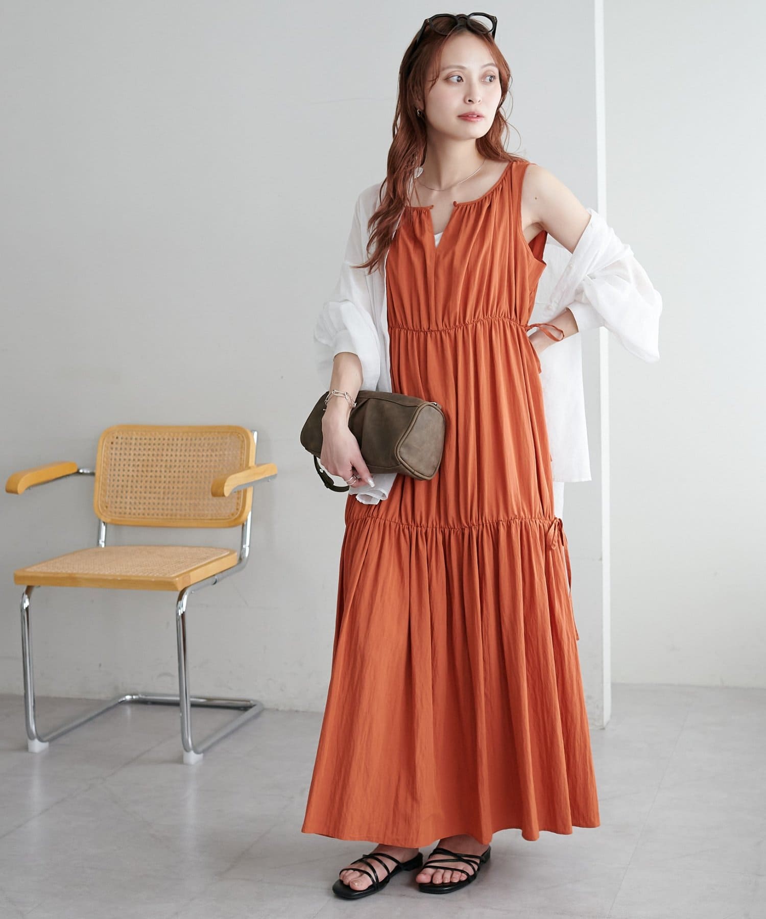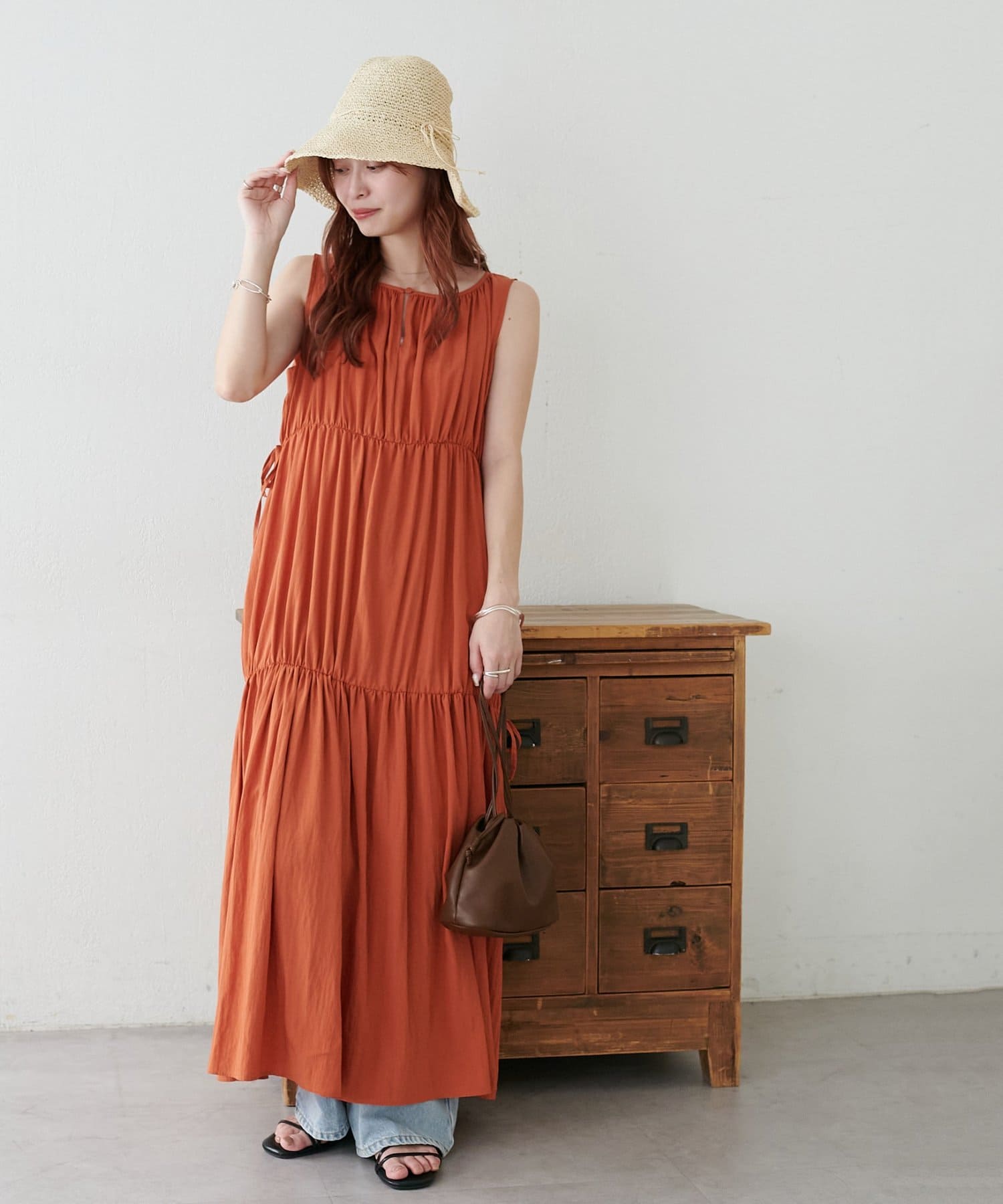 ウエストリボンティアードワンピース