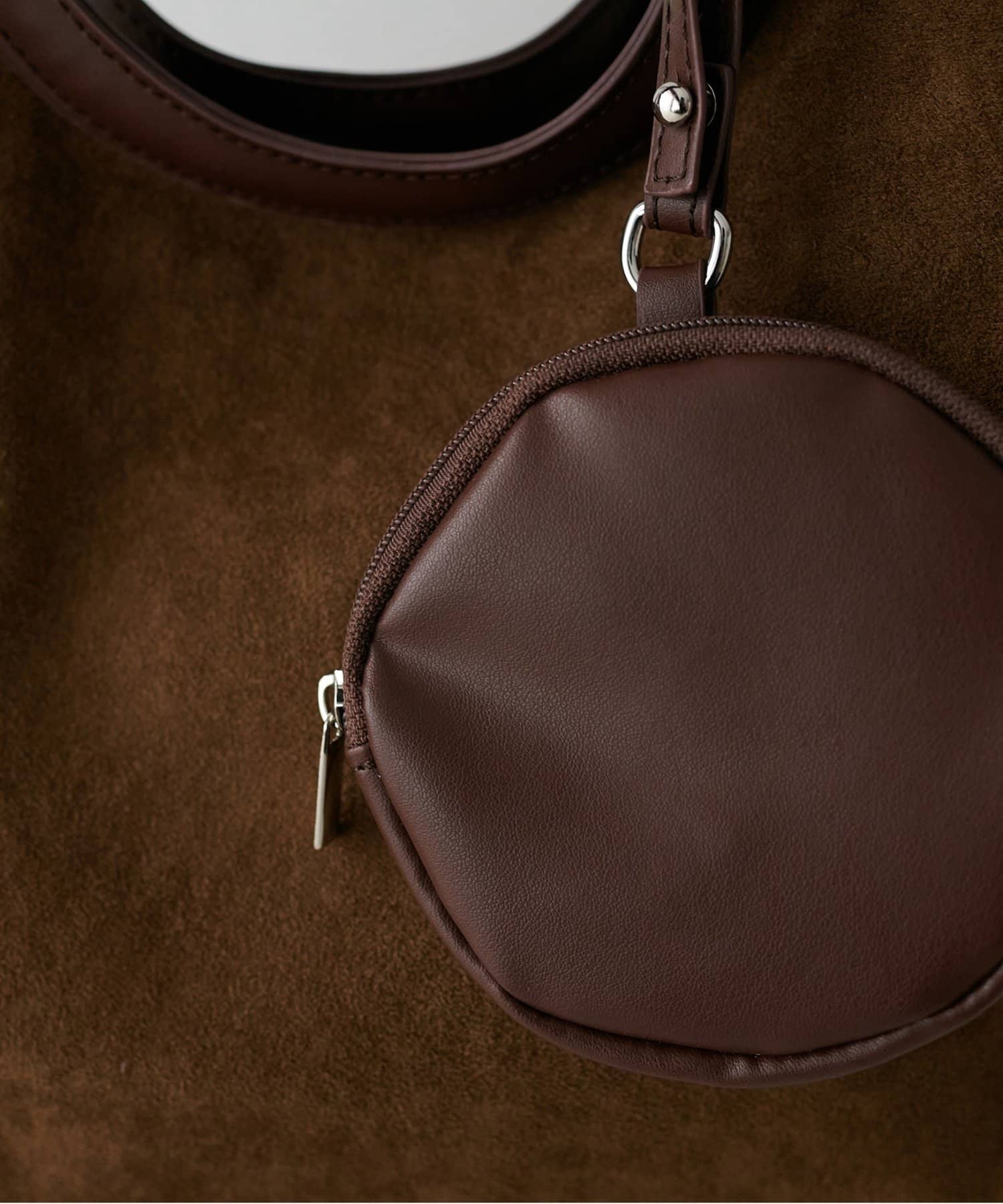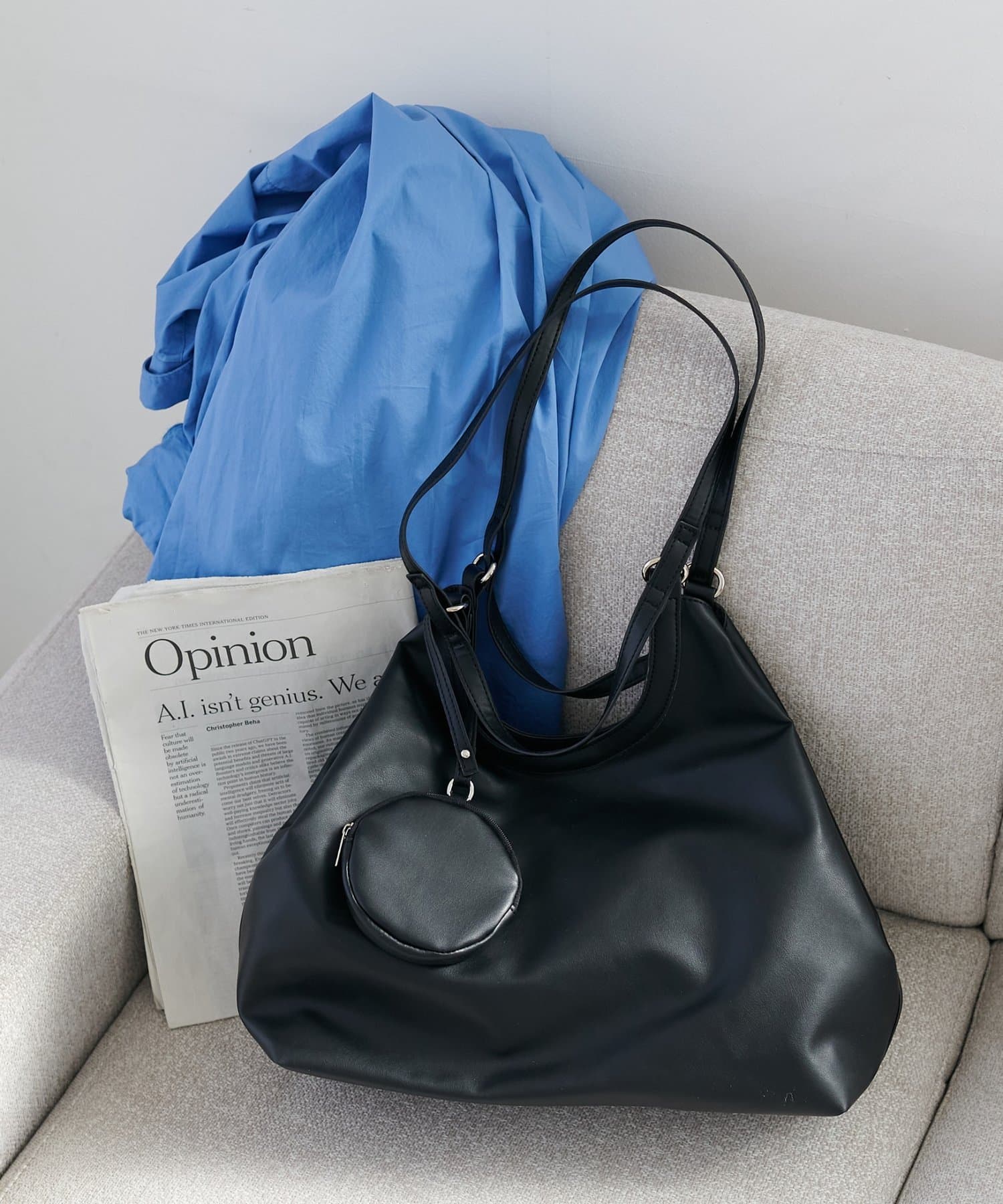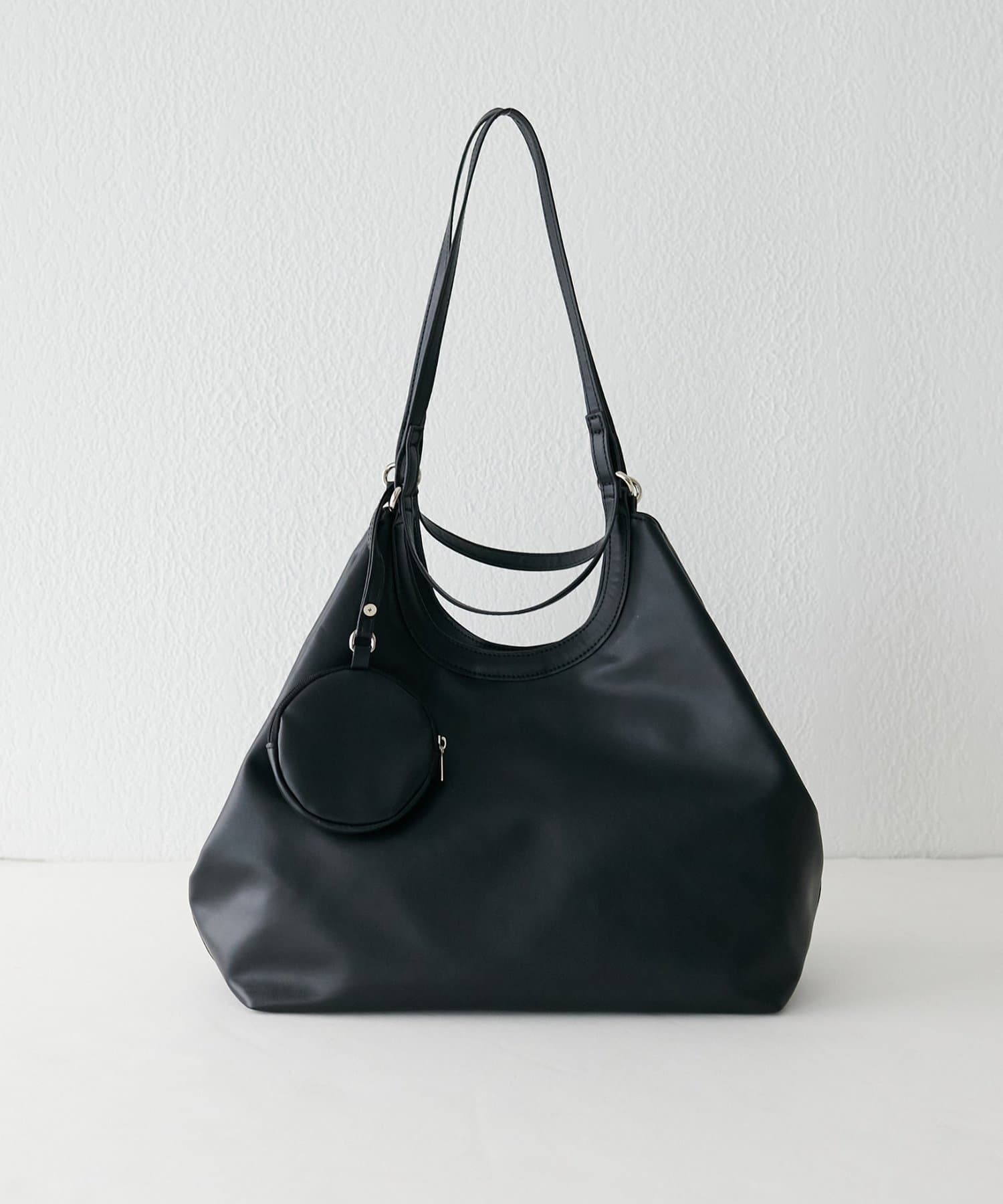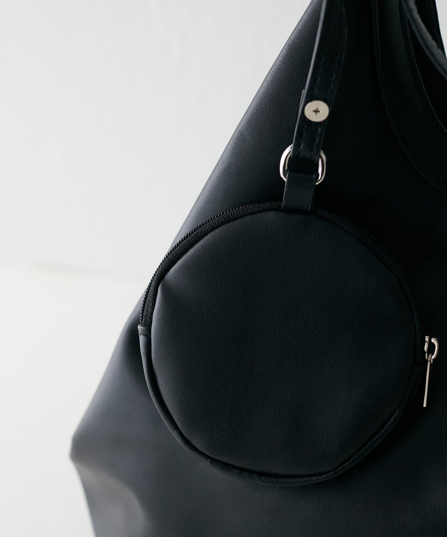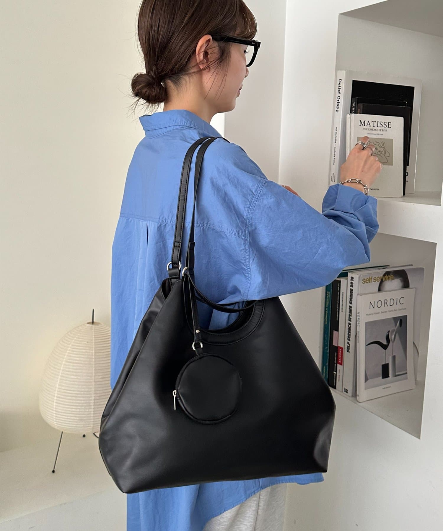 A4ファイルが横向きにすっぽりと収まるサイズ感で、デイリーユースはもちろん、通勤や通学用のバッグとしても最適◎持ち手が2つ付いているので、2WAYの持ち方ができます。また、ワイヤレスイヤホンやリップクリームなどの小物収納に重宝する、取り外し可能な丸型ミニポーチが付属しているのも魅力!