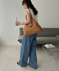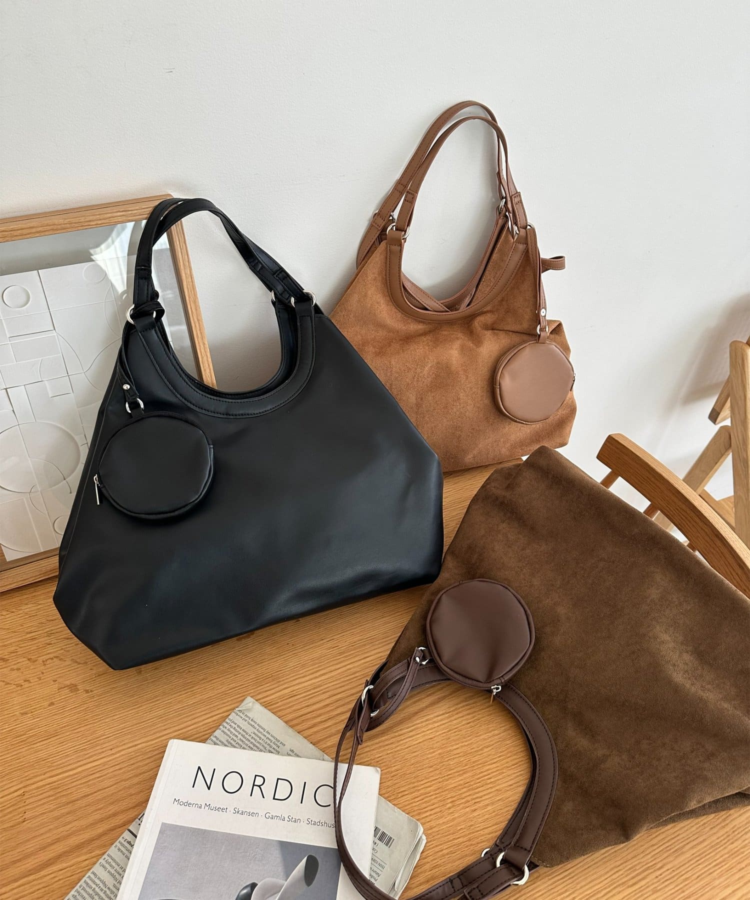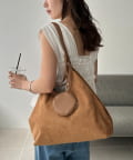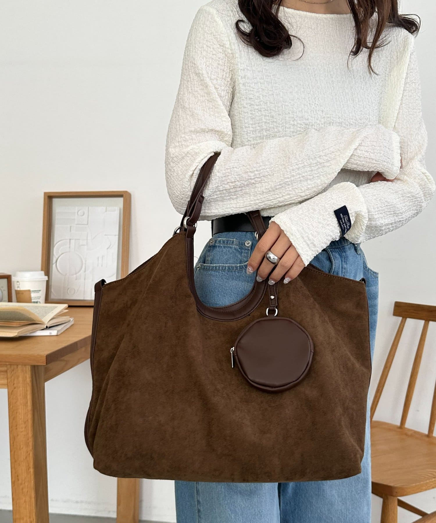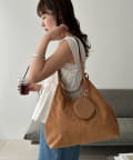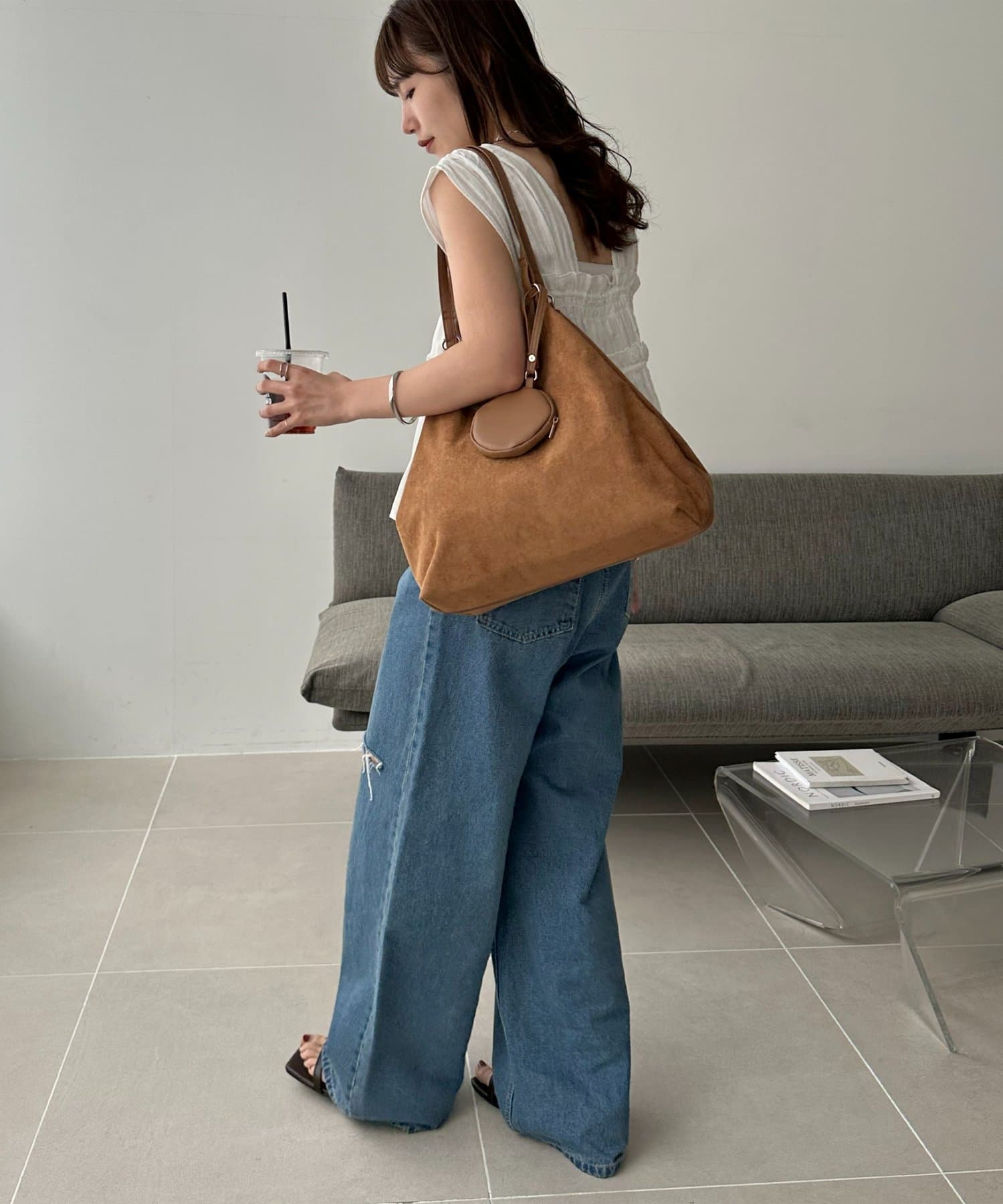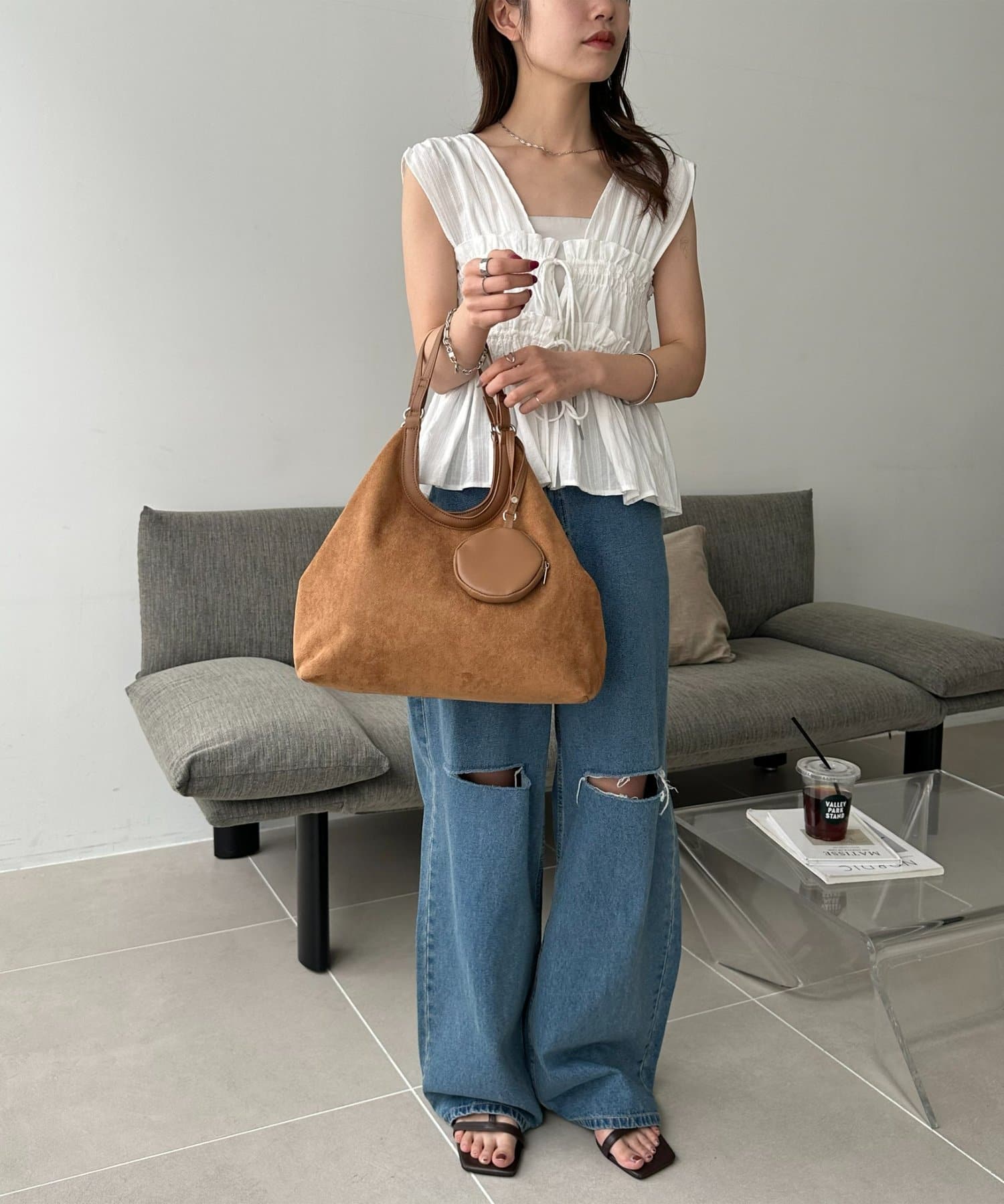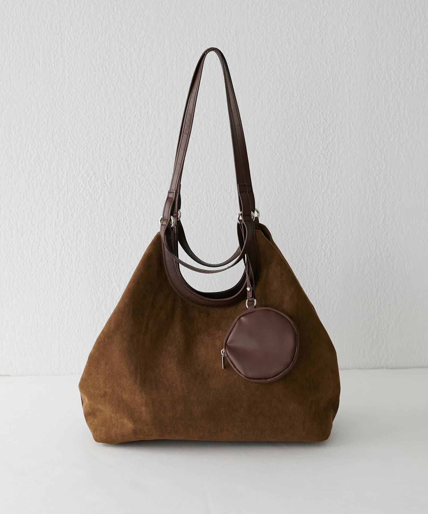 A4ファイルが横向きにすっぽりと収まるサイズ感で、デイリーユースはもちろん、通勤や通学用のバッグとしても最適◎持ち手が2つ付いているので、2WAYの持ち方ができます。また、ワイヤレスイヤホンやリップクリームなどの小物収納に重宝する、取り外し可能な丸型ミニポーチが付属しているのも魅力!