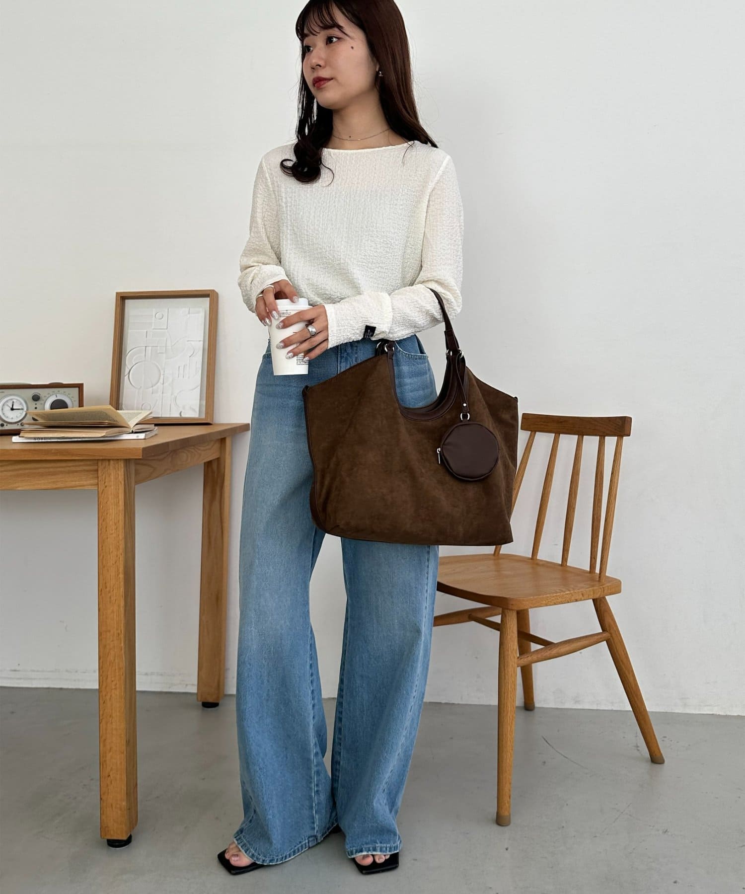 カジュアルなデニムスタイルから、きれいめなオフィススタイルまで、どんなスタイリングにも馴染む万能バッグです♪