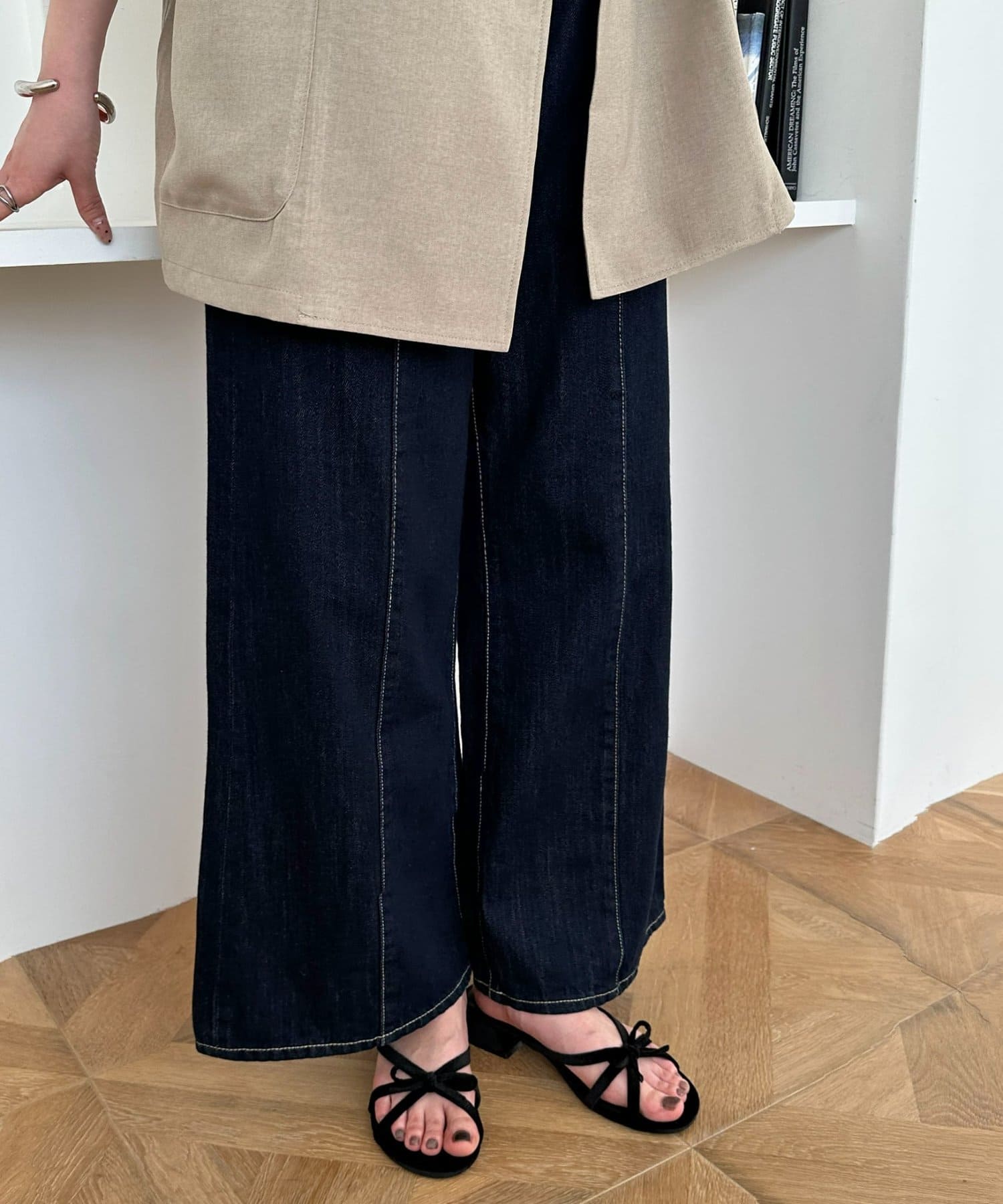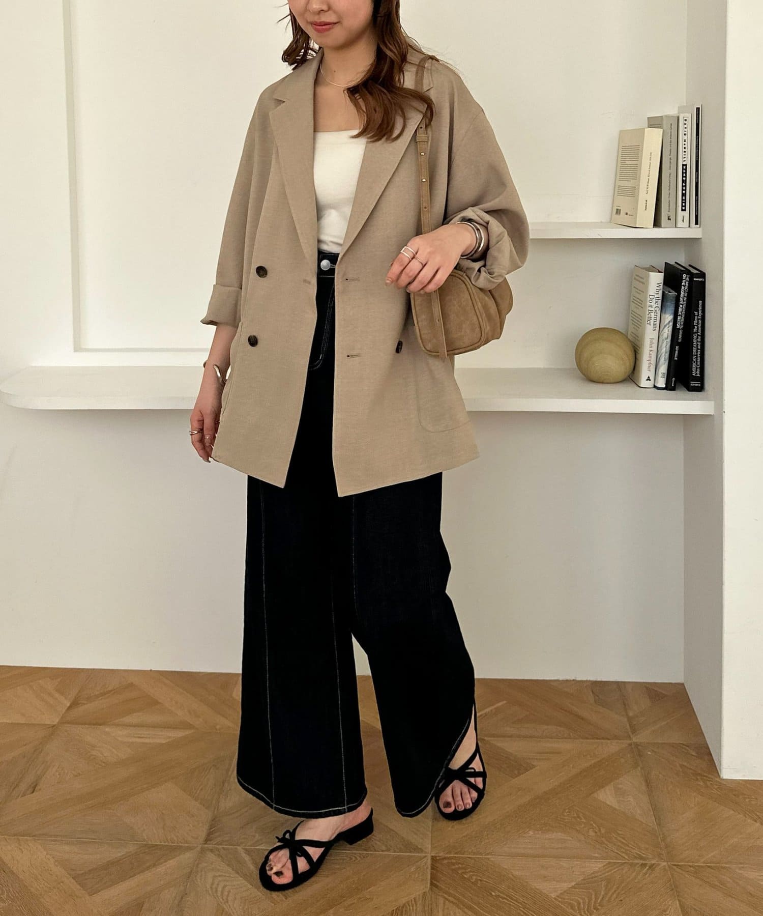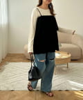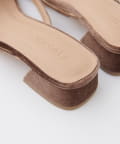 素足でさらりと履くのはもちろん、春先や秋口にはシアーソックスや薄手のリブソックスとのレイヤードスタイルも楽しめます。ミュールの内側はつるりとした合成皮革を使用しているため、ベロアの繊維が靴下に付着する心配がなく、気兼ねなくスタイリングをお楽しみいただけます。