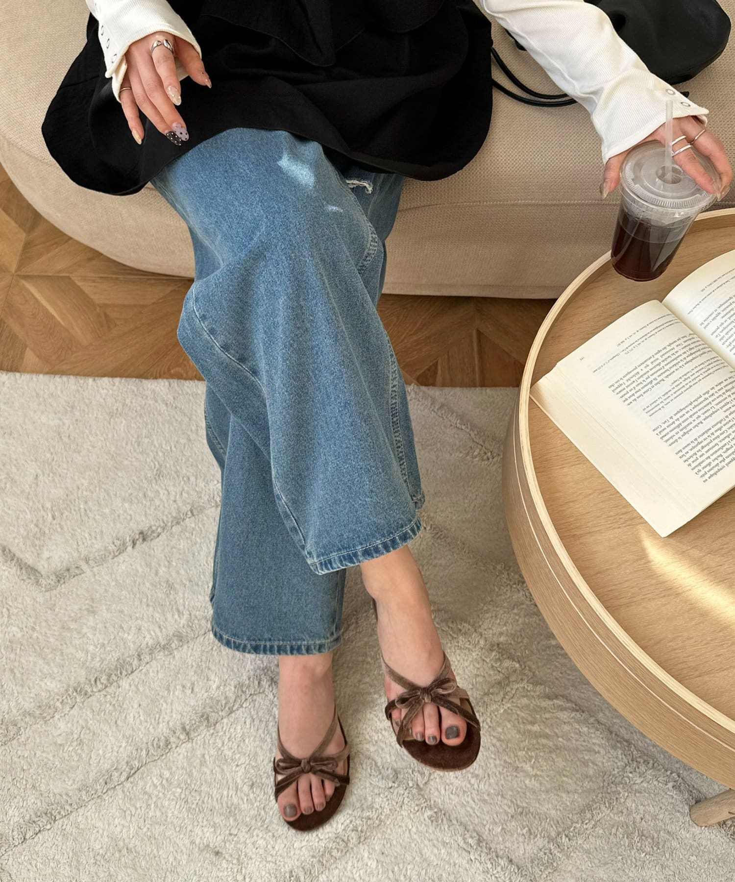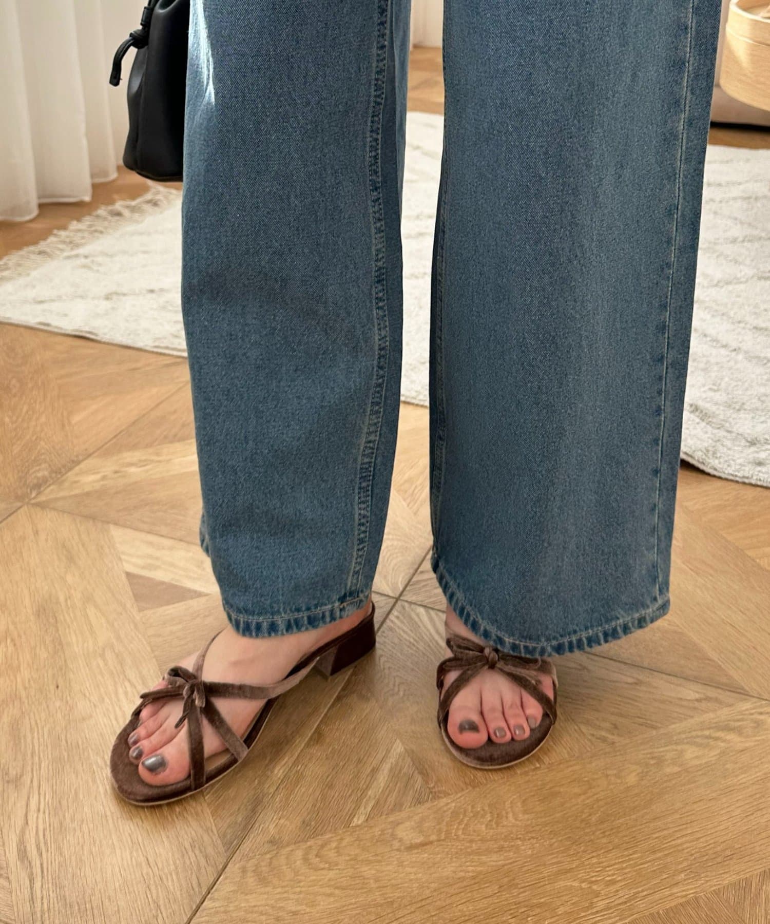 【2/26(木)10:00~先行予約】 ベロアクロスリボンミュール