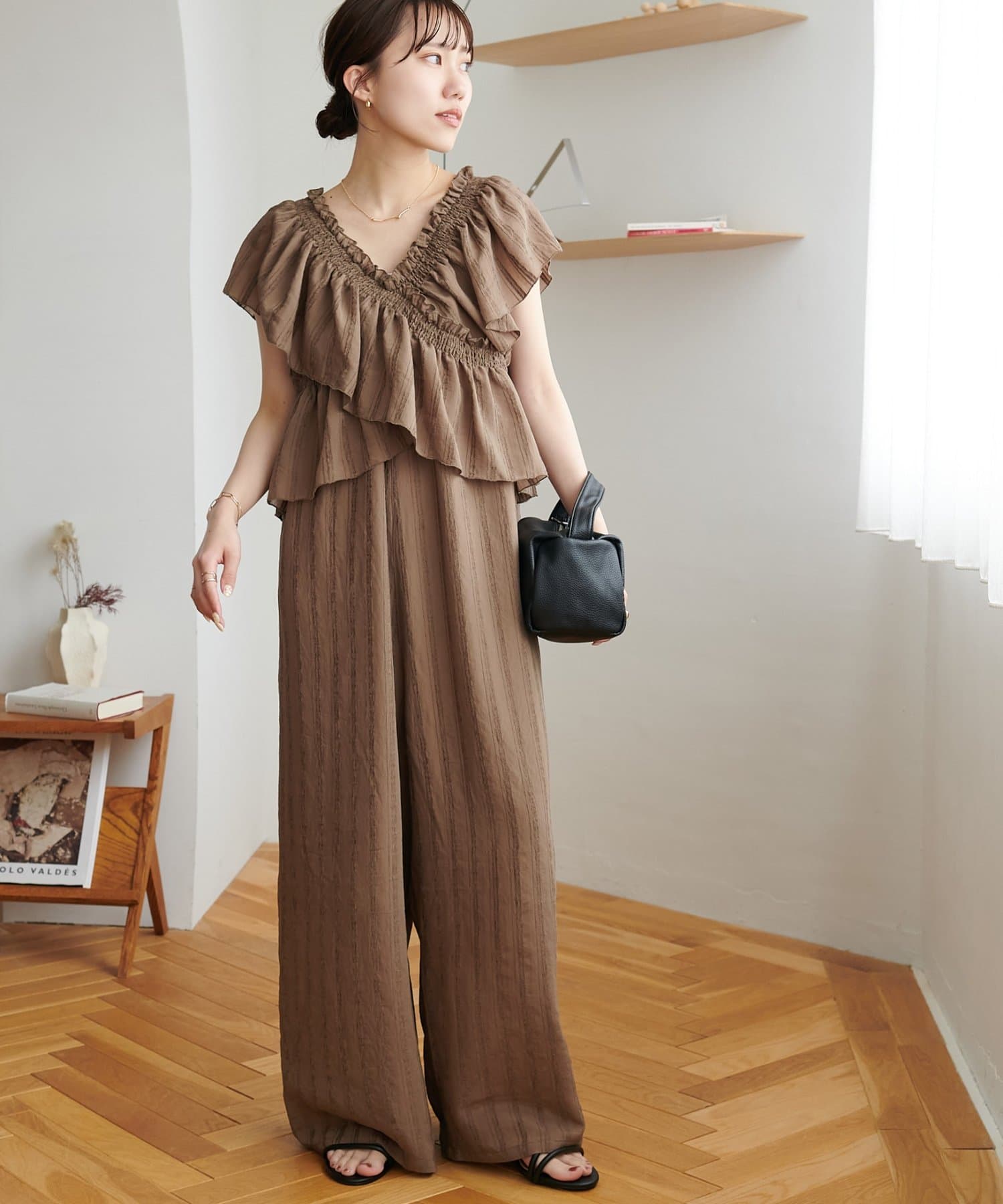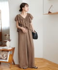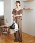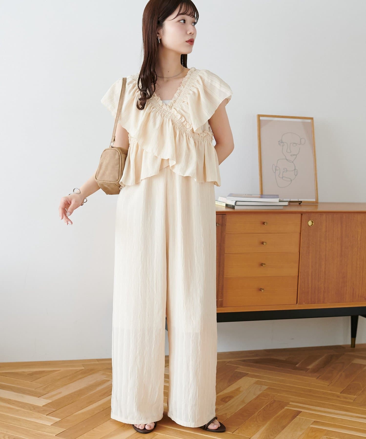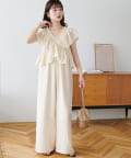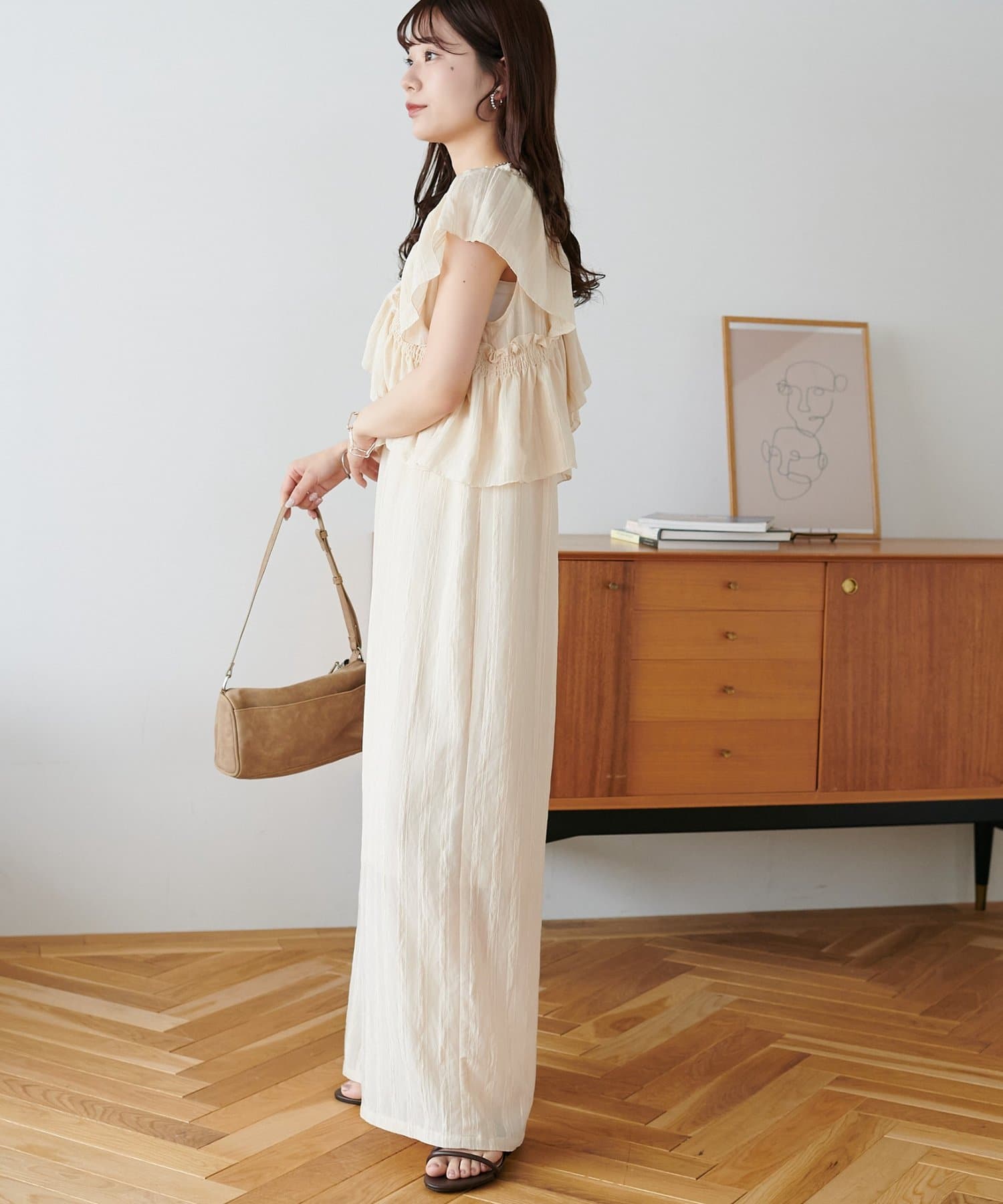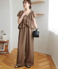 ・さらりとした落ち感のある素材とゆったりとしたワイドパンツで、リラクシーな着心地!