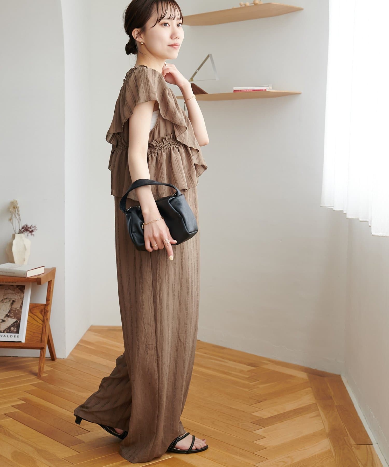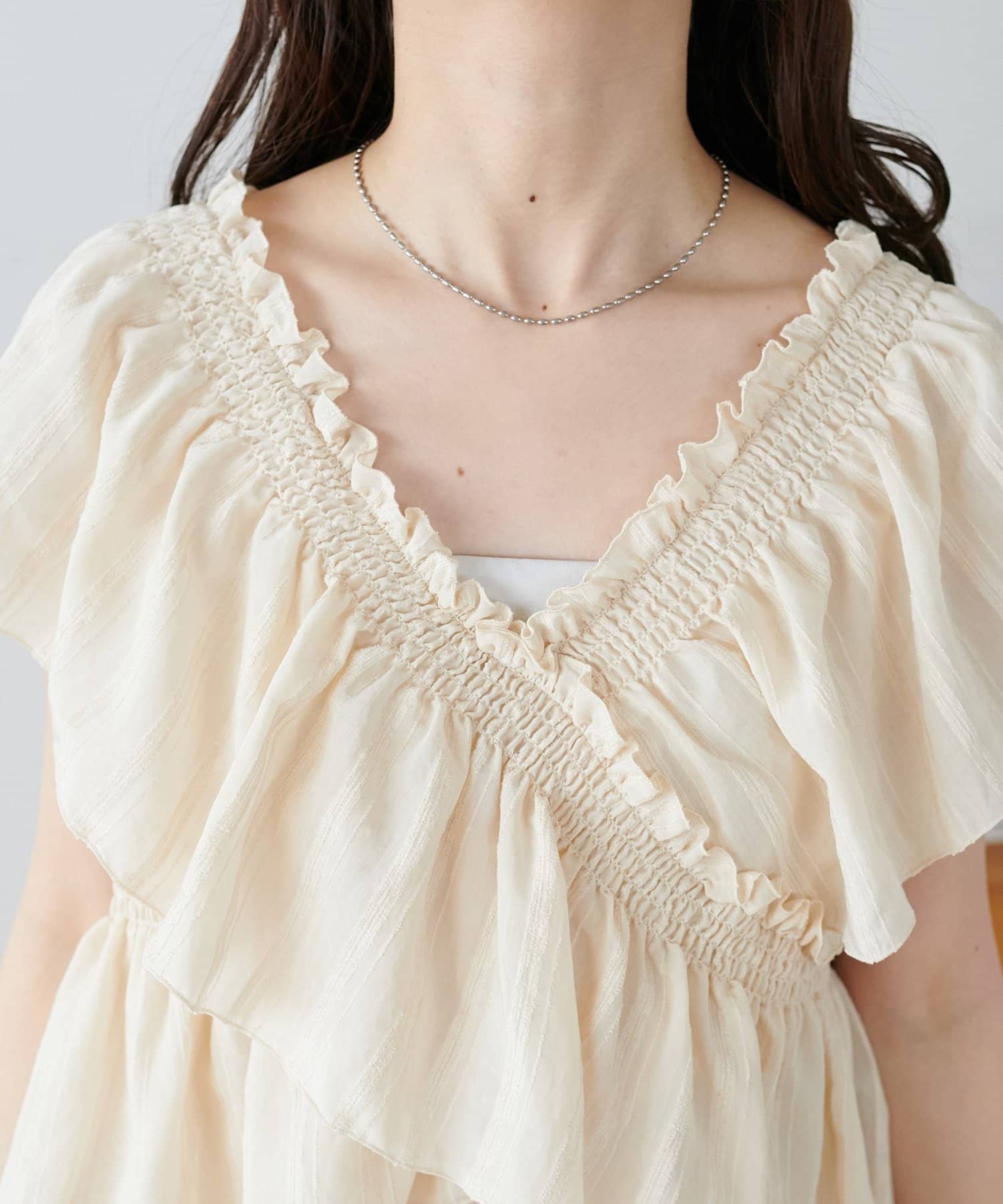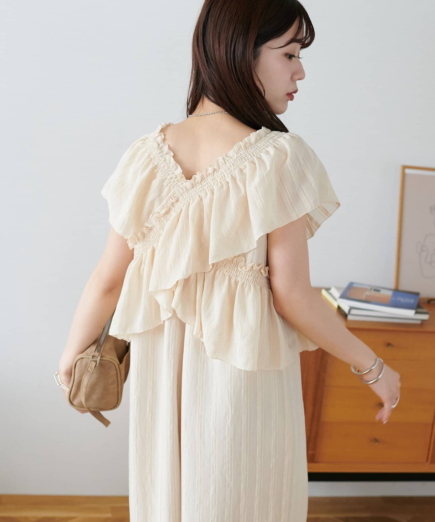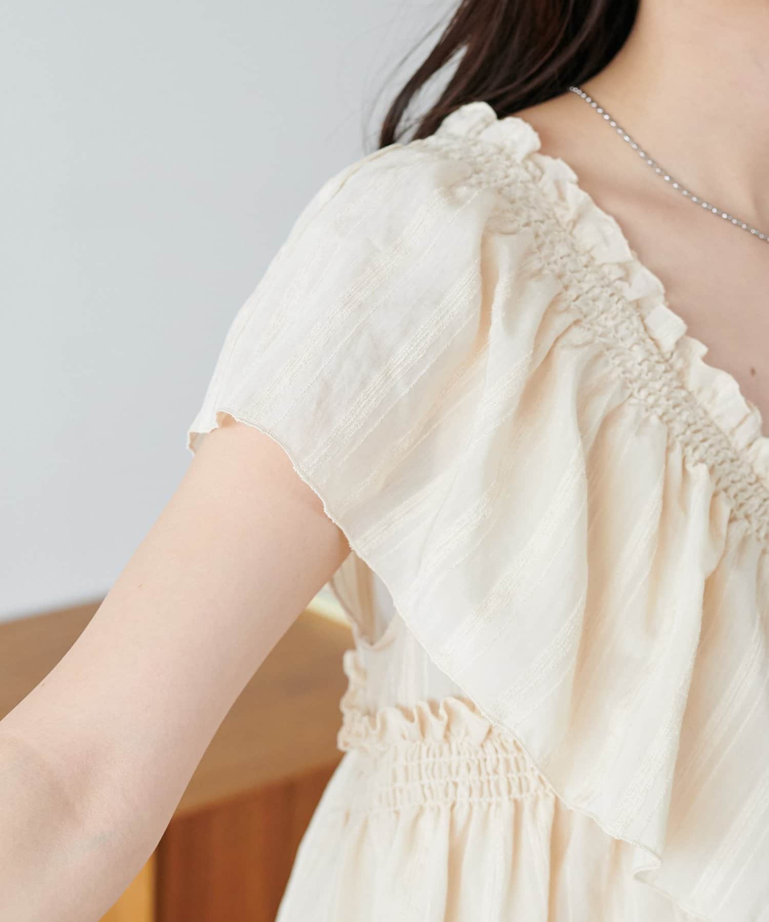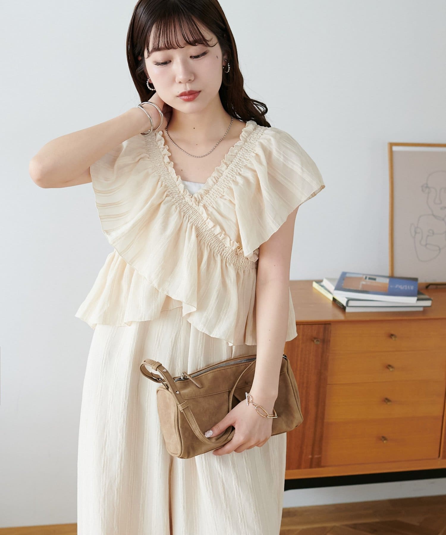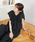 ・肩から二の腕をふんわりとカバーしてくれるフリルデザインで、さりげない体型カバーを叶えます◎