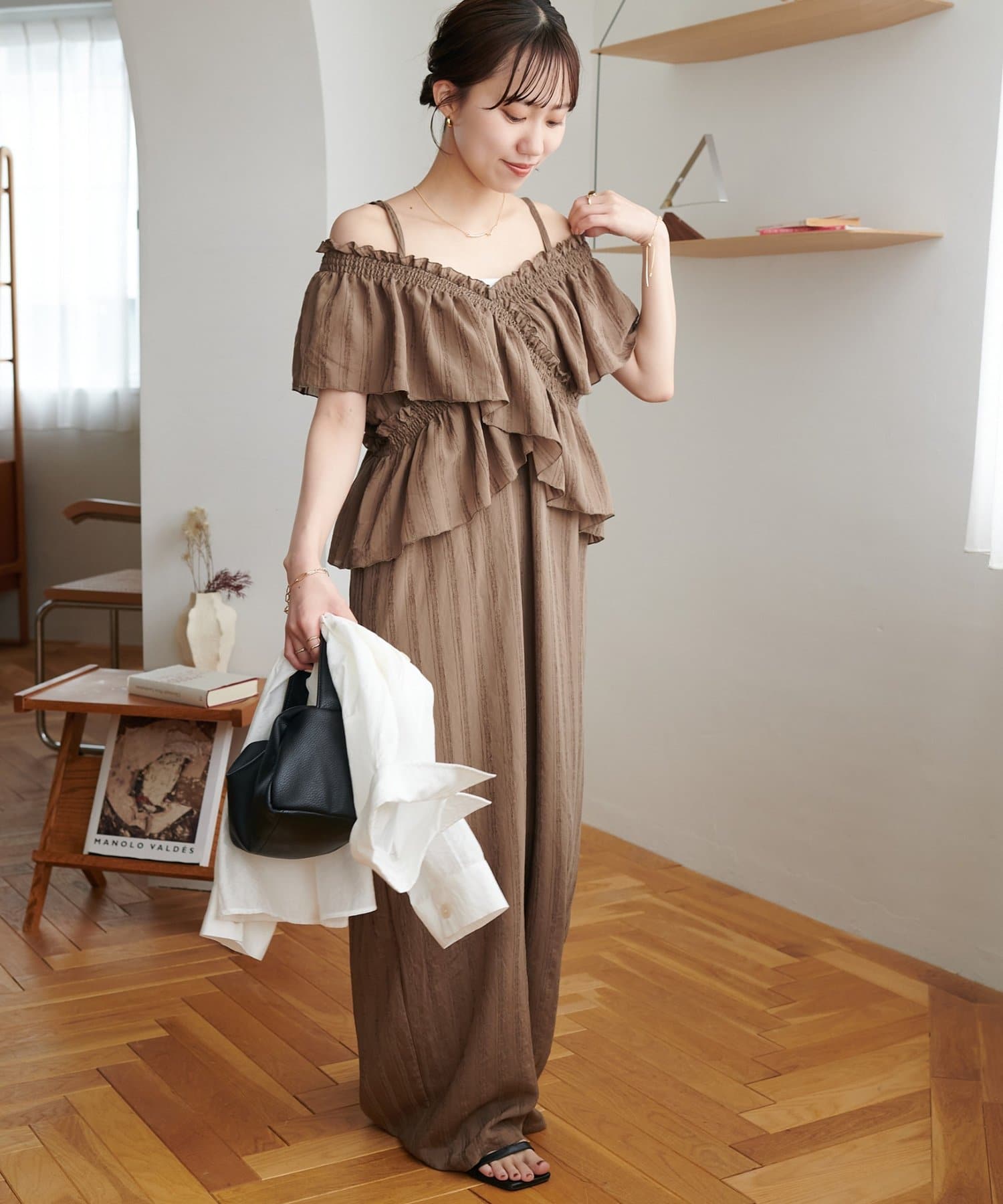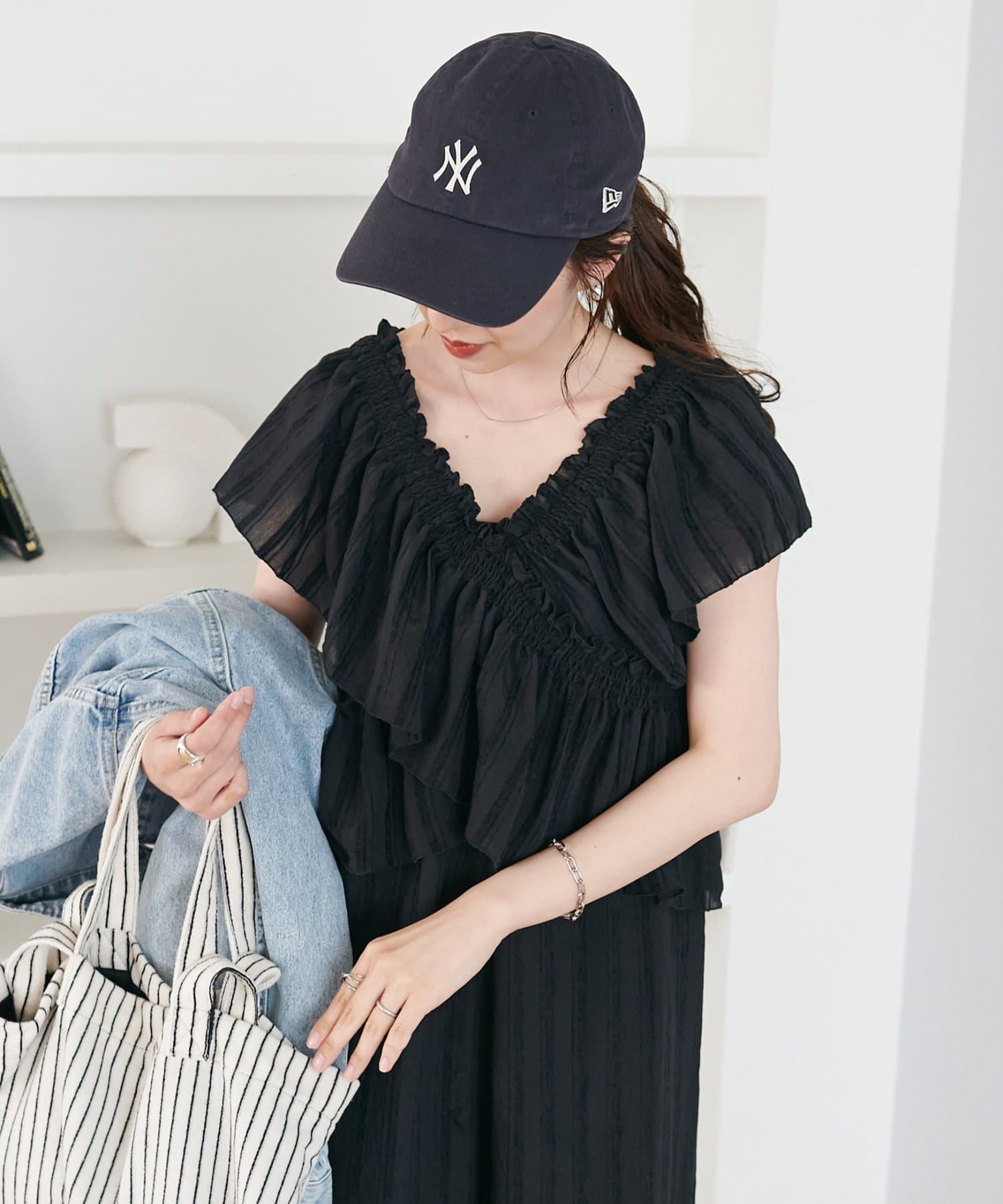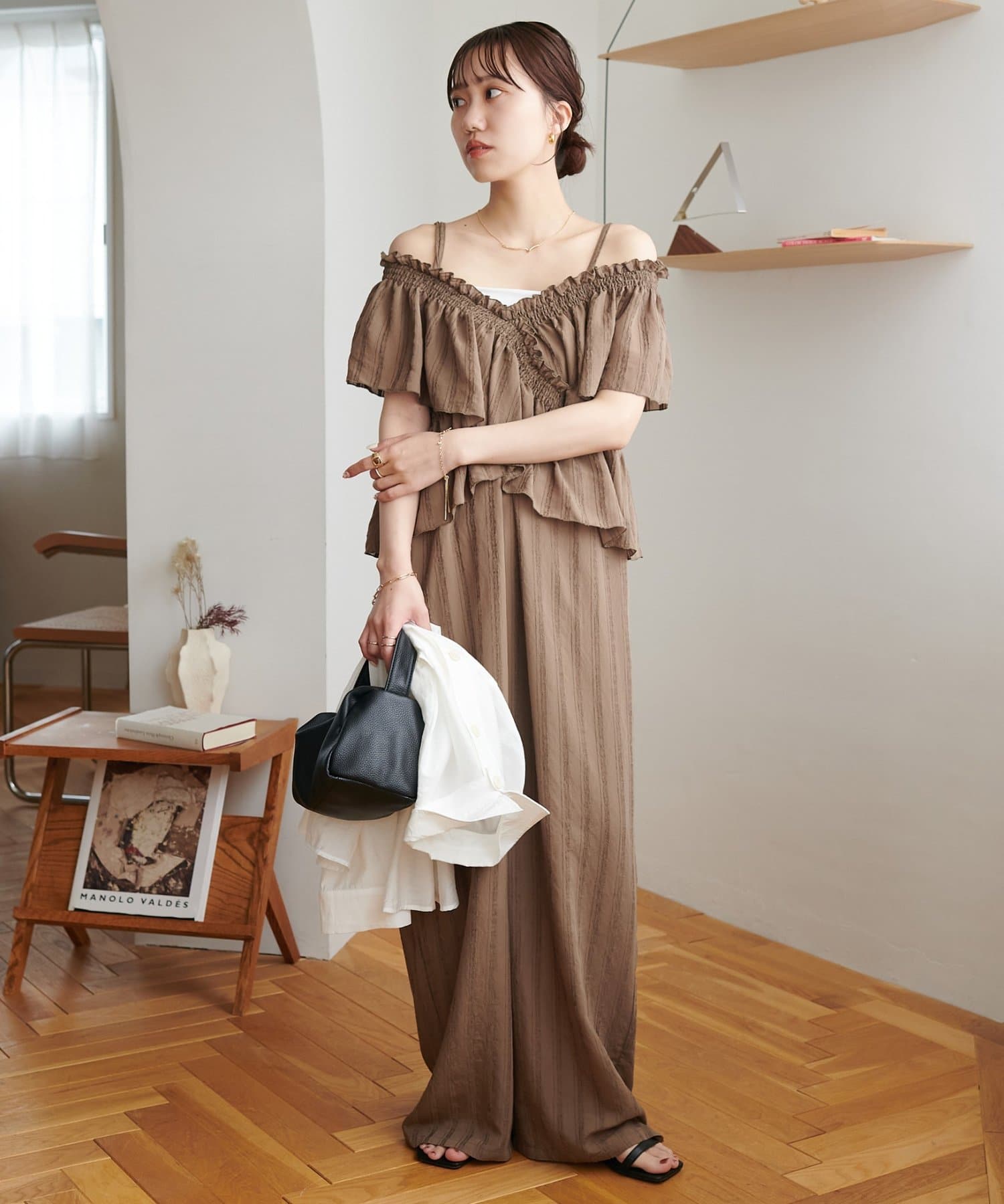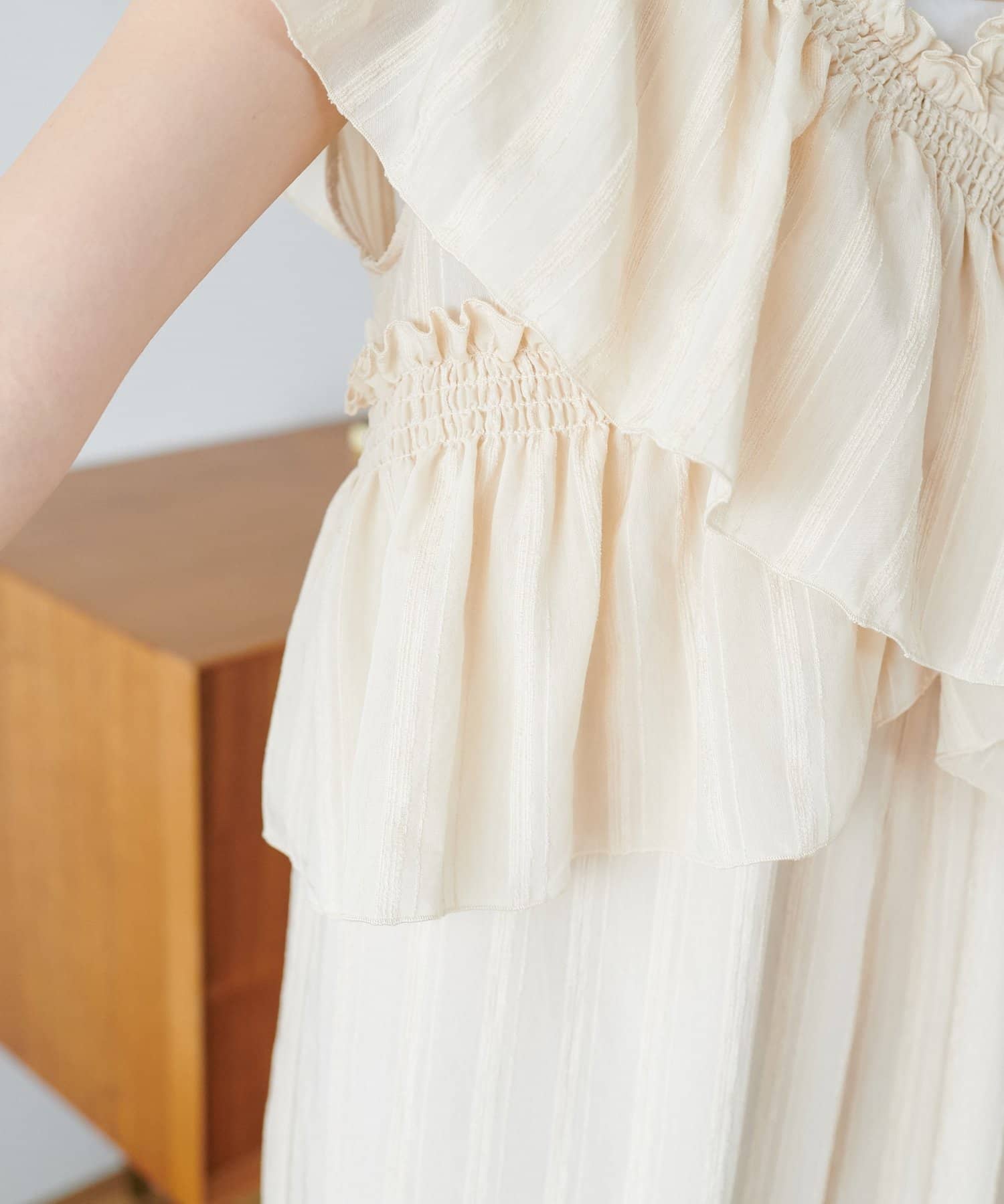 ・肩から二の腕をふんわりとカバーしてくれるフリルデザインで、さりげない体型カバーを叶えます◎
