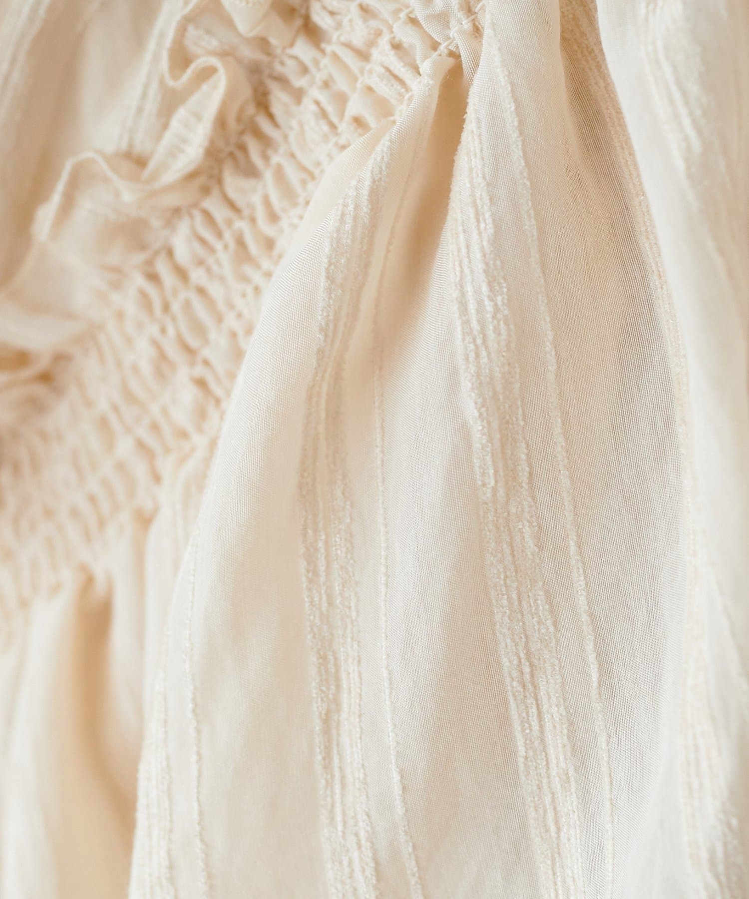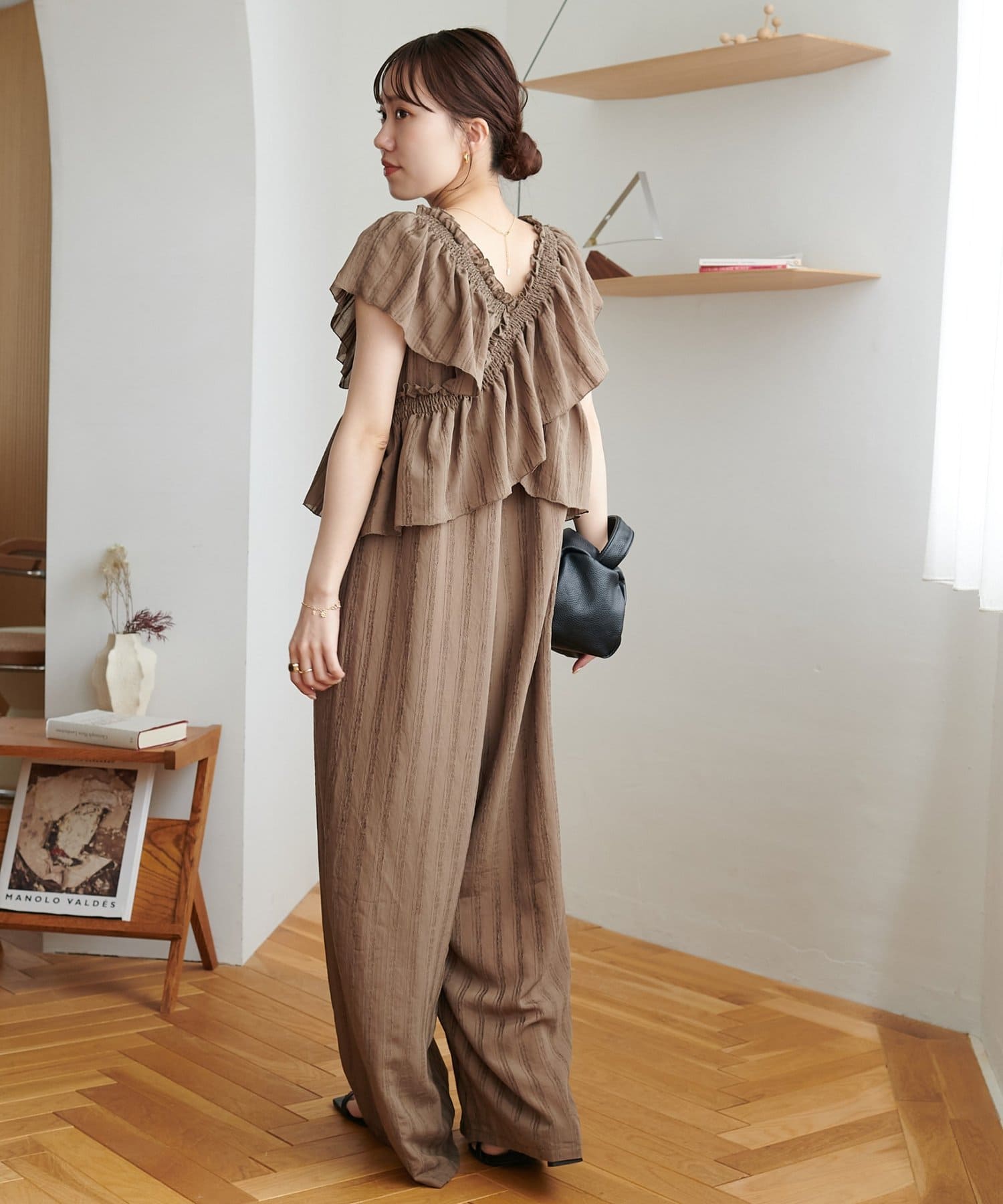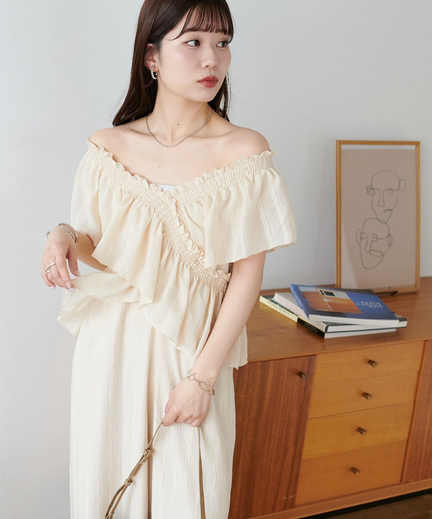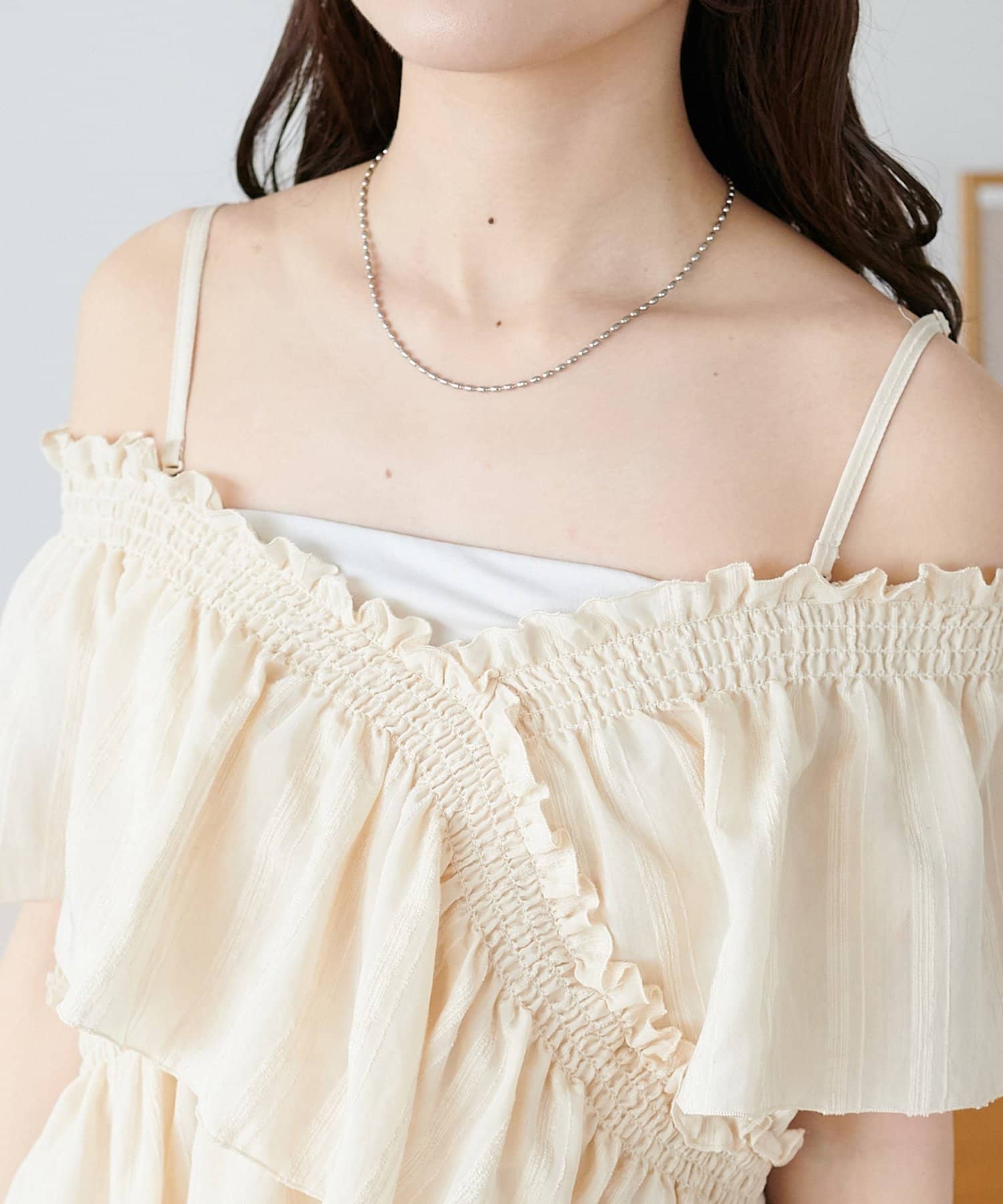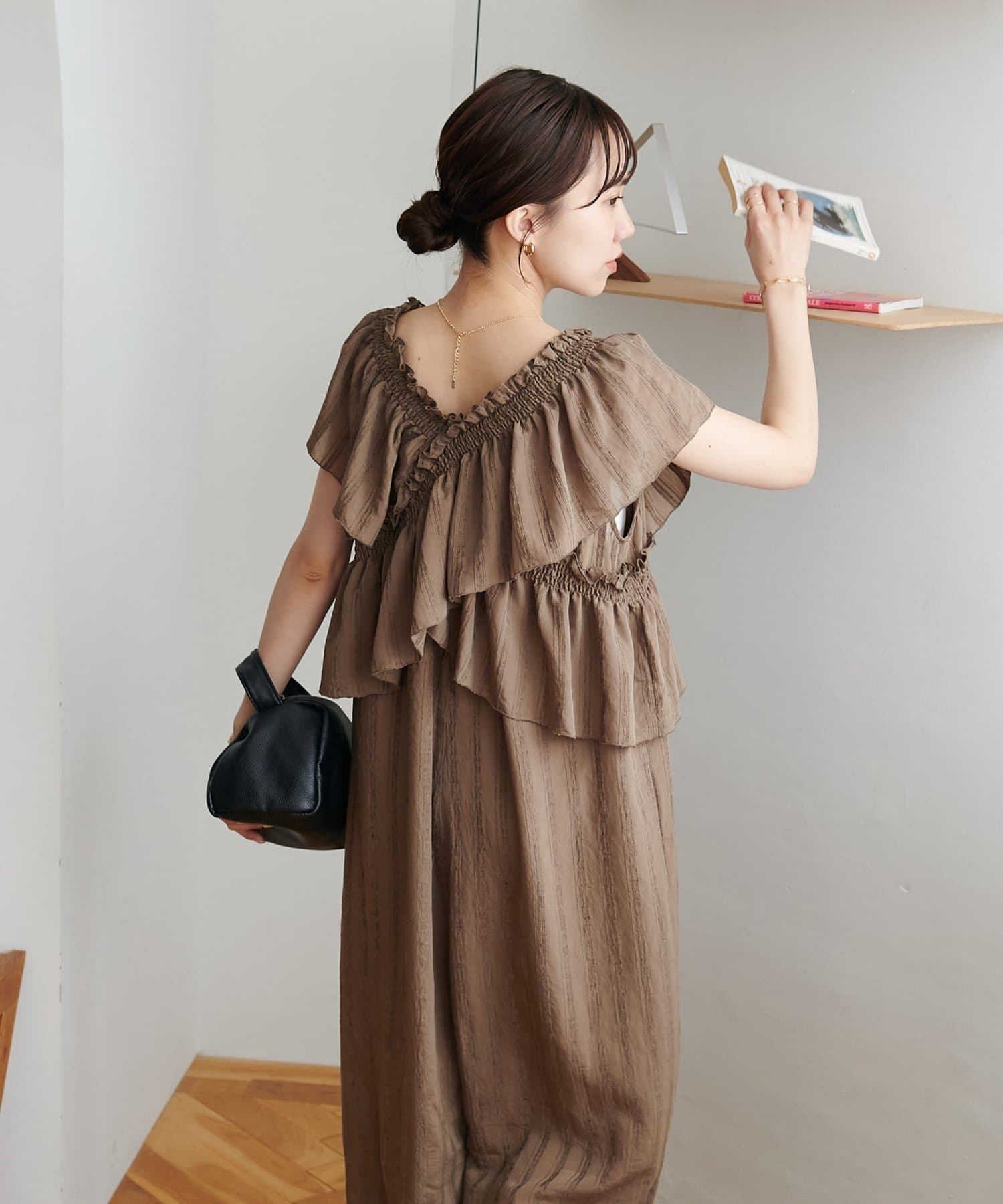 ・肩から二の腕をふんわりとカバーしてくれるフリルデザインで、さりげない体型カバーを叶えます◎