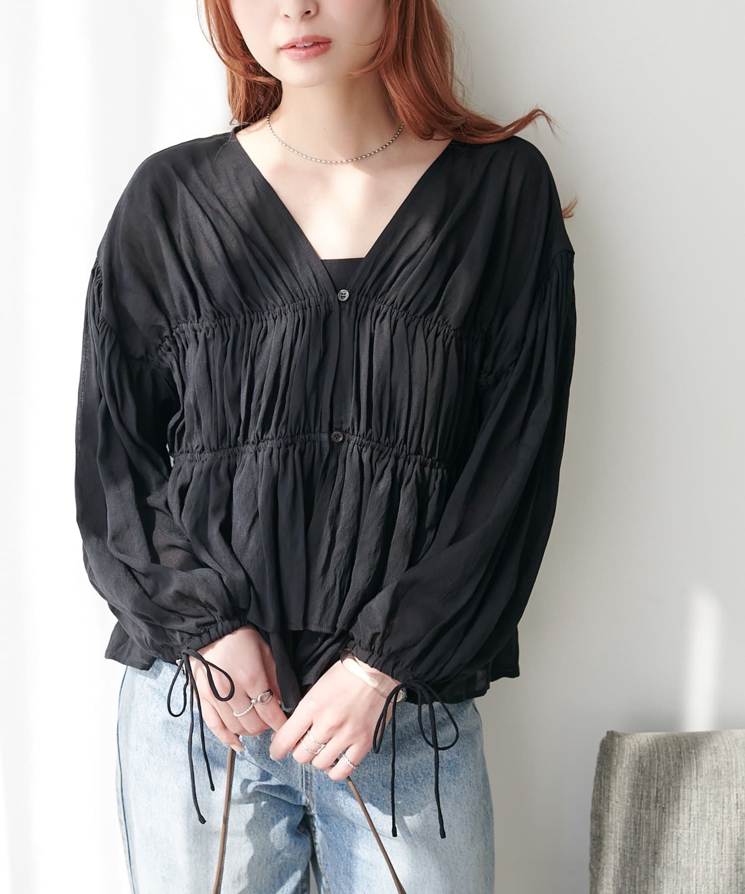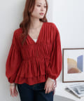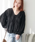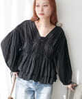 ボイルギャザー前開きブラウス