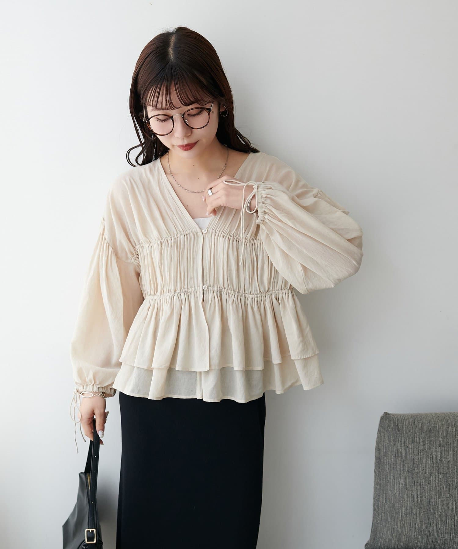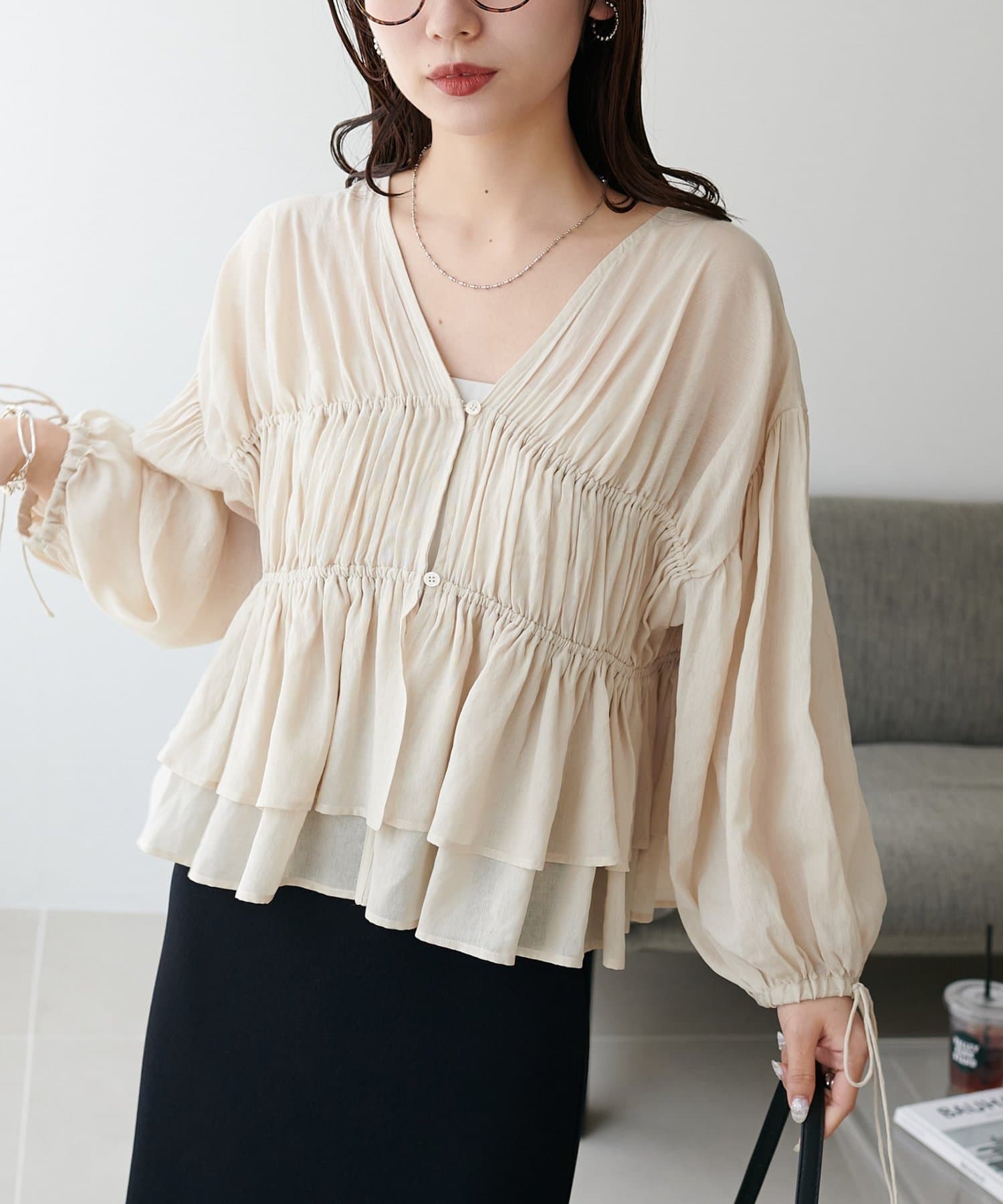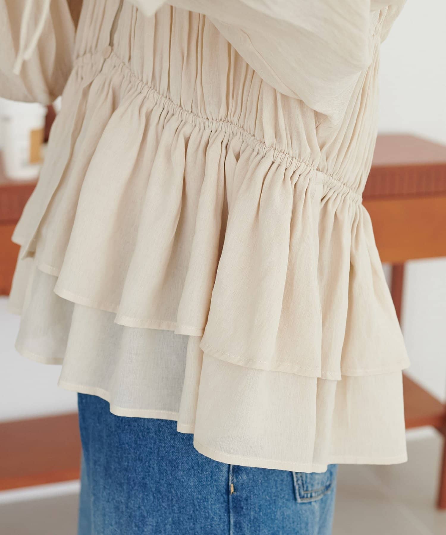 軽やかさと甘さを両立する、大人のためのティアードブラウス