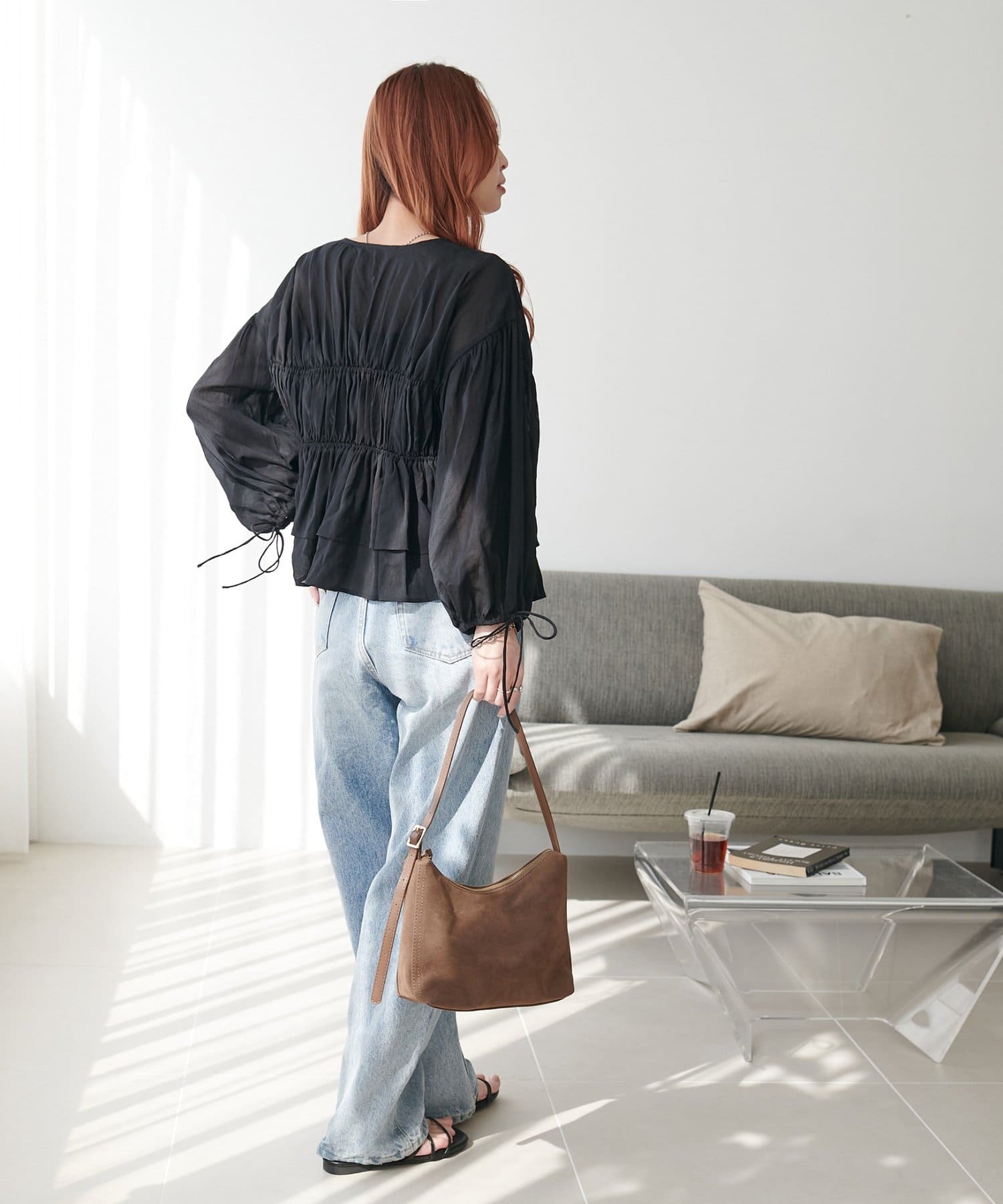 ・ギャザーの入った袖口には、ほんのり甘さを添えるリボン付き