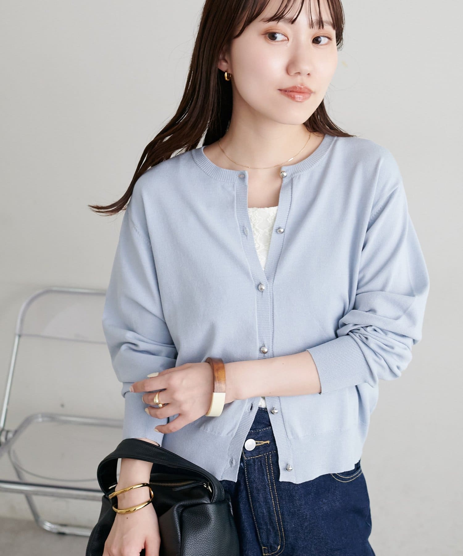 ▶サラモチメタル釦クルーカーディガン