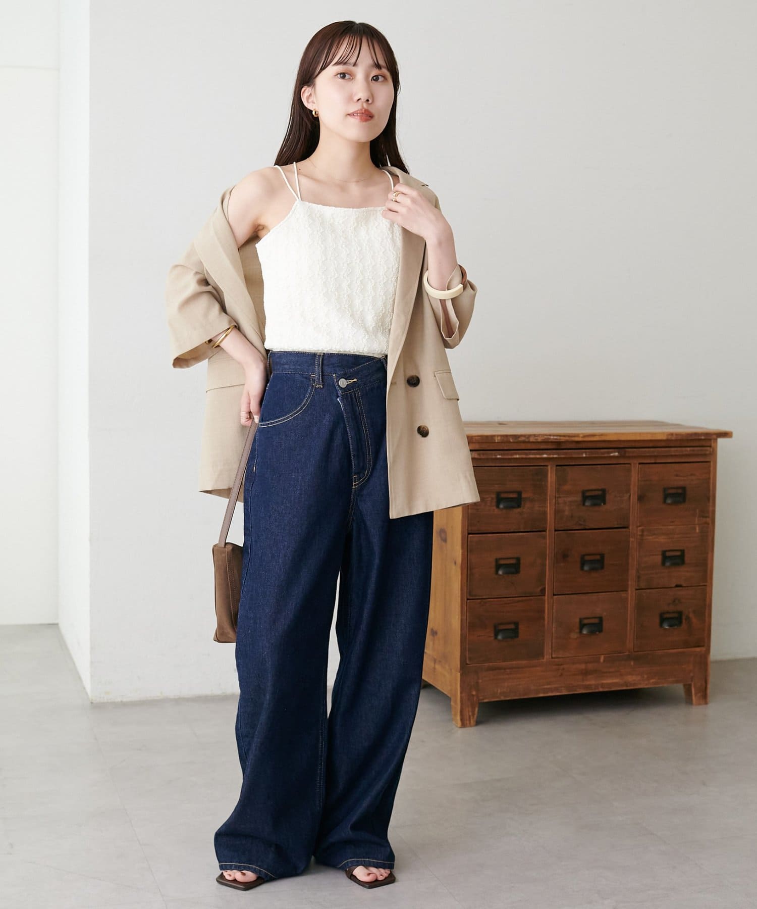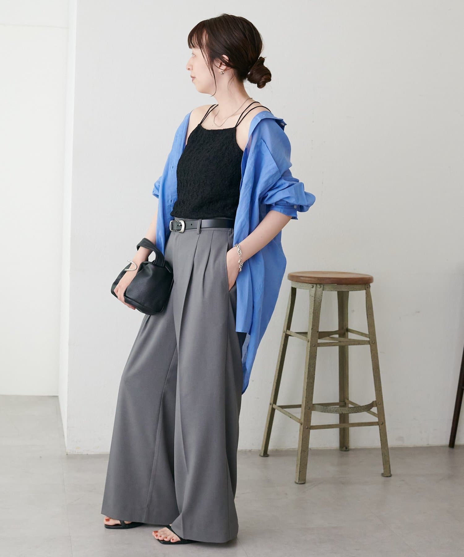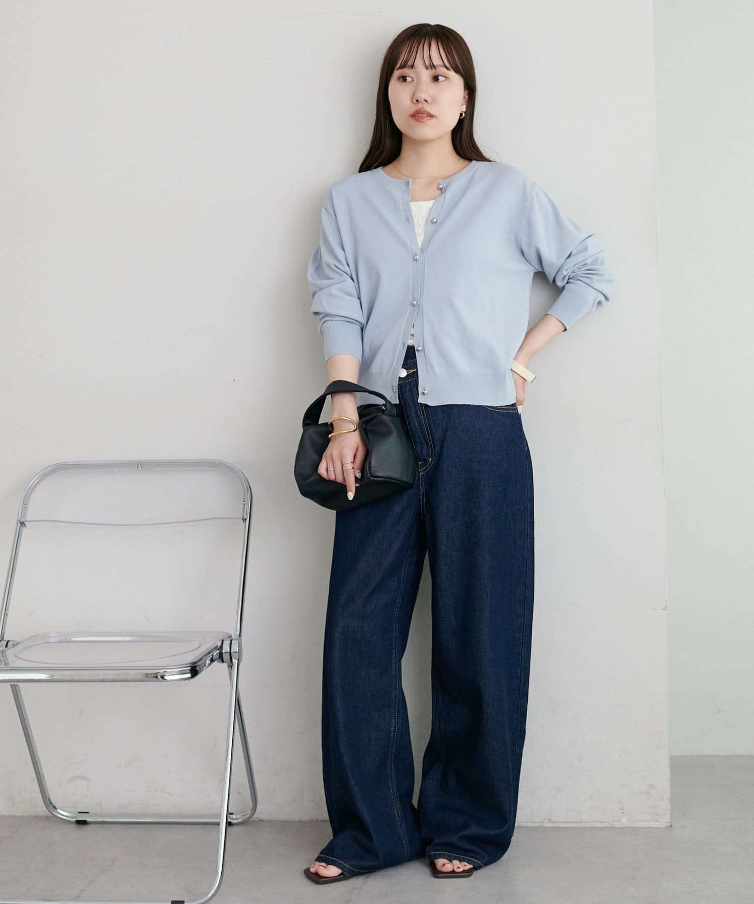 ・デニムやワイドパンツと組み合わせれば、女性らしさのあるきれいめカジュアルな着こなしが完成◎