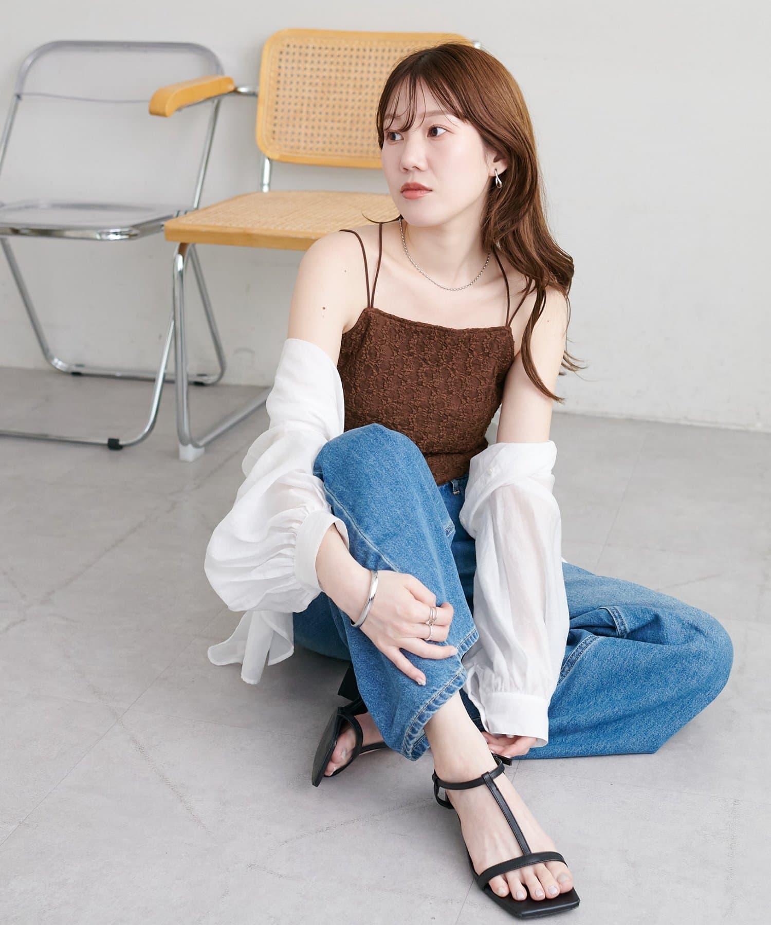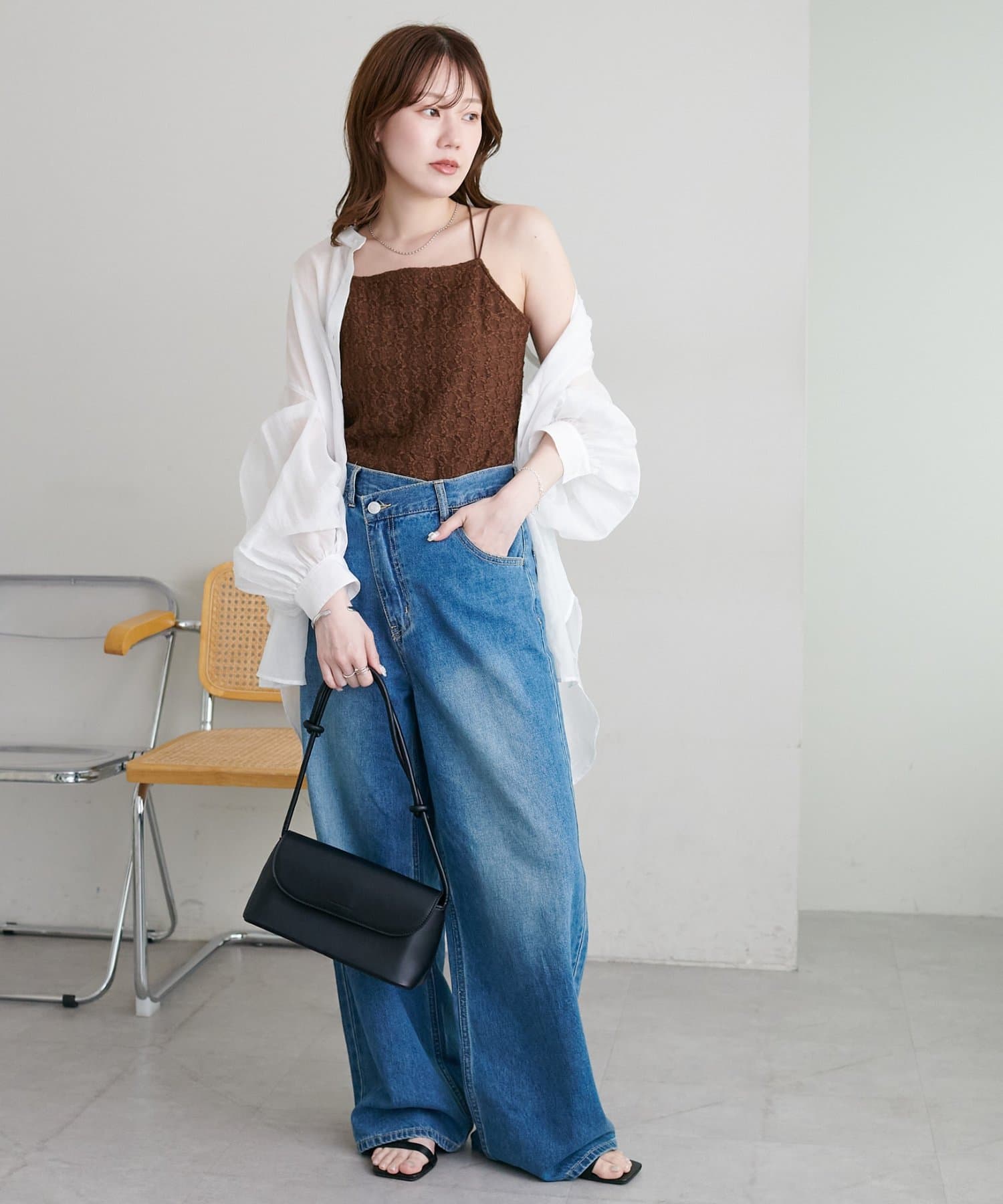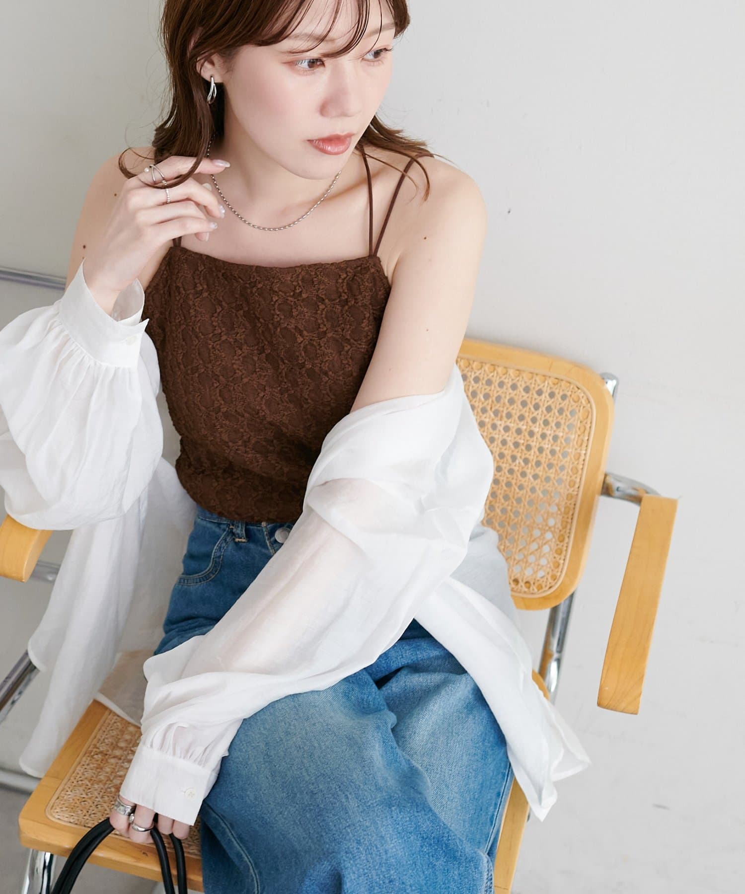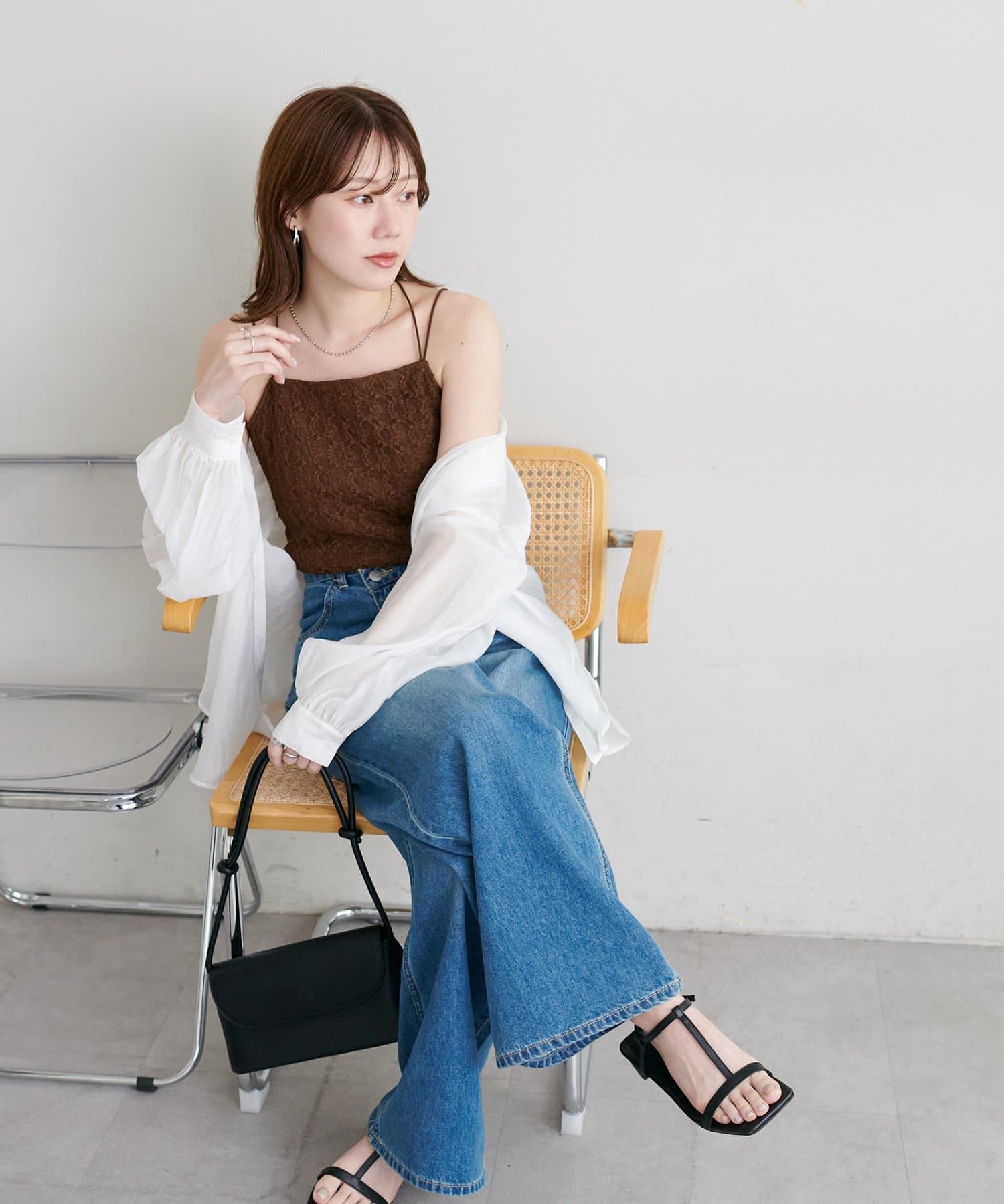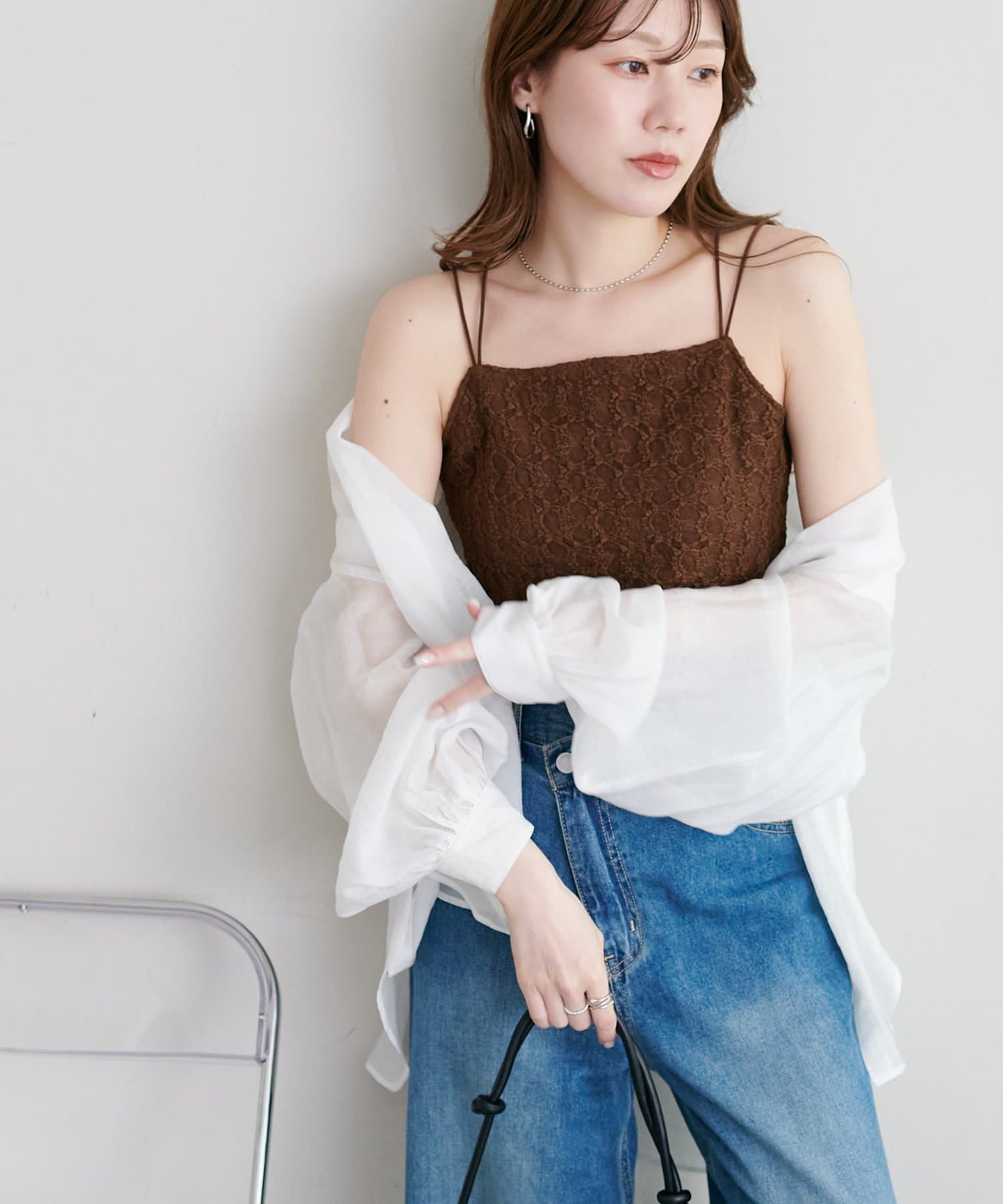 ・シアーシャツやブラウスを羽織り、レースの繊細さを活かしたレイヤードスタイルもおすすめ!