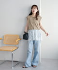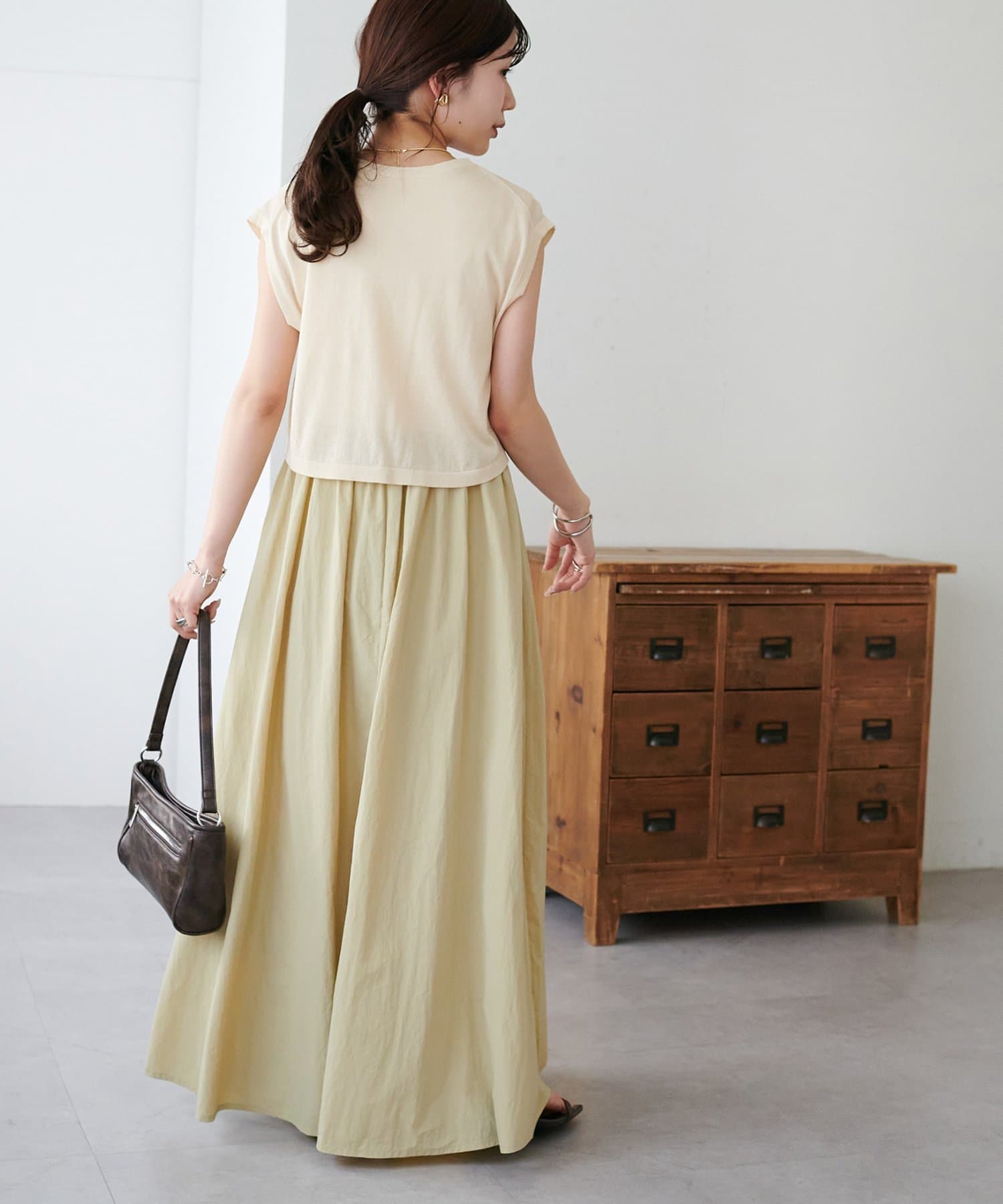 ・上半身は伸縮性のあるカットソー素材で快適な着心地。フレンチスリーブが気になる二の腕をさりげなくカバー◎