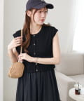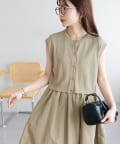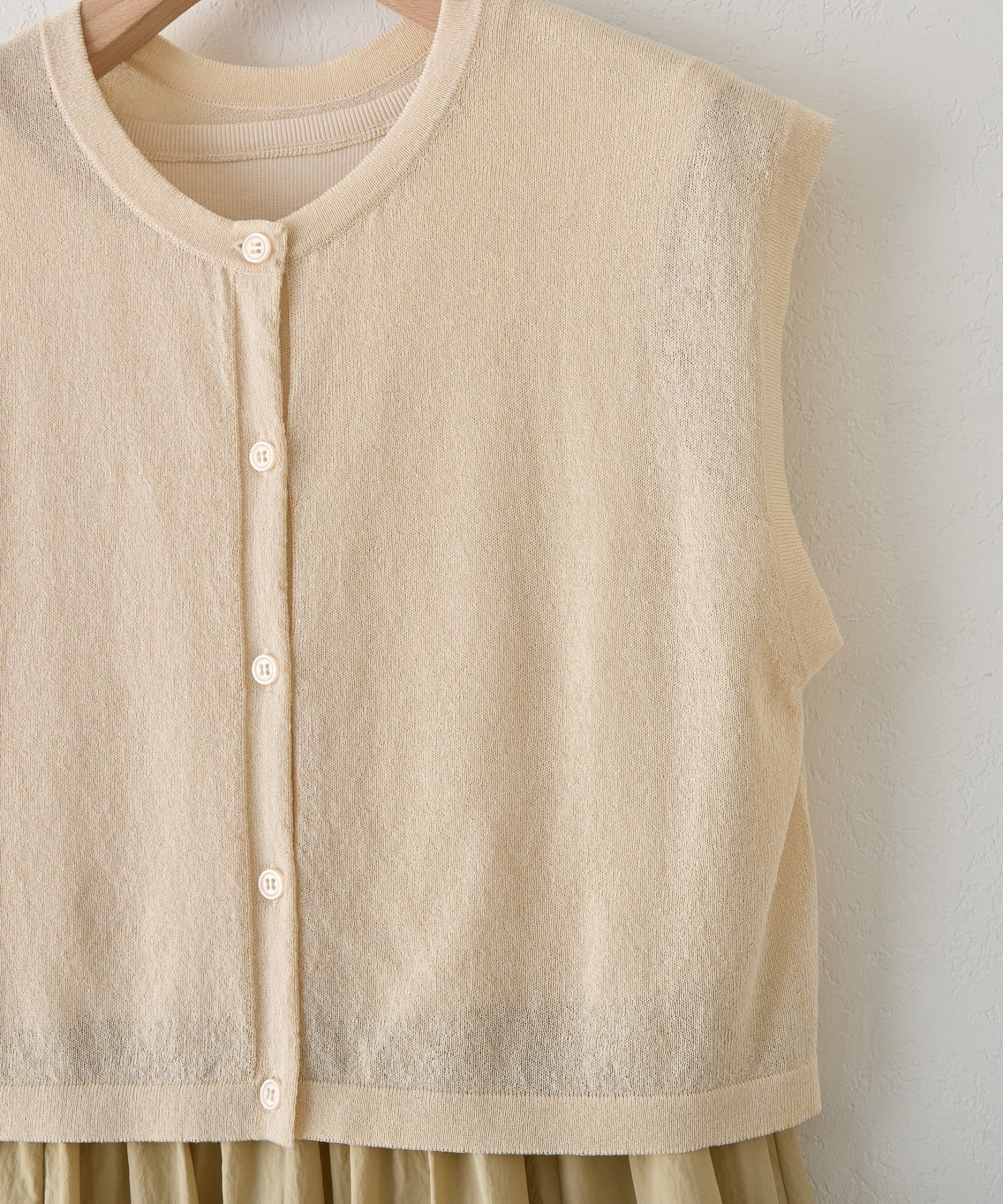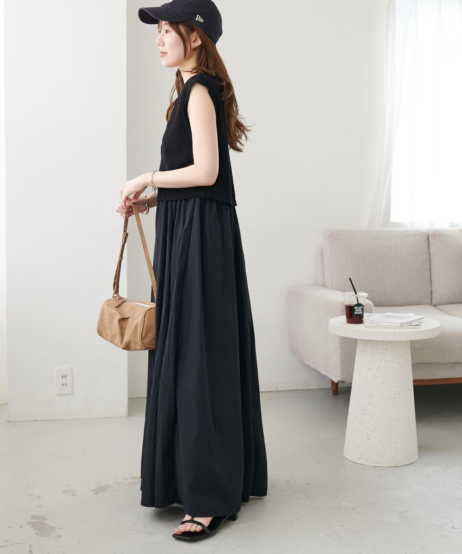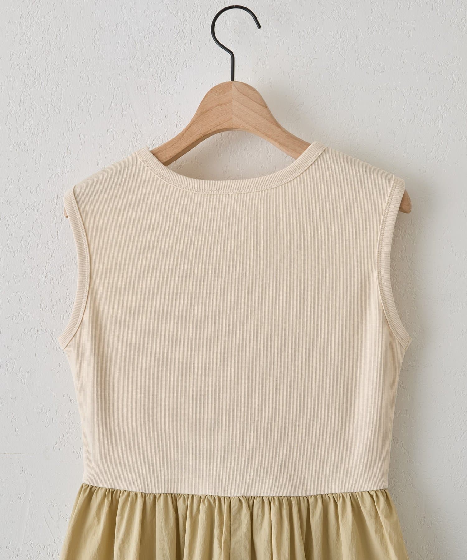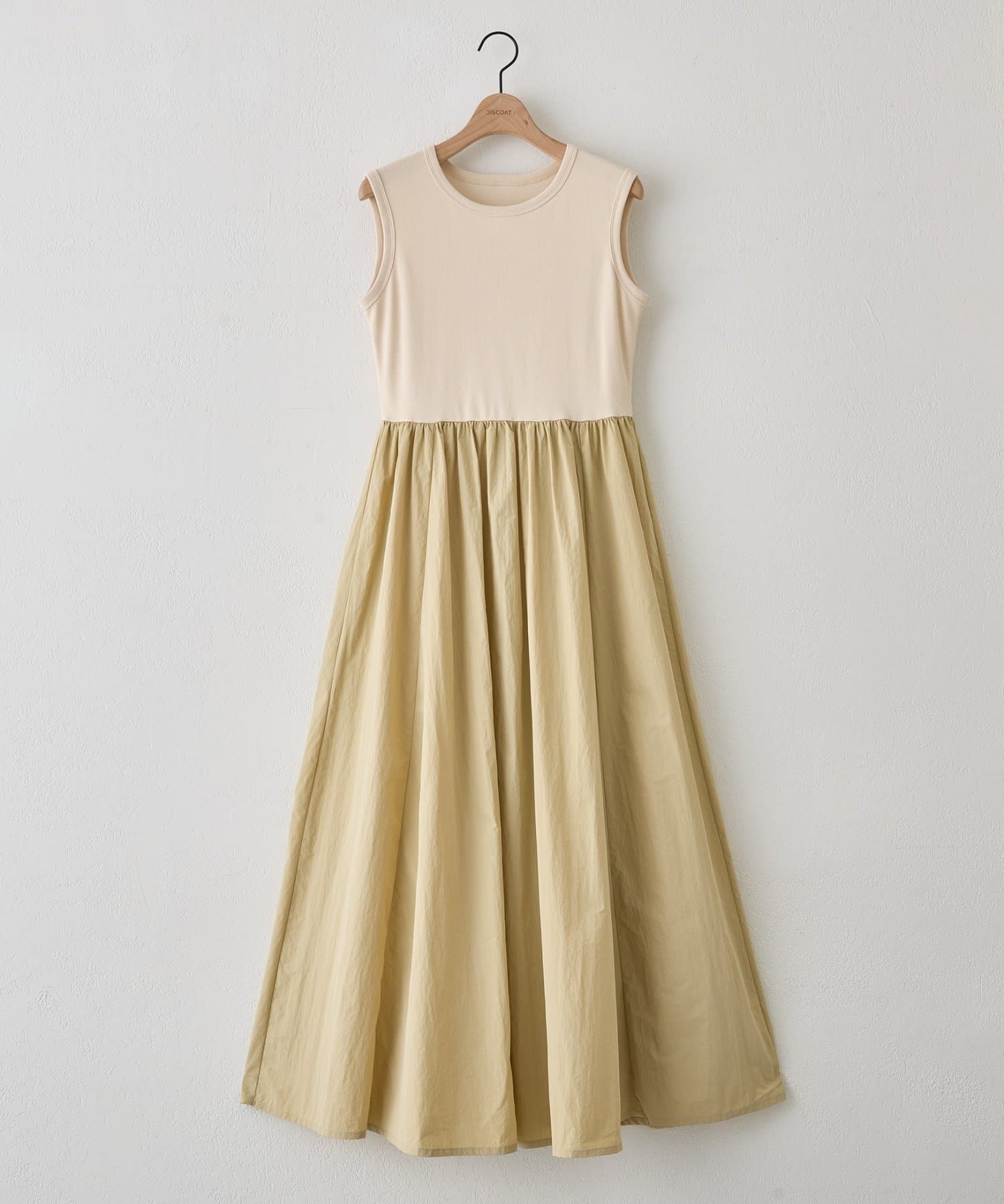 一枚で旬のレイヤードスタイルが完成する、異素材ドッキングワンピース。