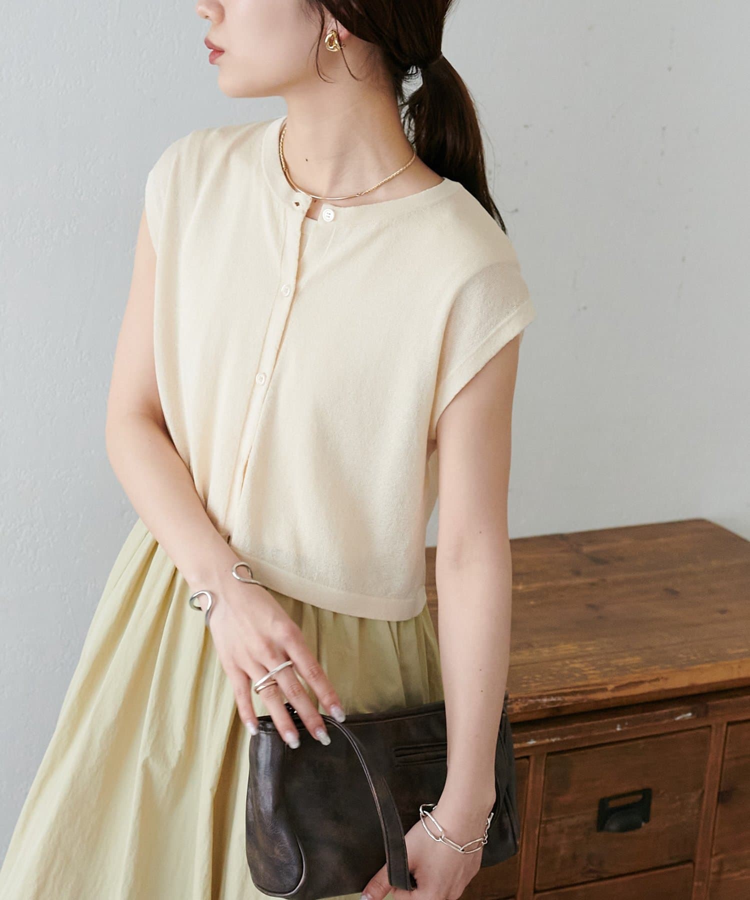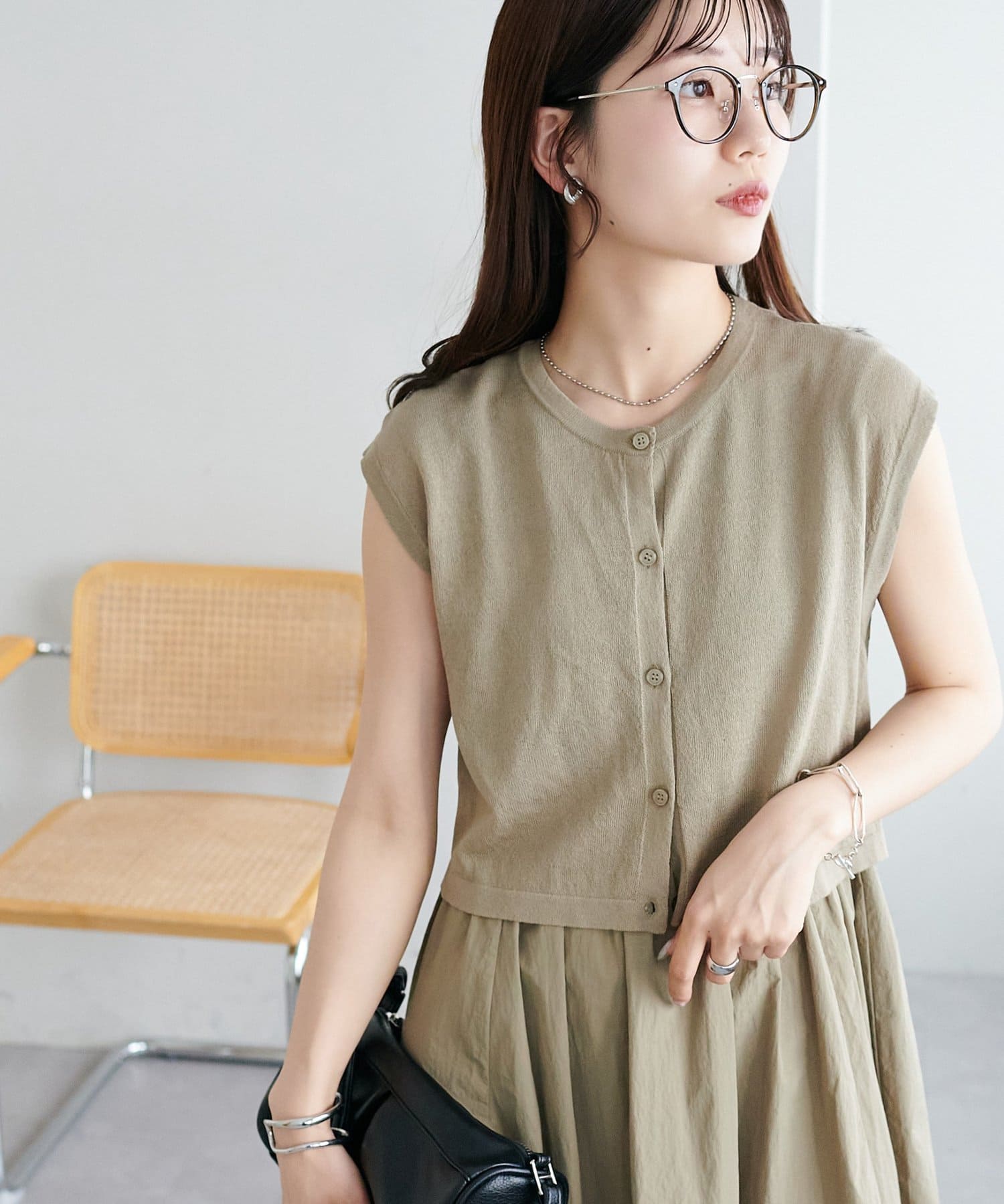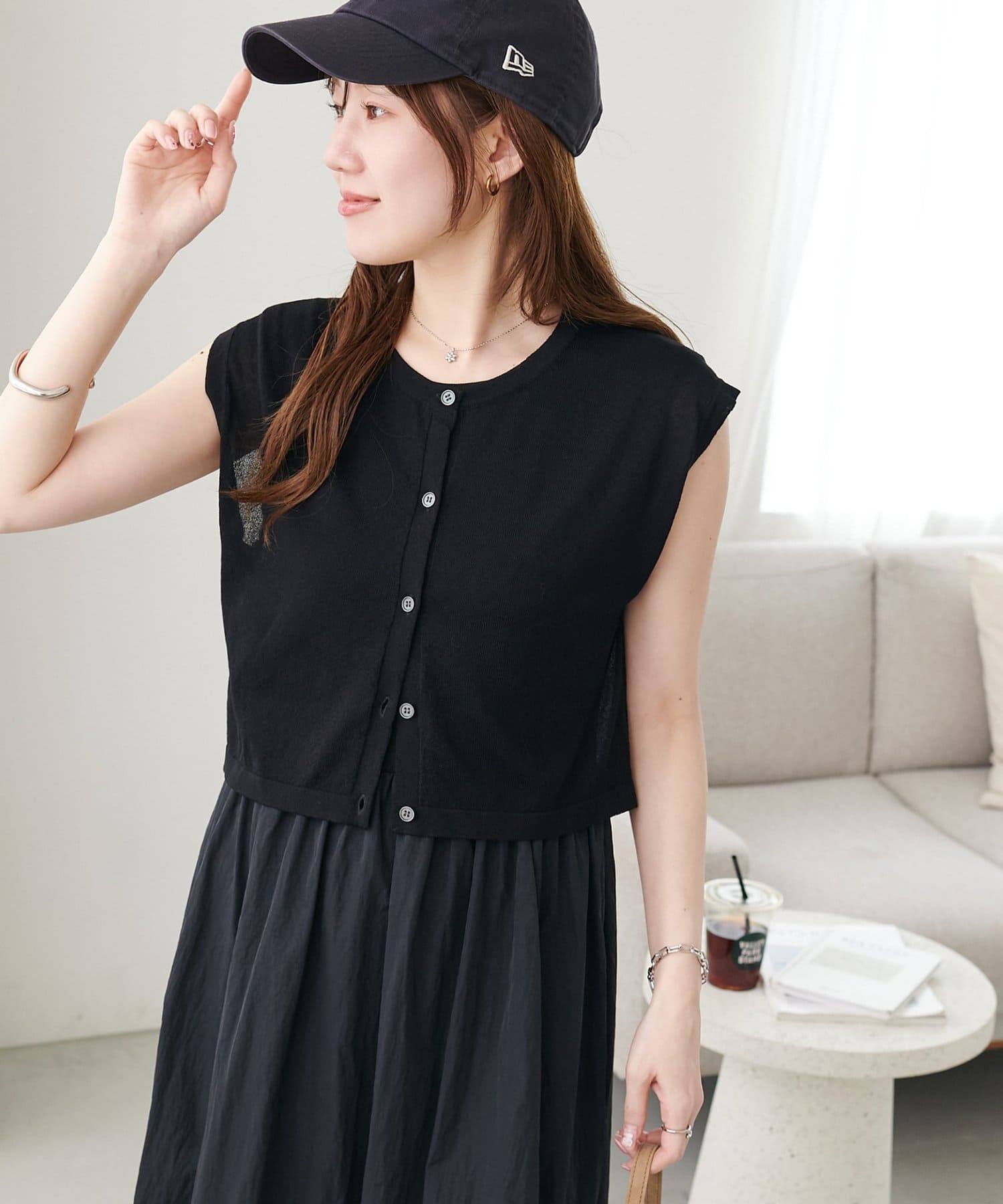 ・ショート丈のカーディガンを羽織ったようなドッキングデザインで、着るだけでコーディネートが完成します♪