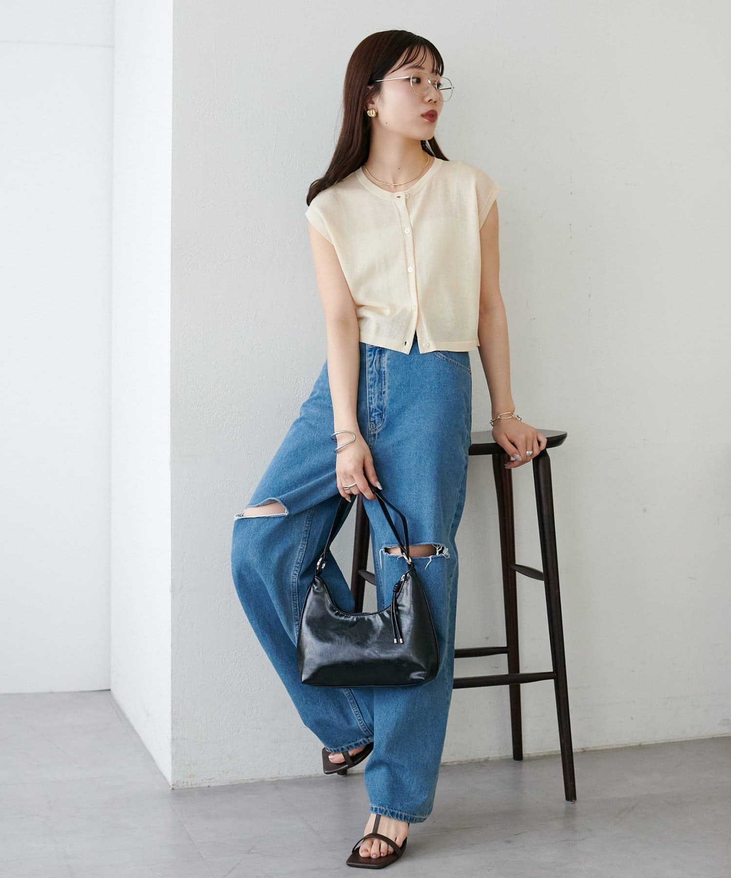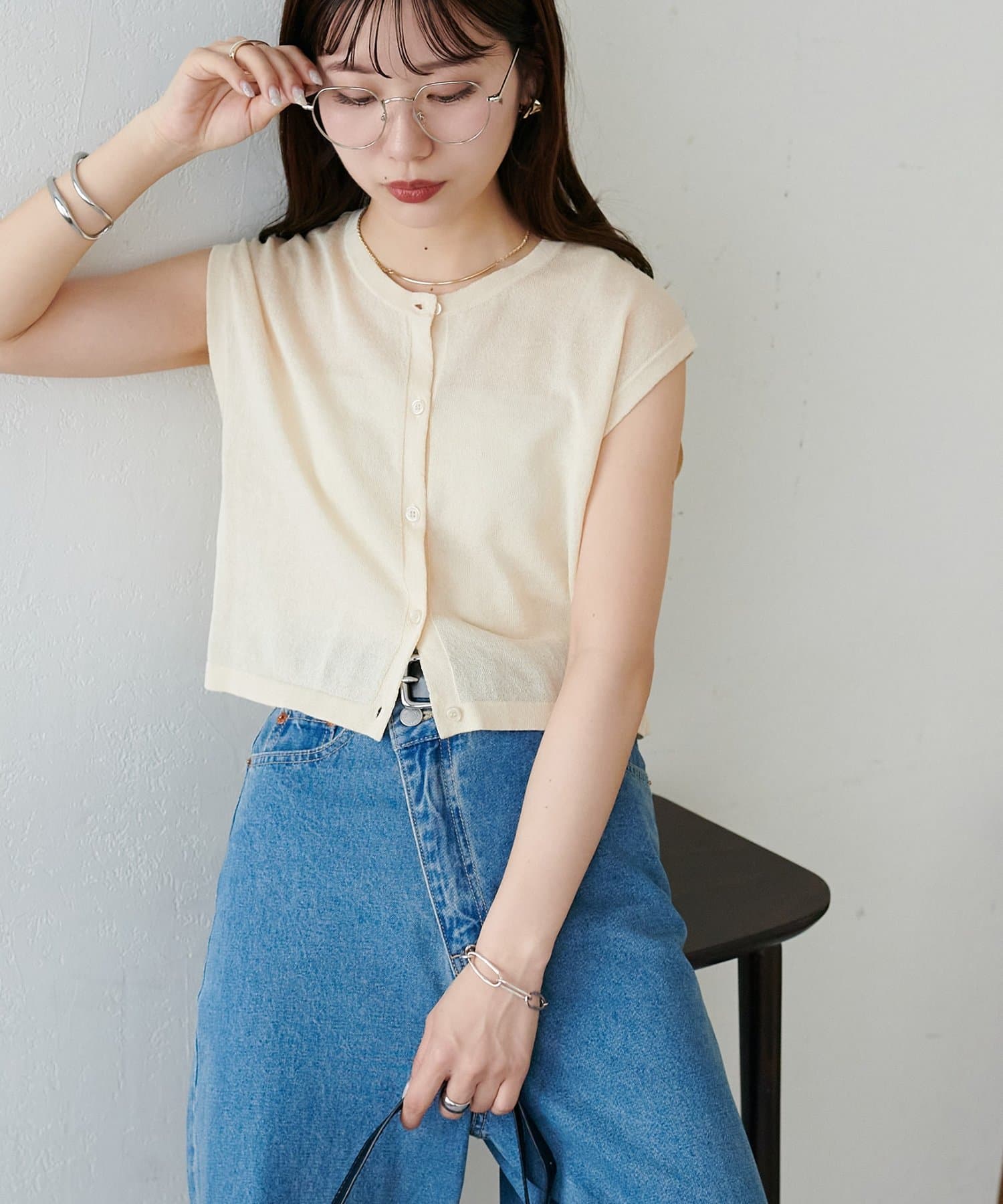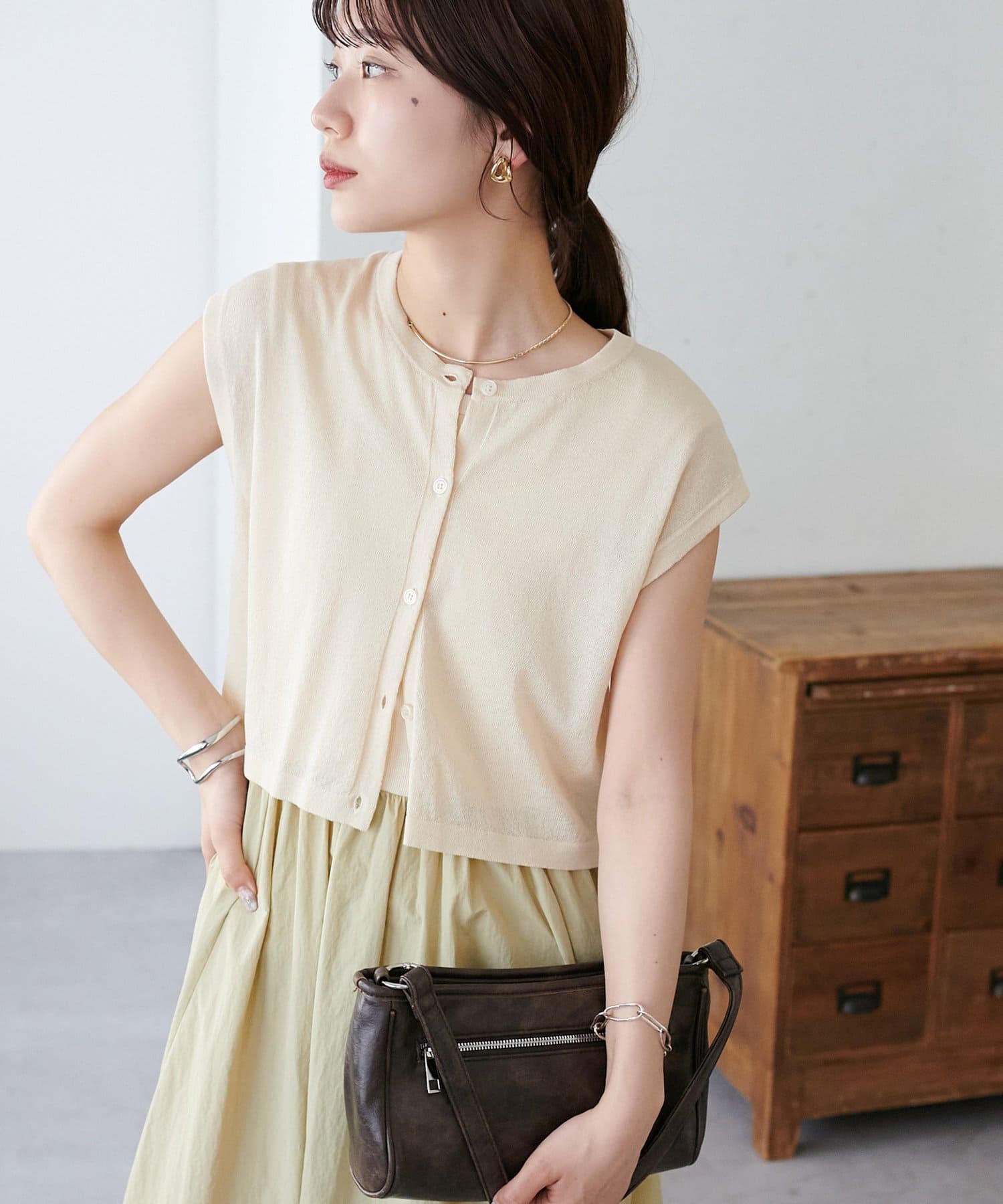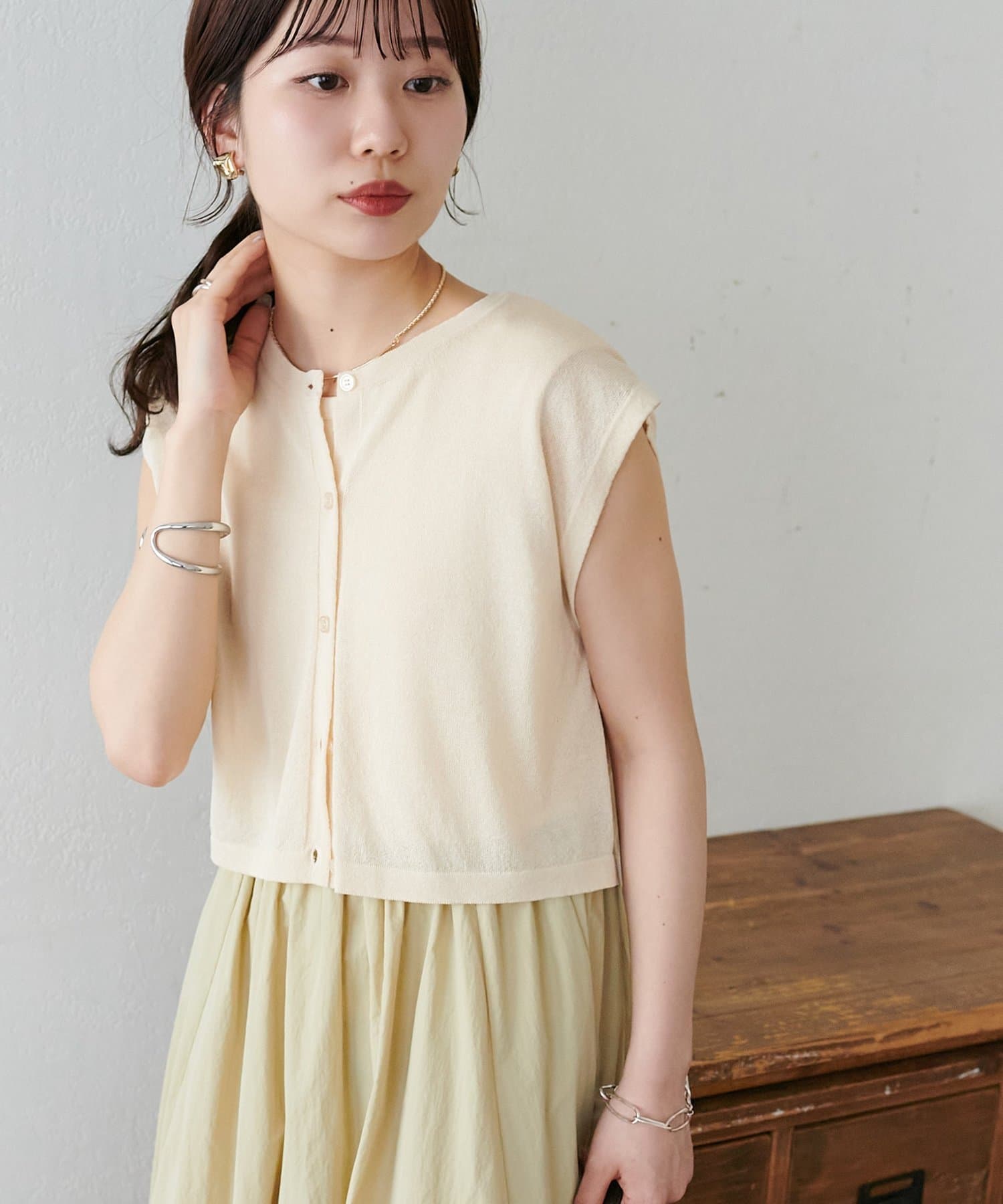 ・ショート丈のカーディガンを羽織ったようなドッキングデザインで、着るだけでコーディネートが完成します♪