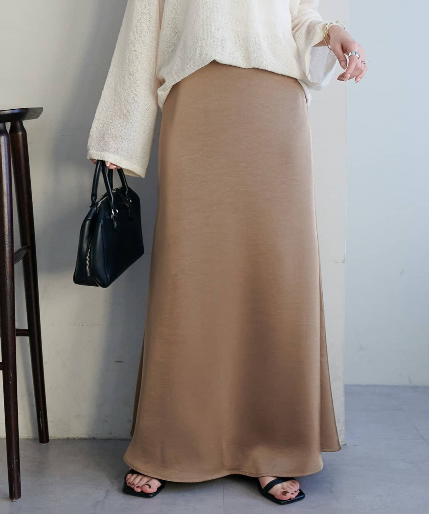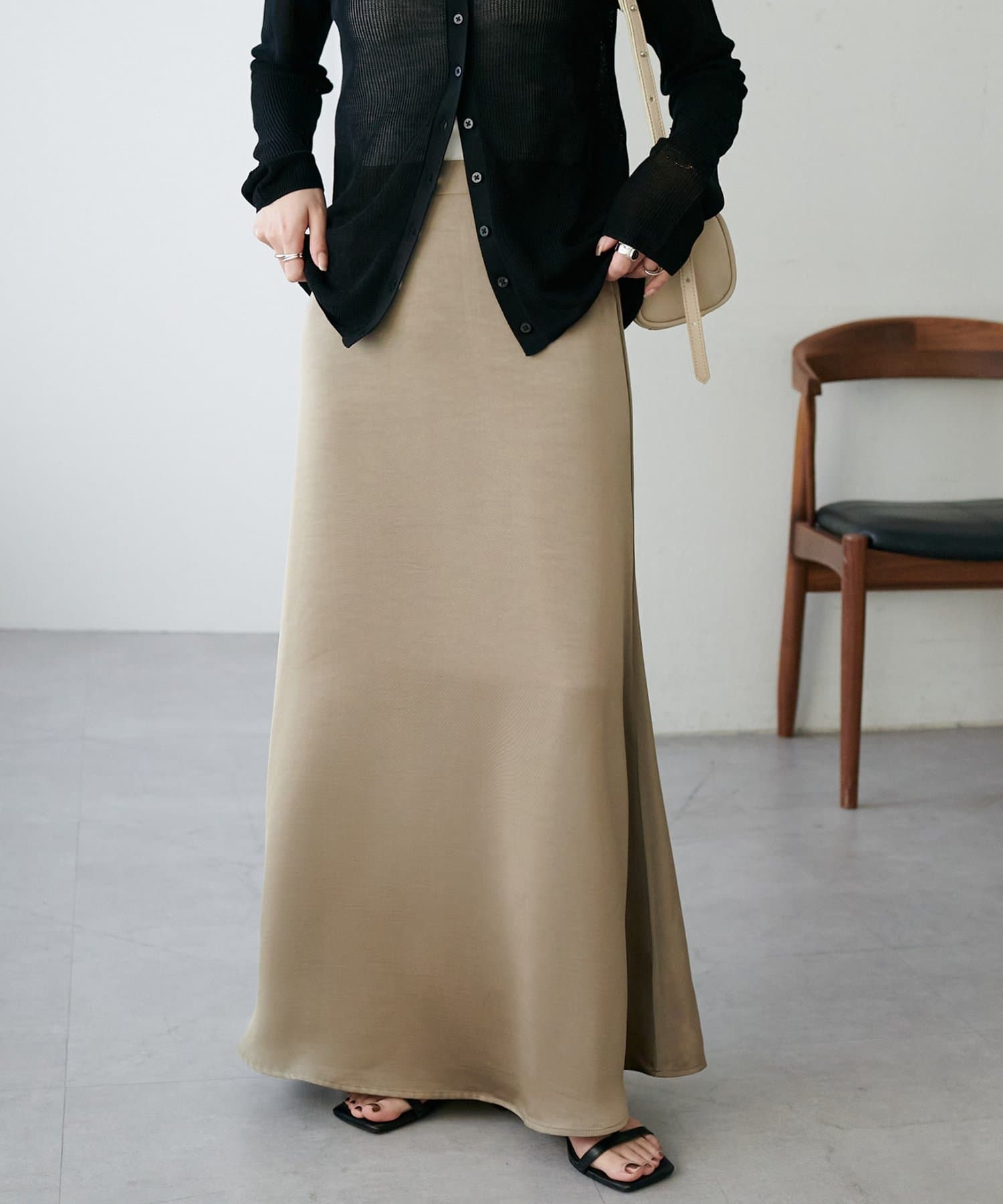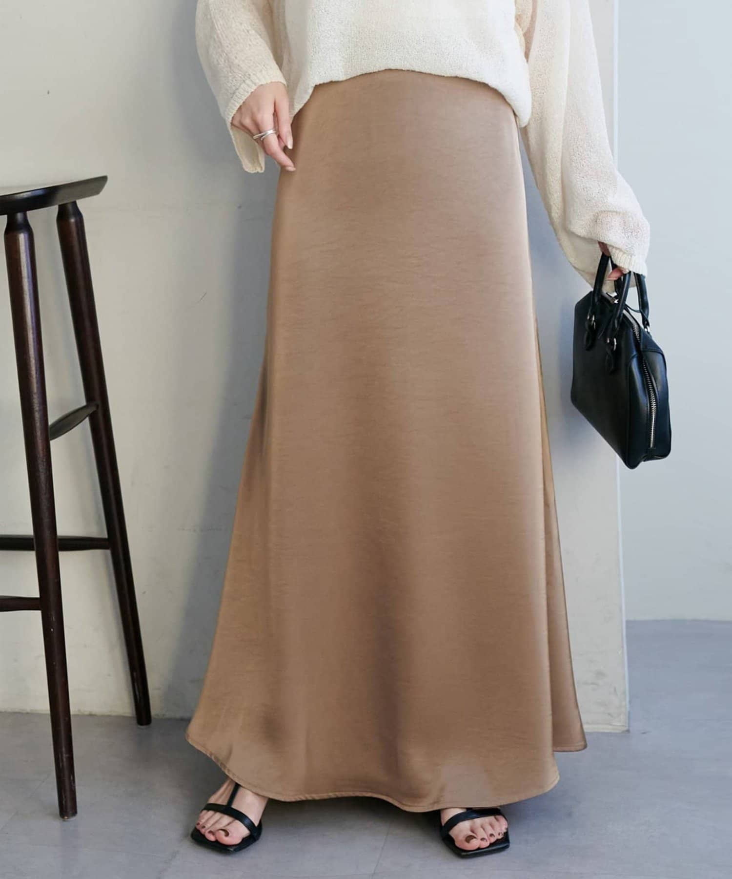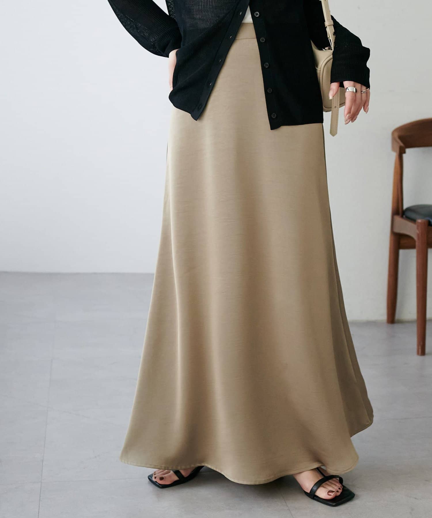 ・上品なツヤ感が特徴的なサテンスカート。