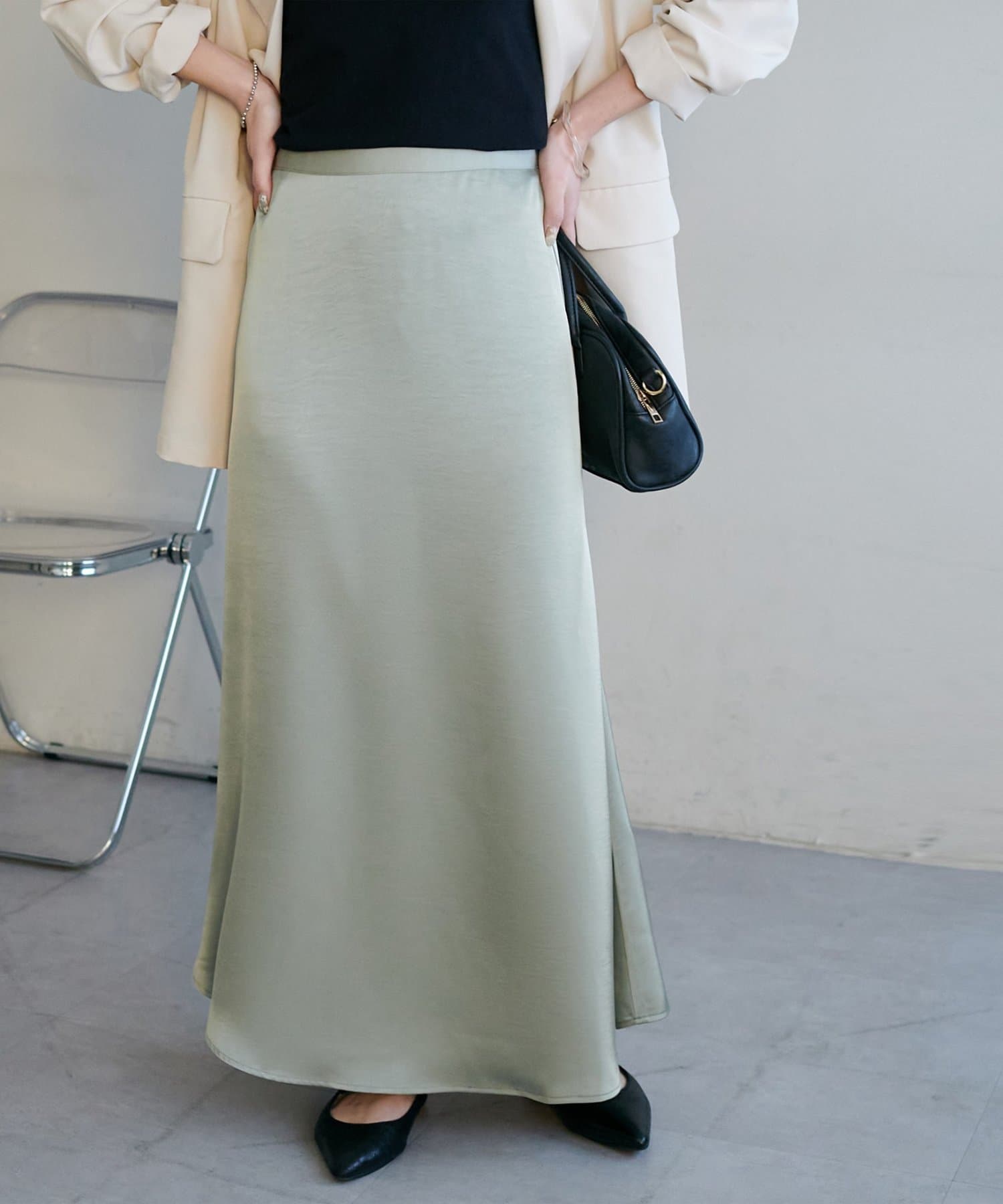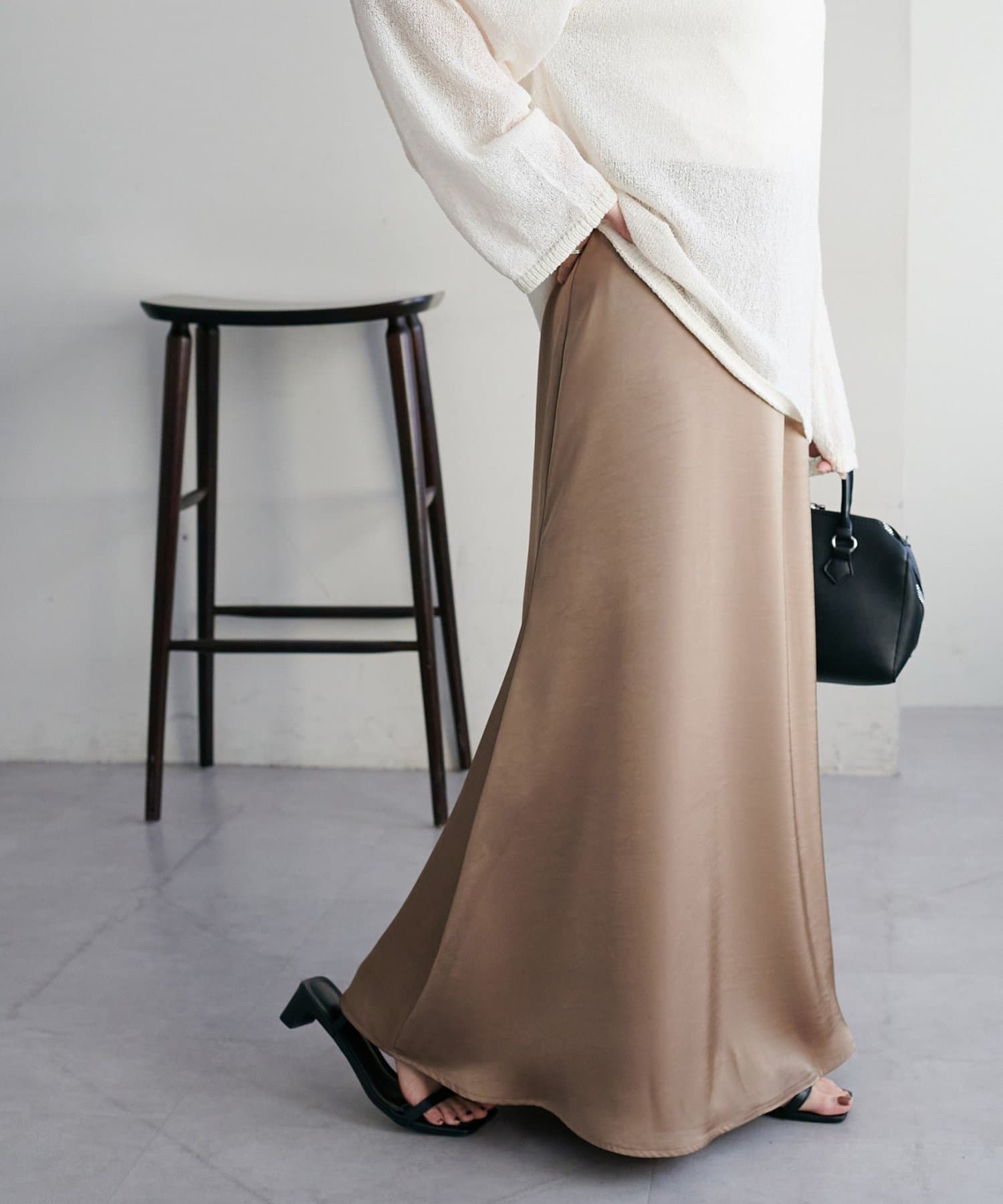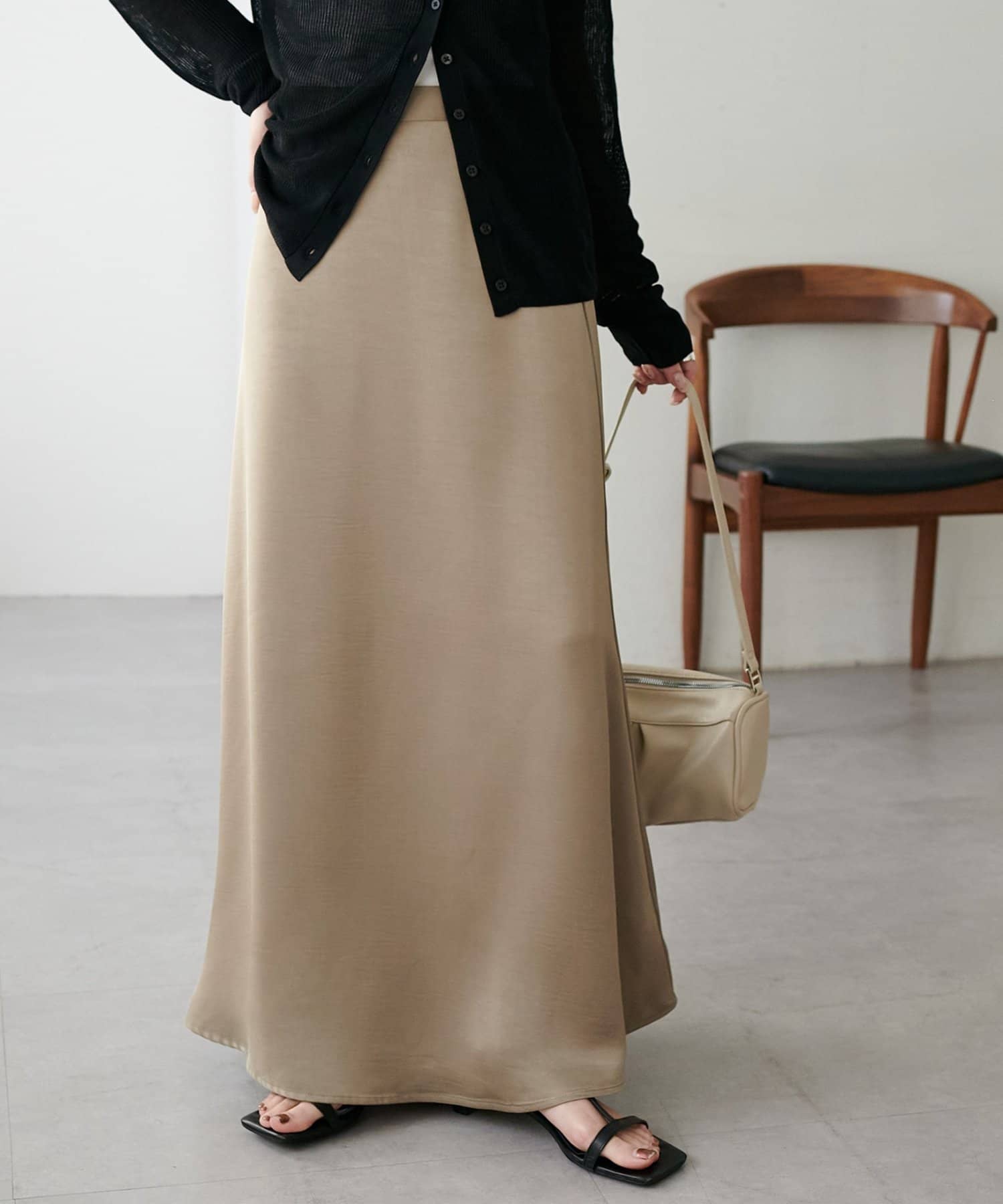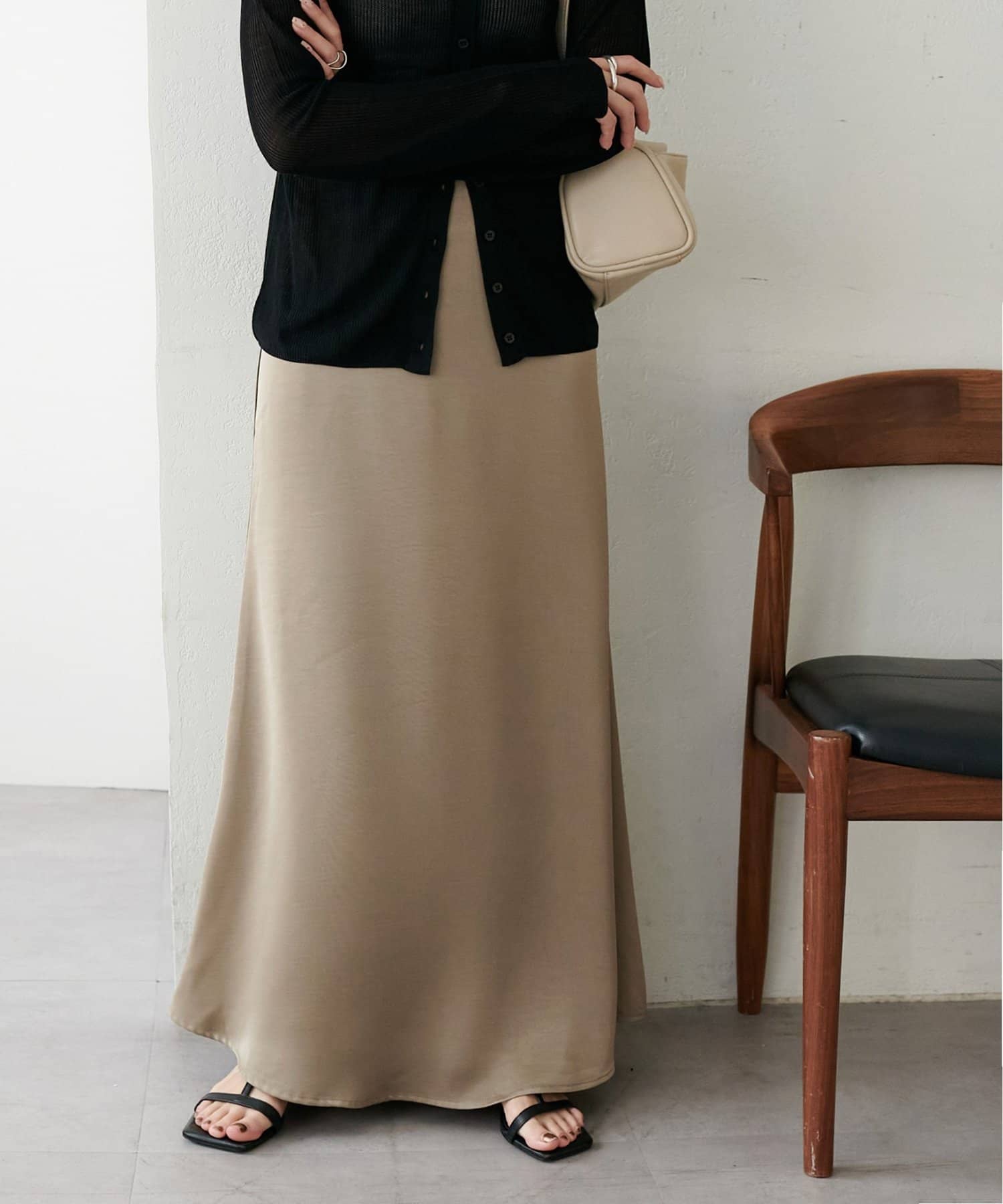 ・上品なツヤ感が特徴的なサテンスカート。