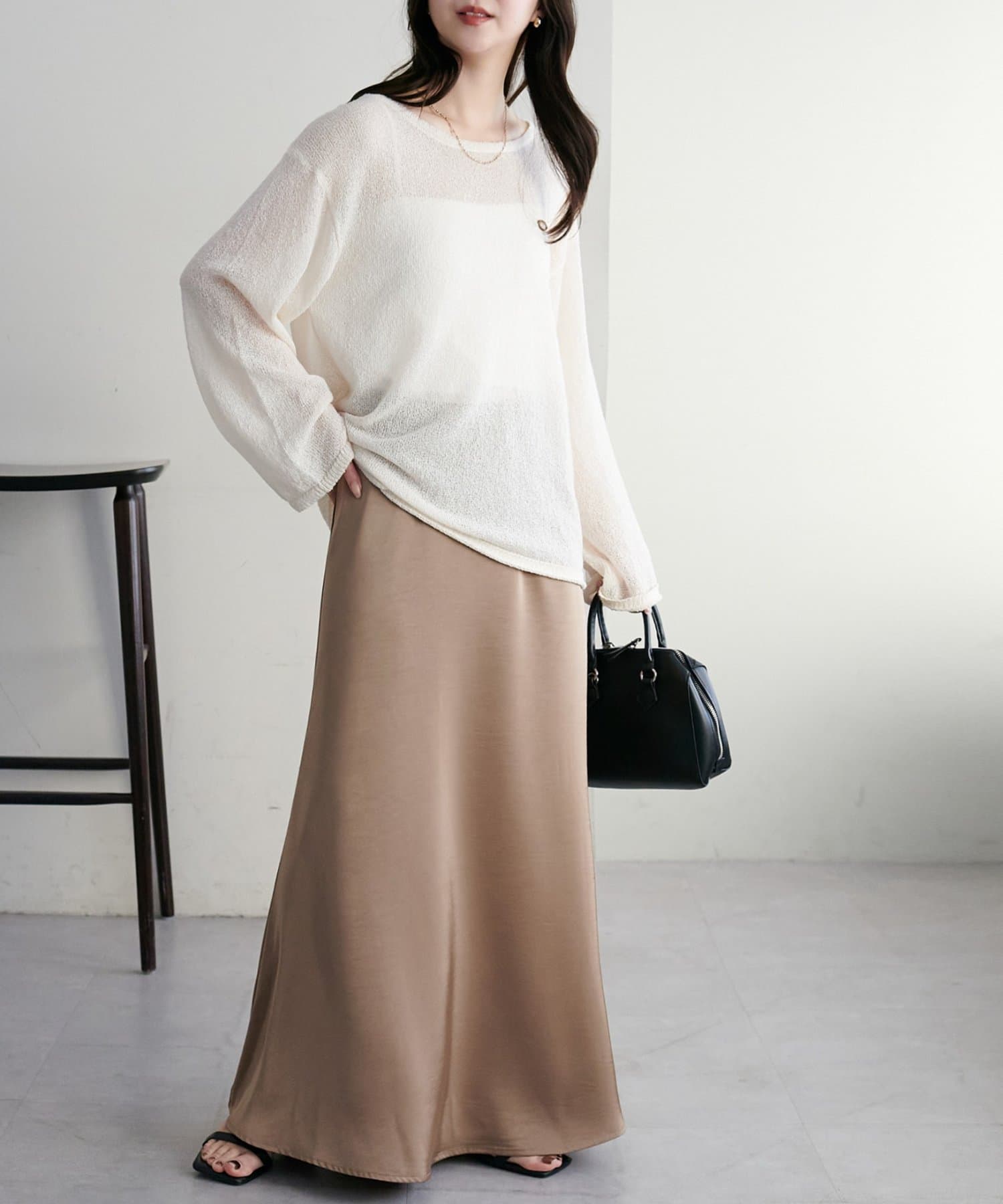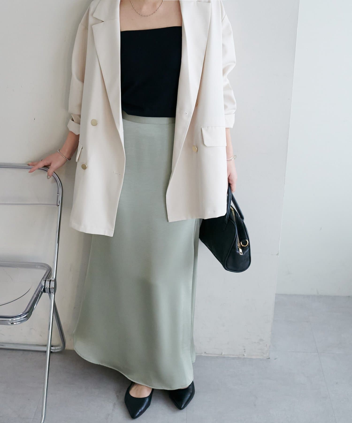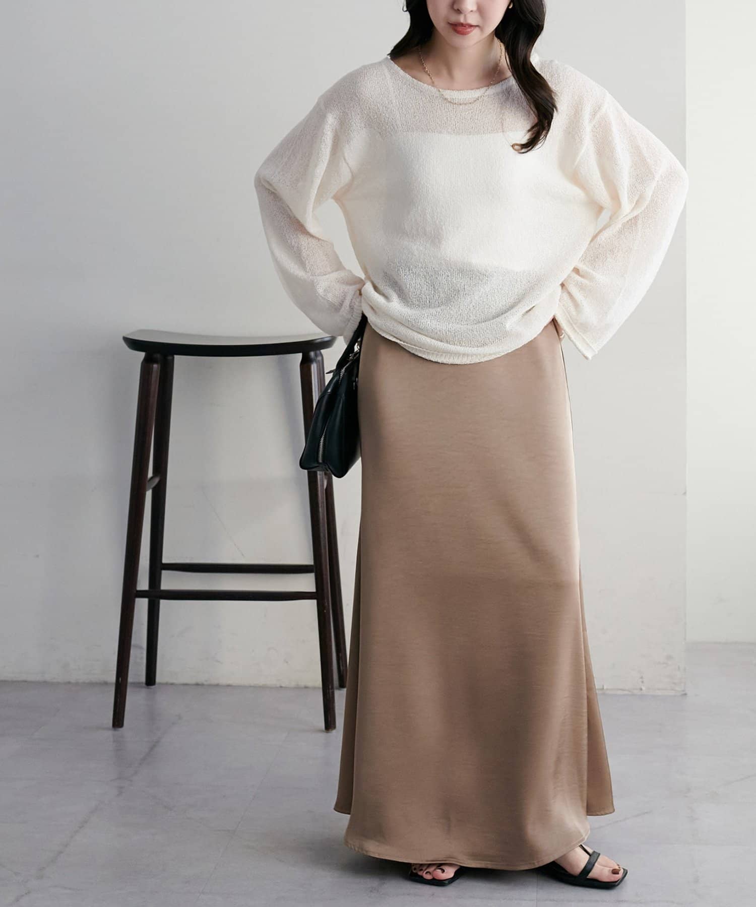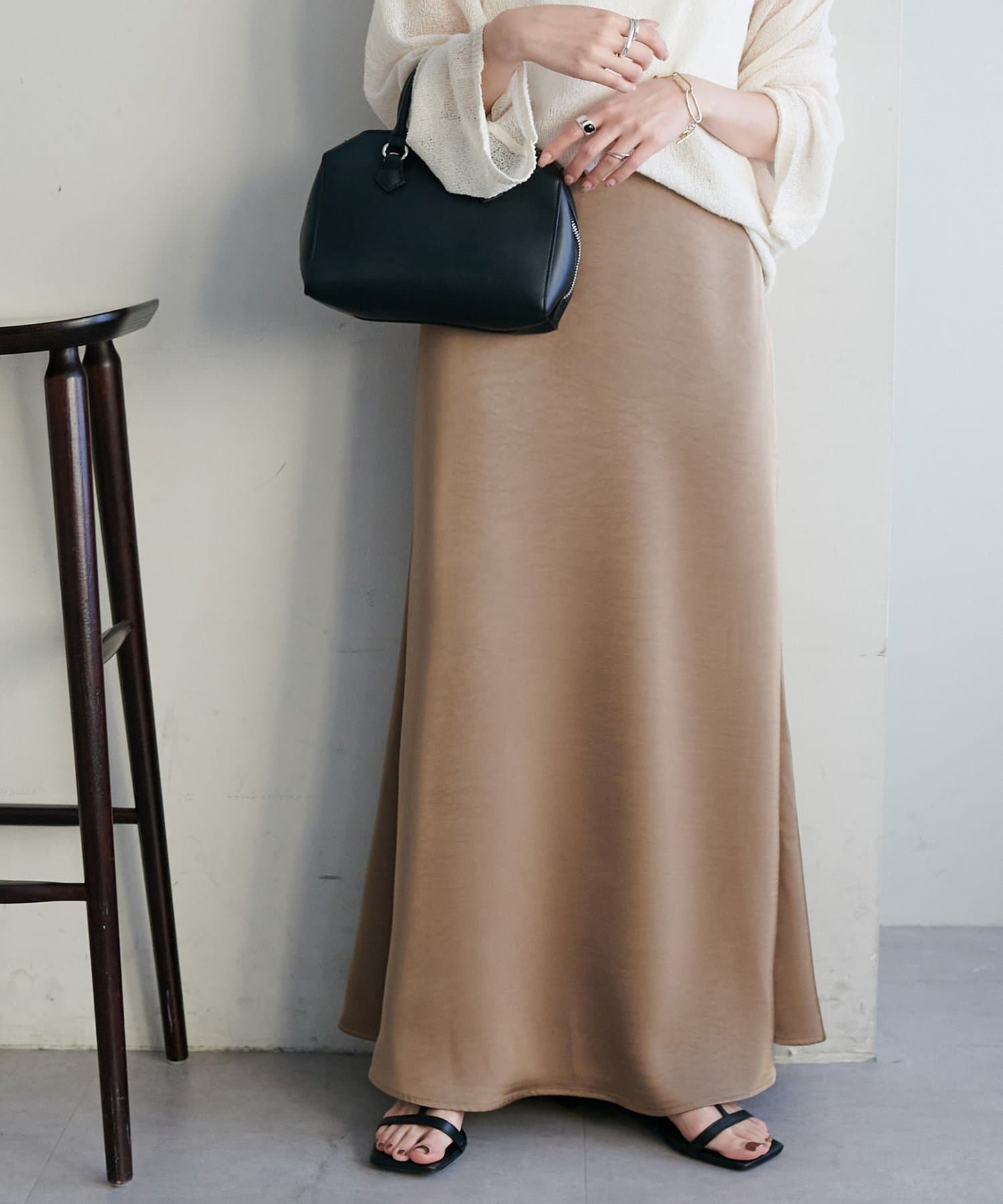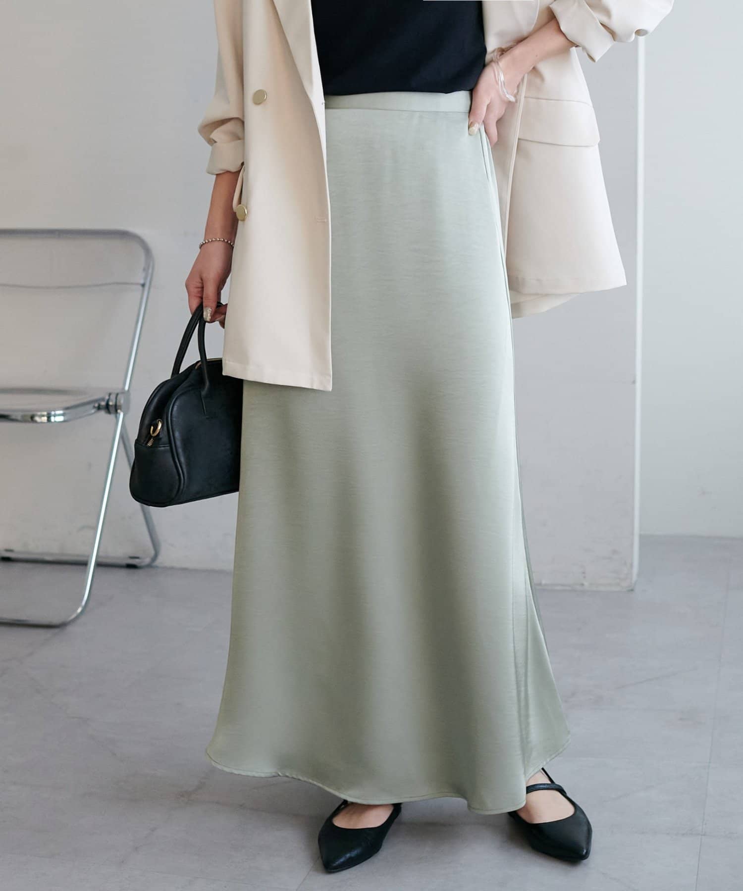 ・上品なツヤ感が特徴的なサテンスカート。