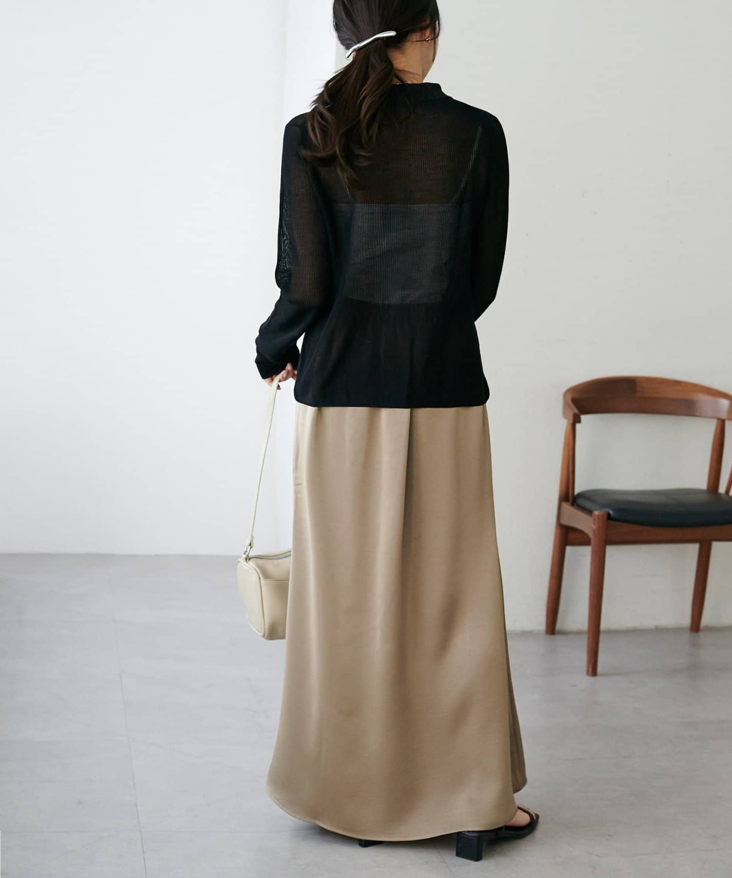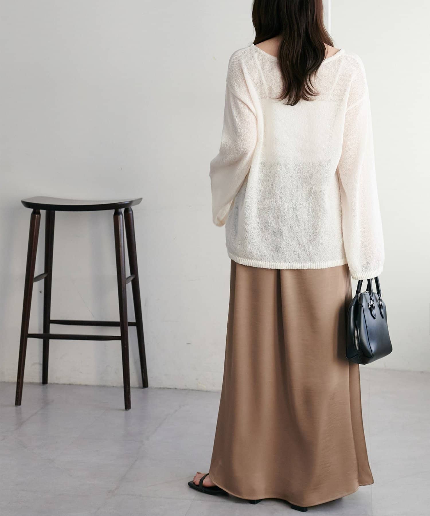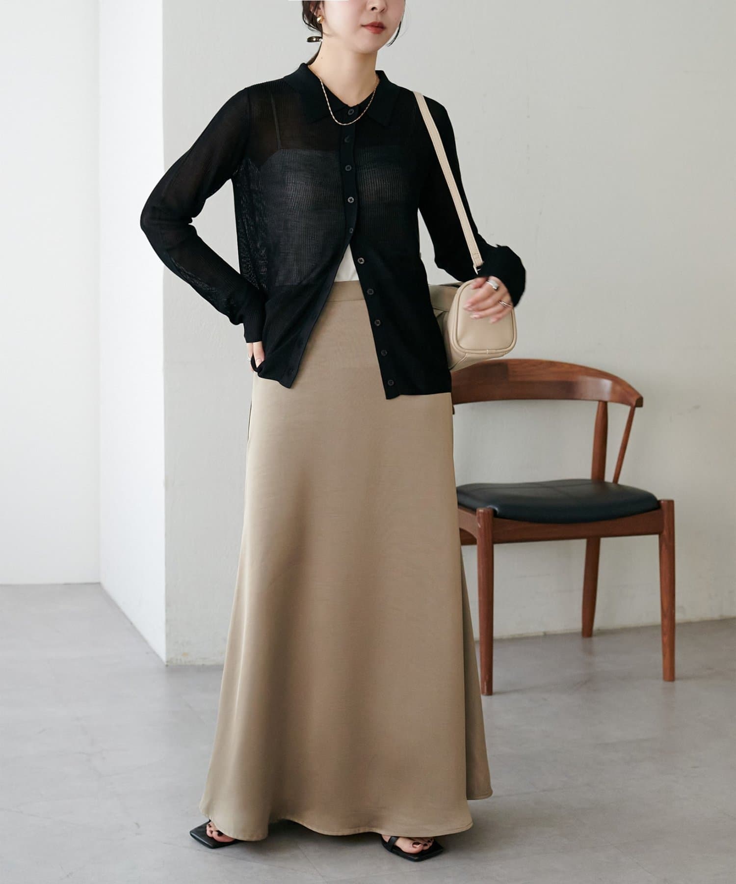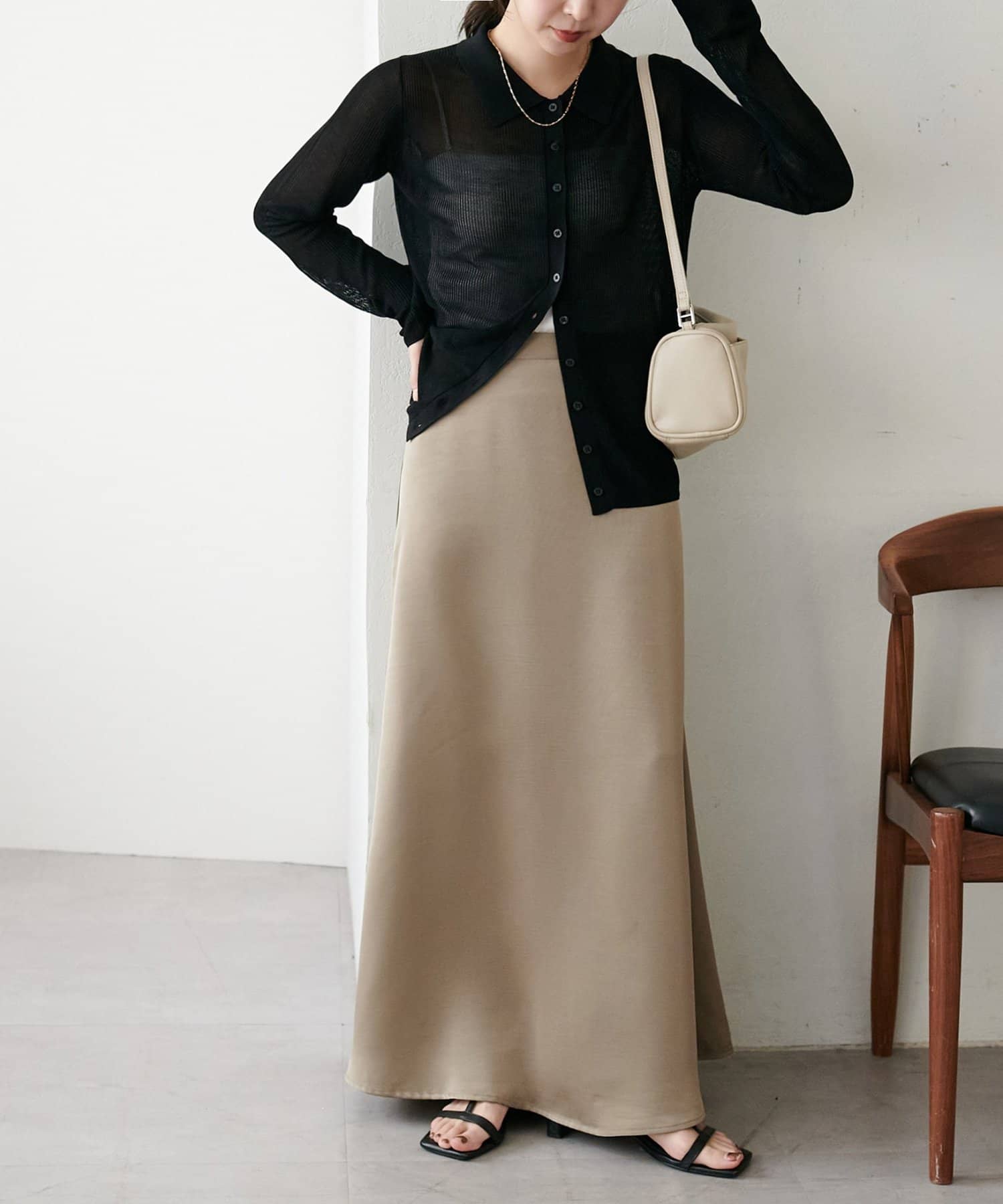 ・上品なツヤ感が特徴的なサテンスカート。