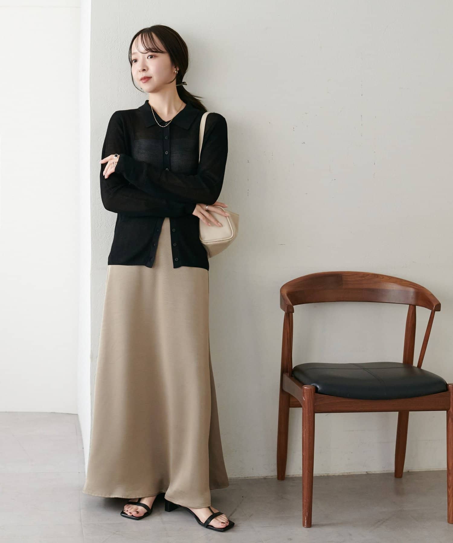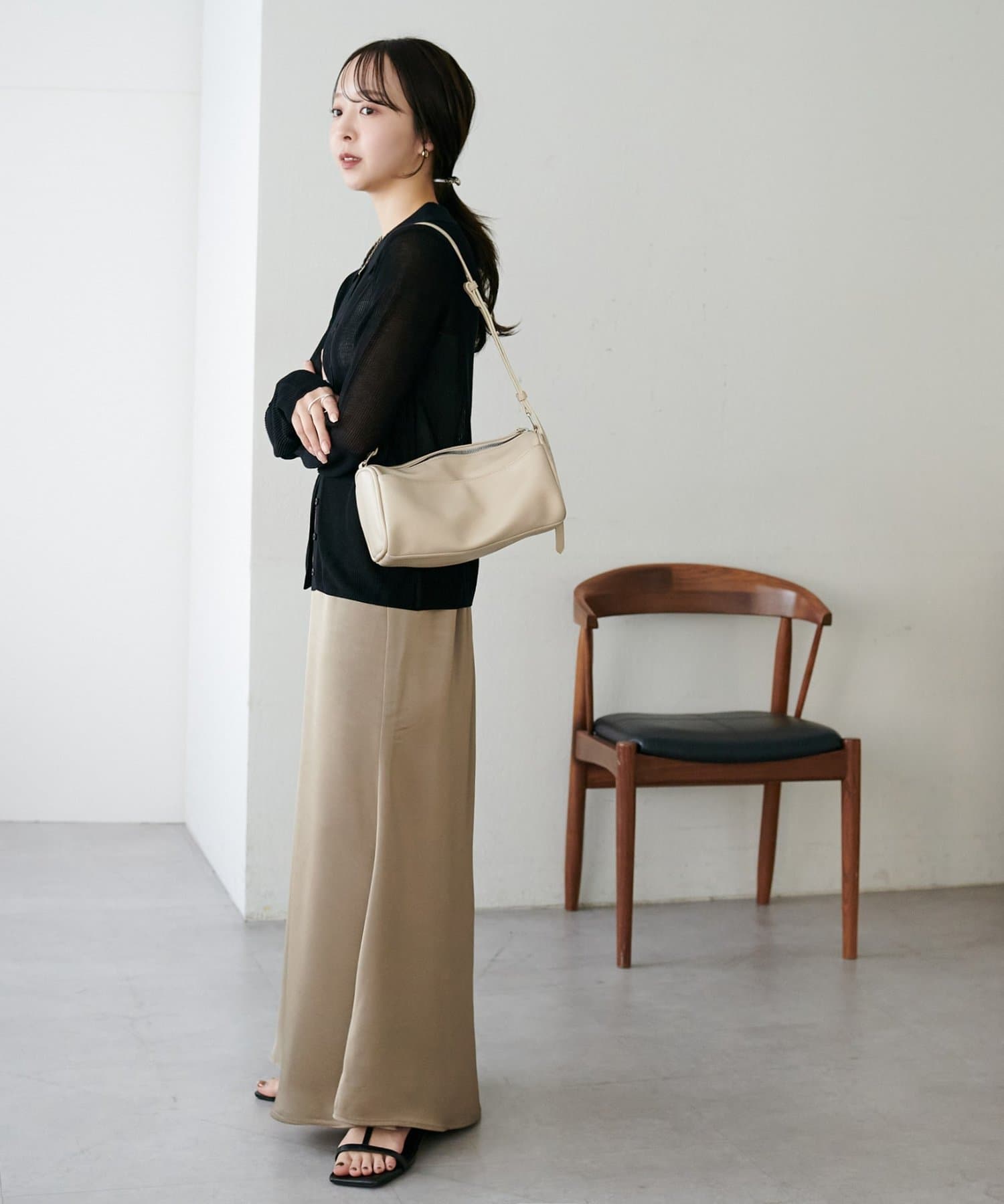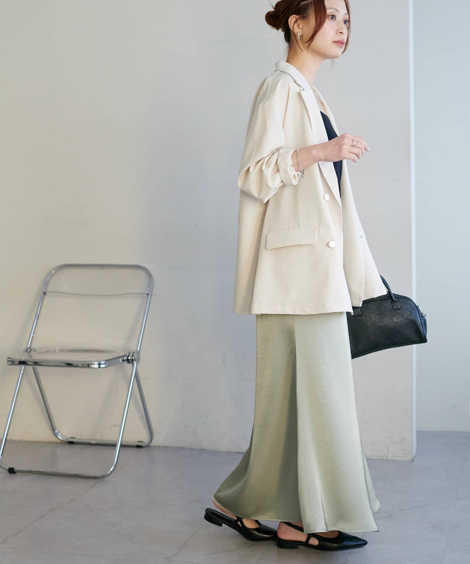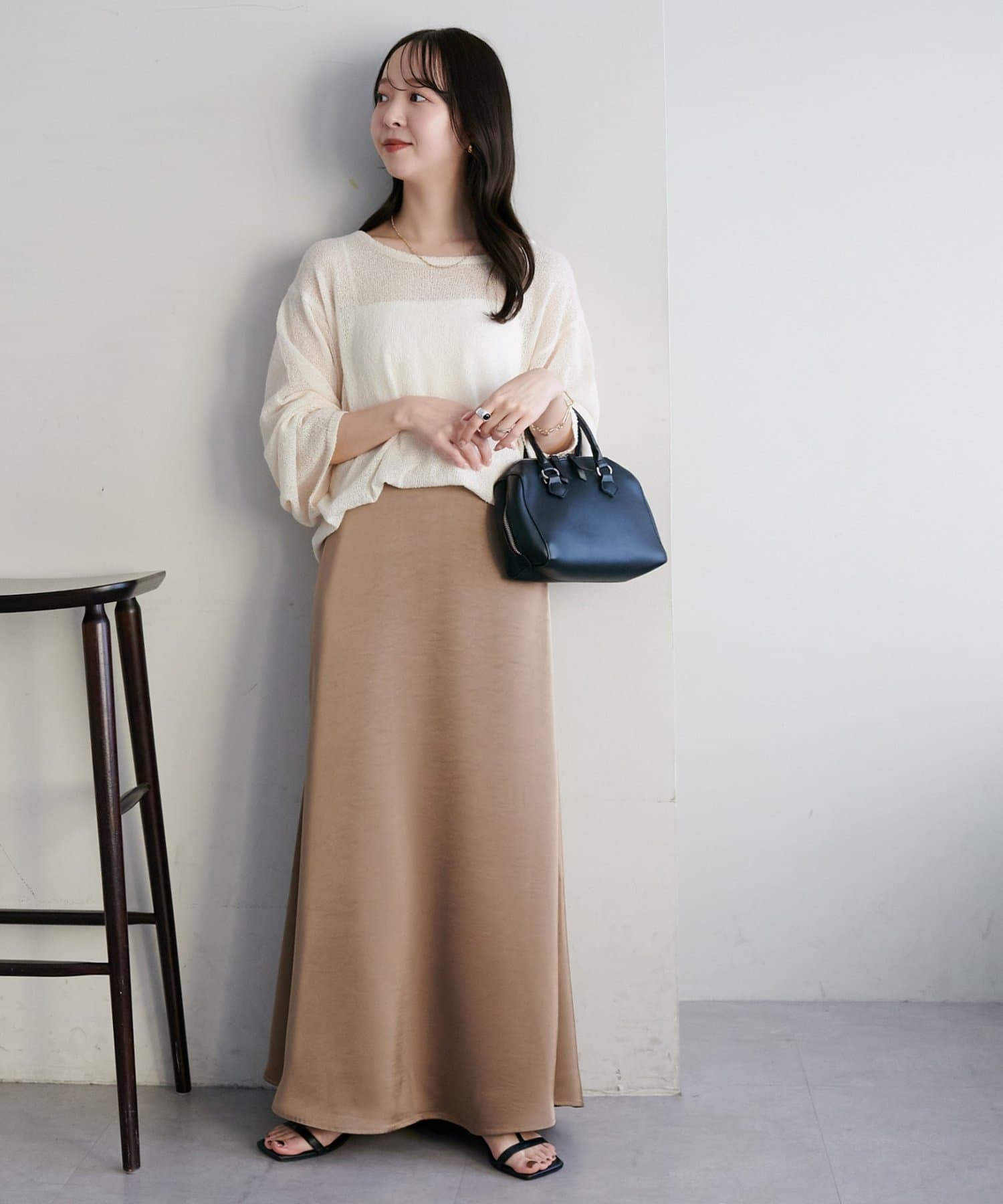 ・上品なツヤ感が特徴的なサテンスカート。