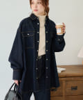 落ち着いた色味のブラックやネイビーもスナップボタンになっとぃることで華やかさがプラスされます!