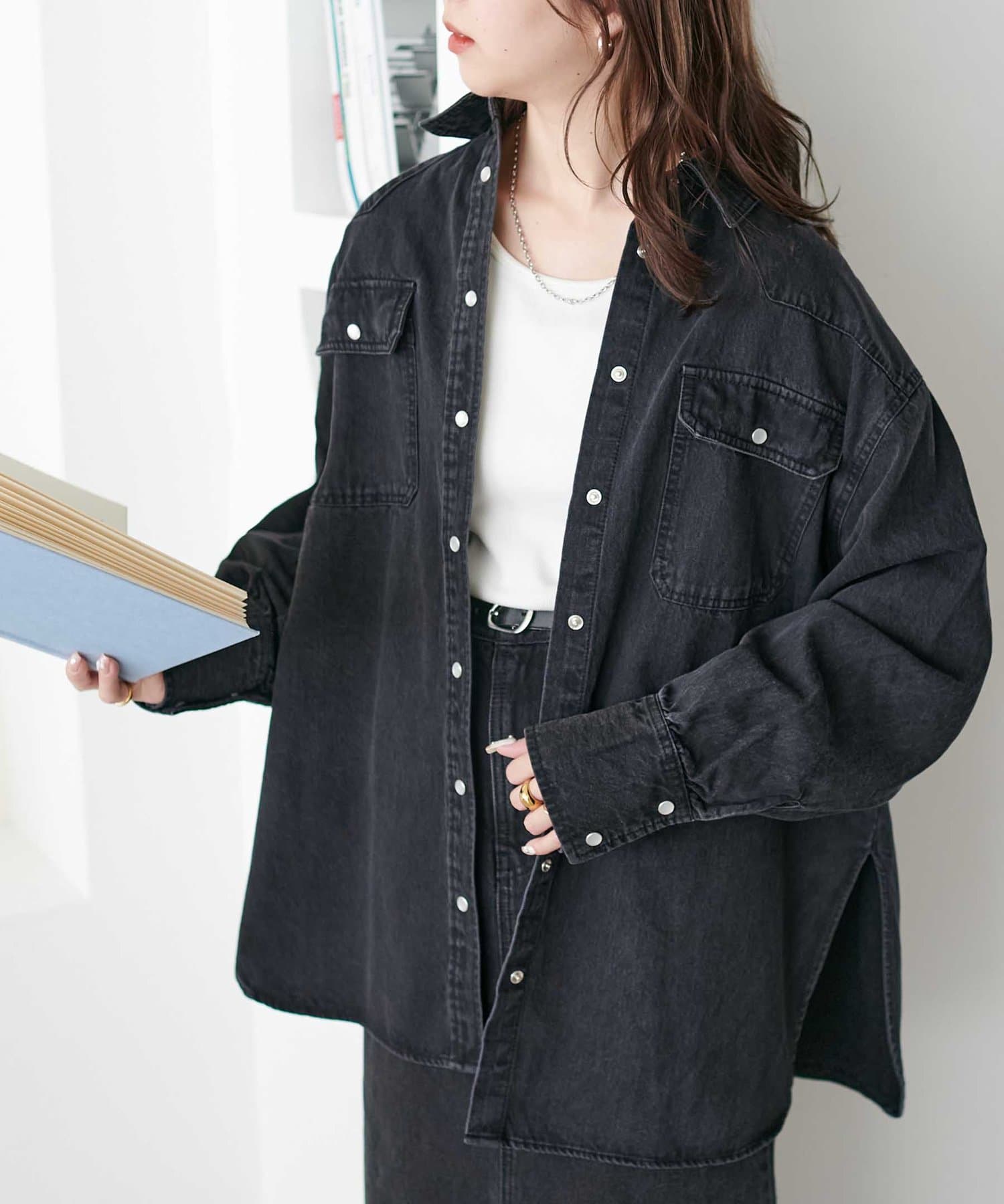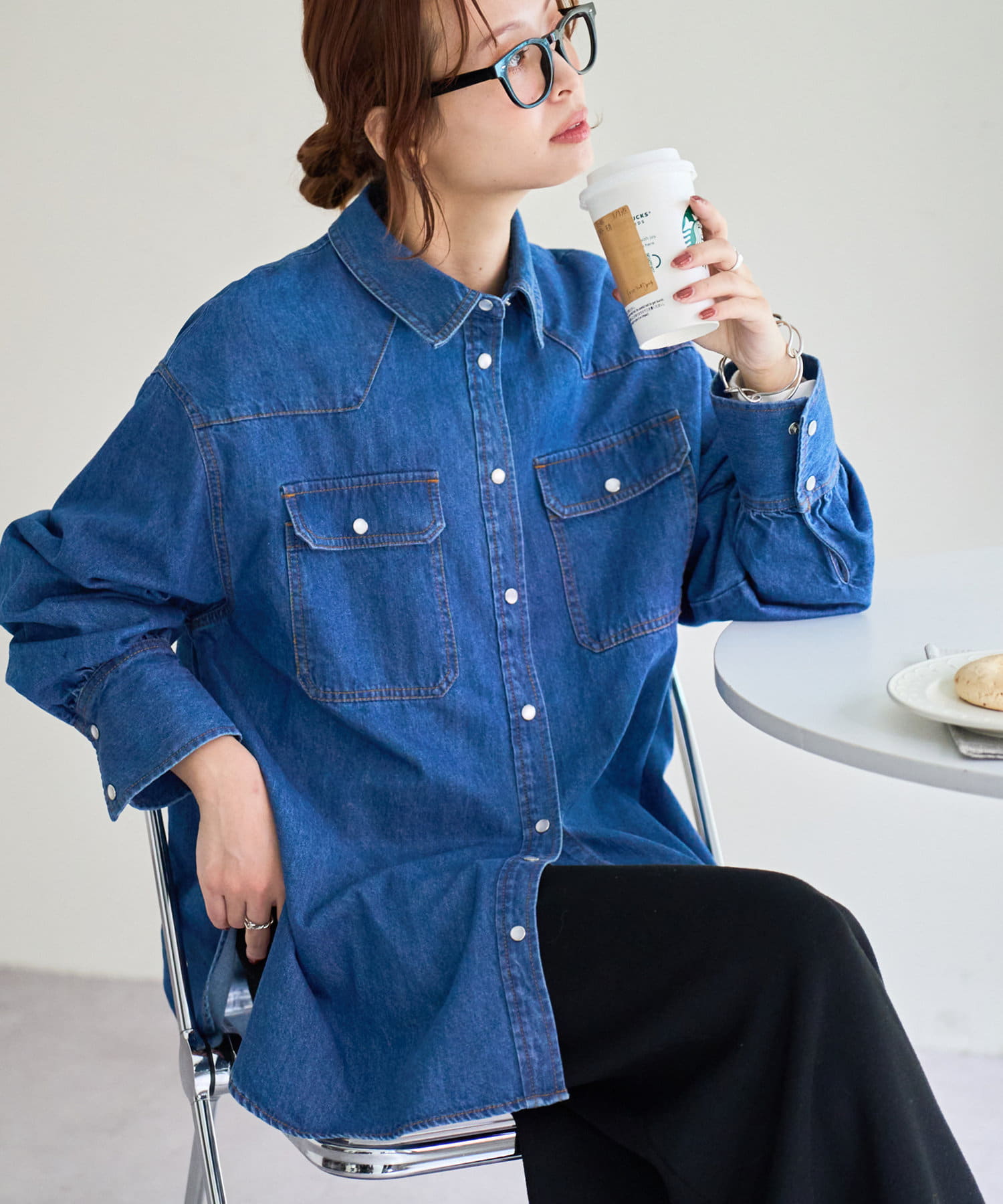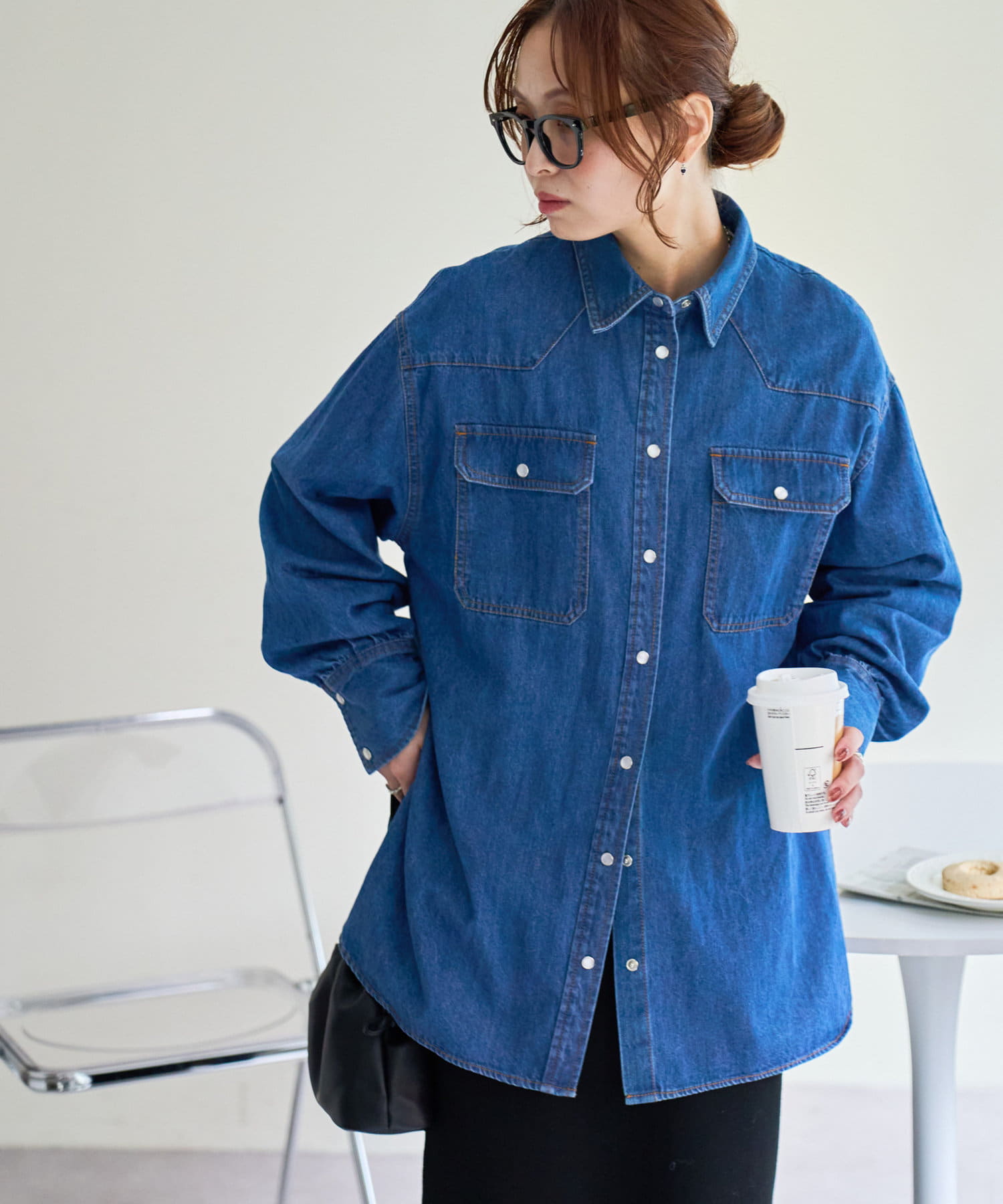 166cmスタッフ:開けても閉じても様になる着回し力抜群のデニムシャツ!