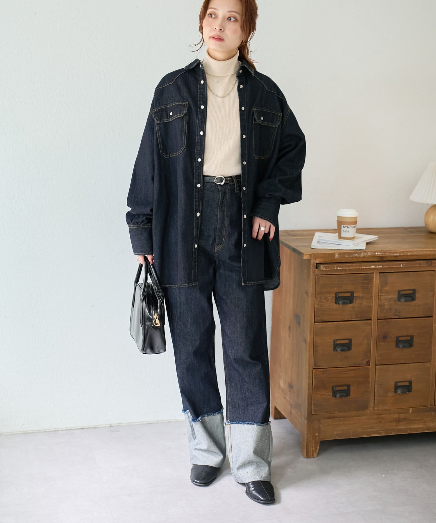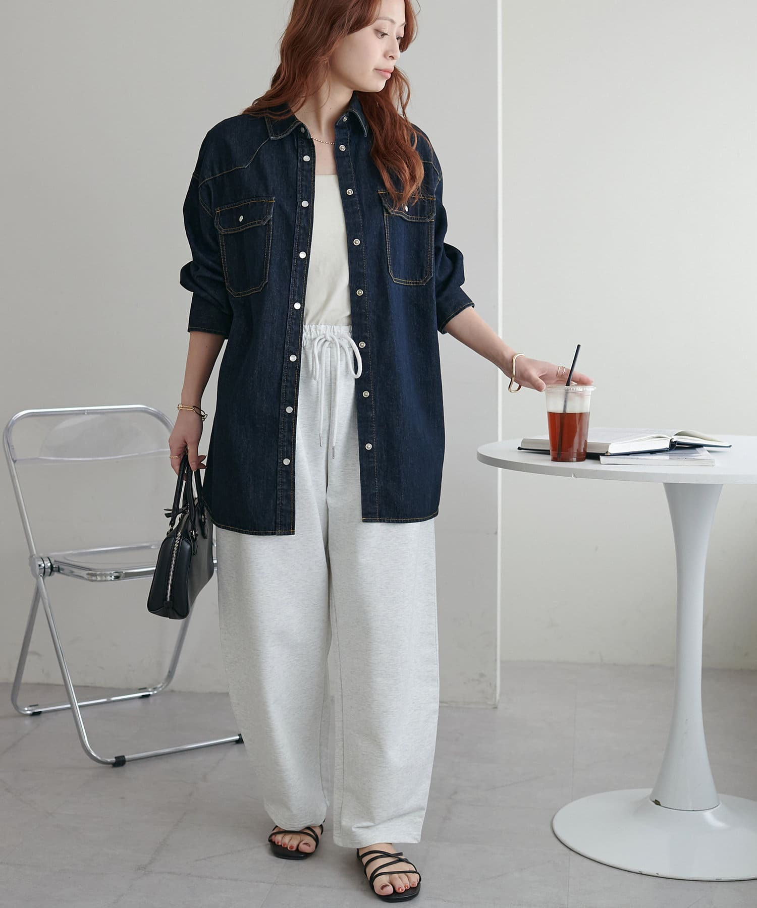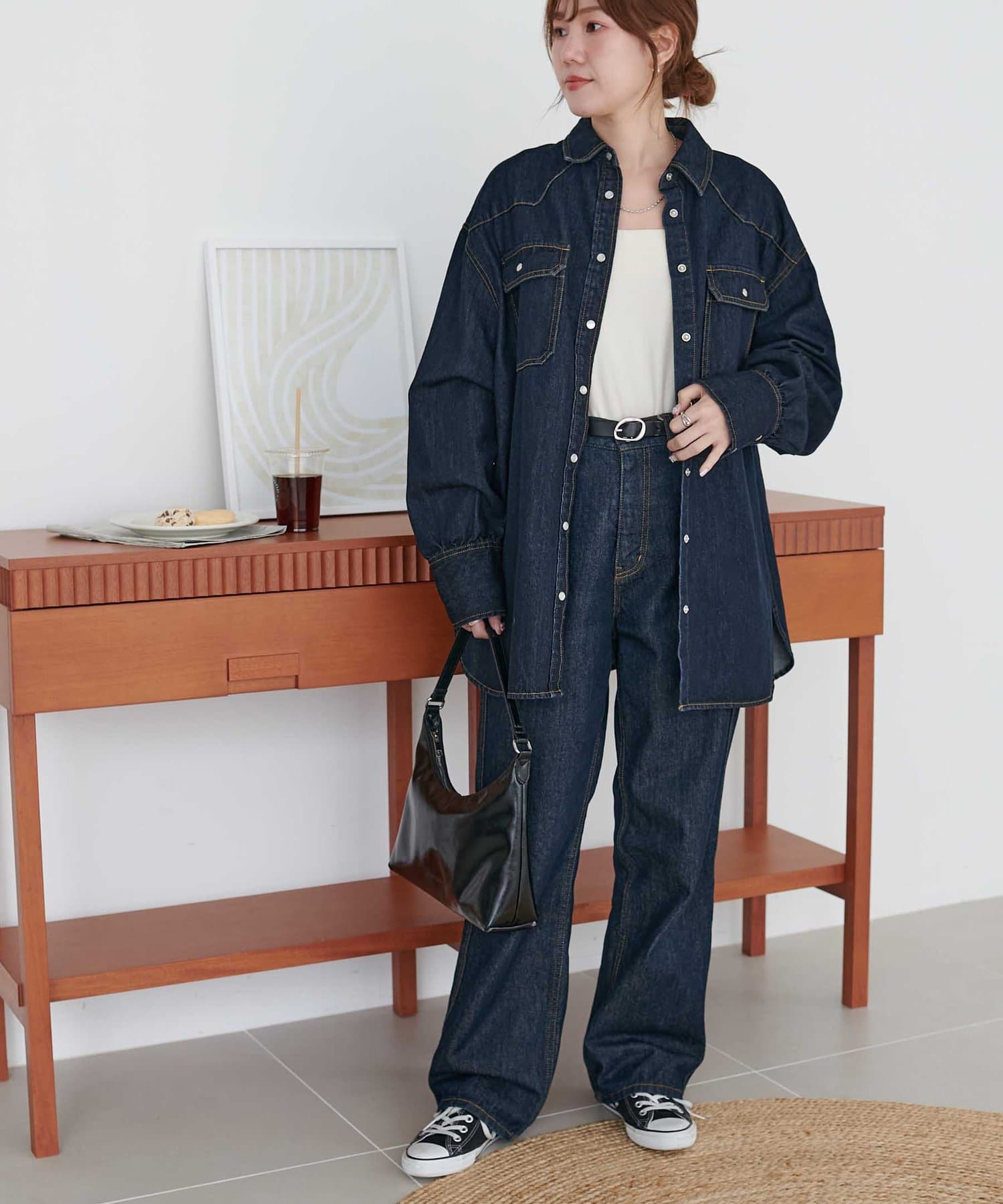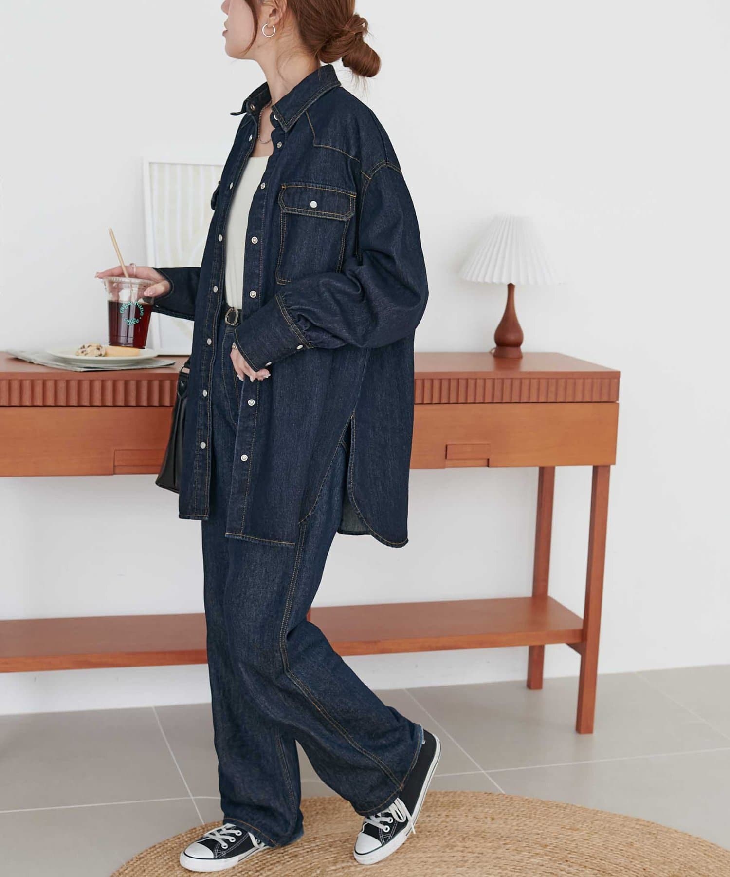 スタッフさんのようにロールアップのデニムと合わせてセットアップできます!
