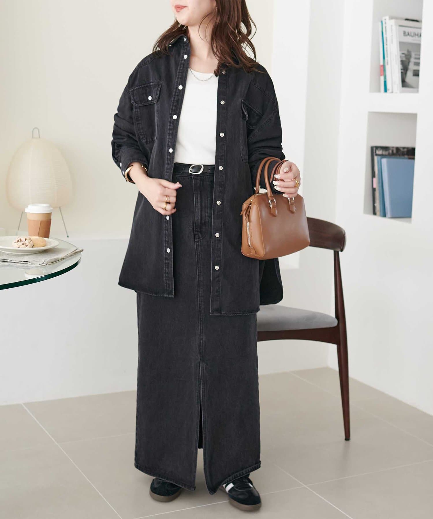 デニムアイテムとのセットアップやTシャツと合わせたカジュアルコーデからキャミワンピースやナロースカートと合わせた大人カジュアルコーデまで!