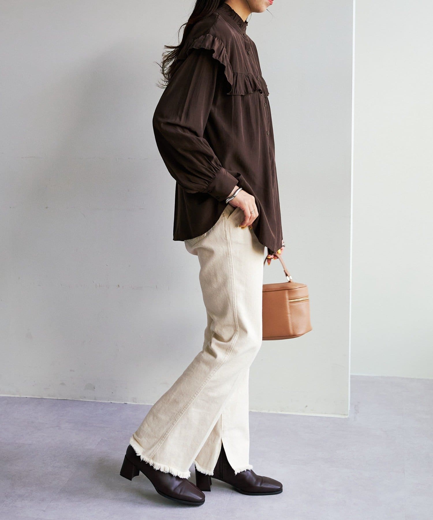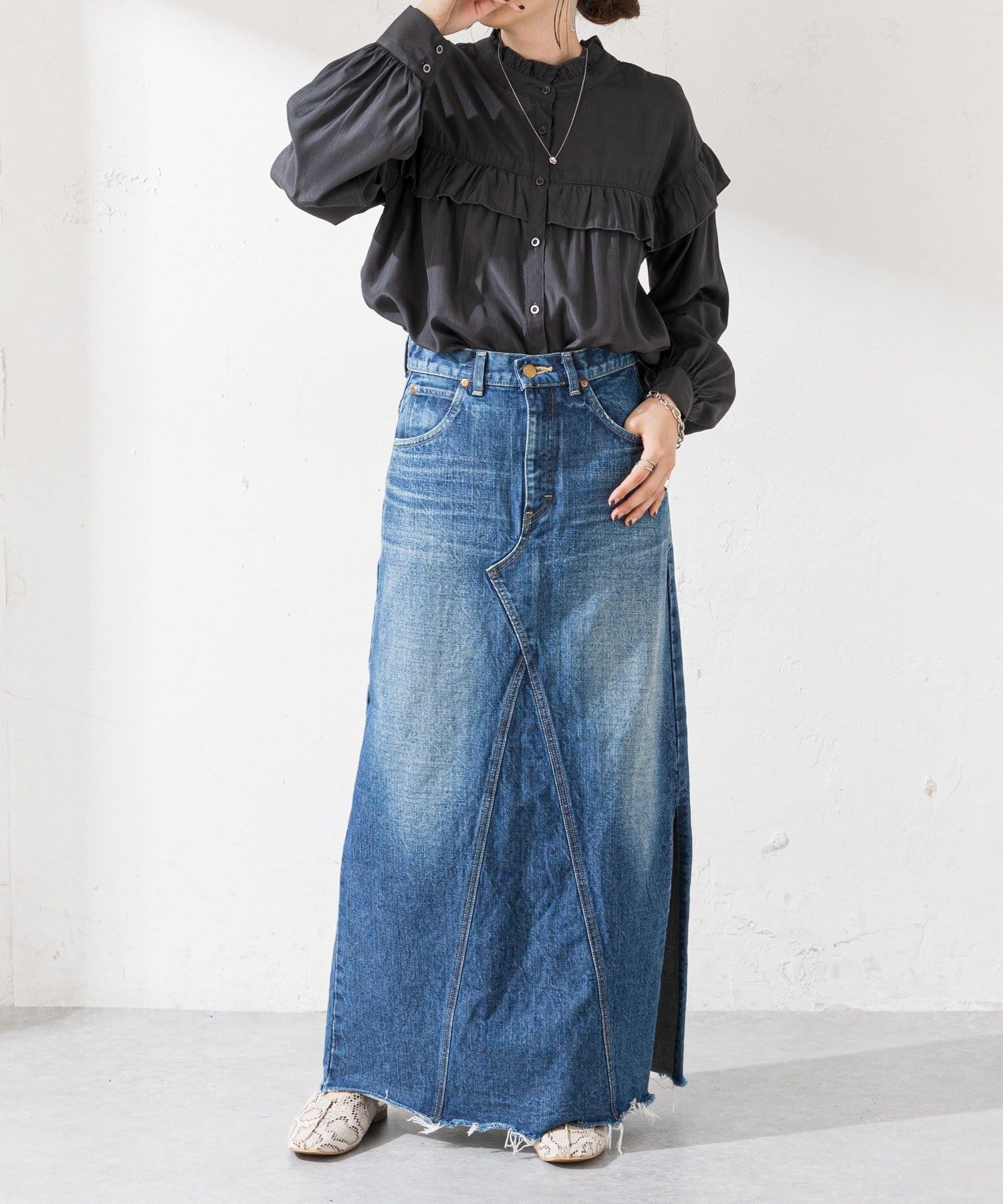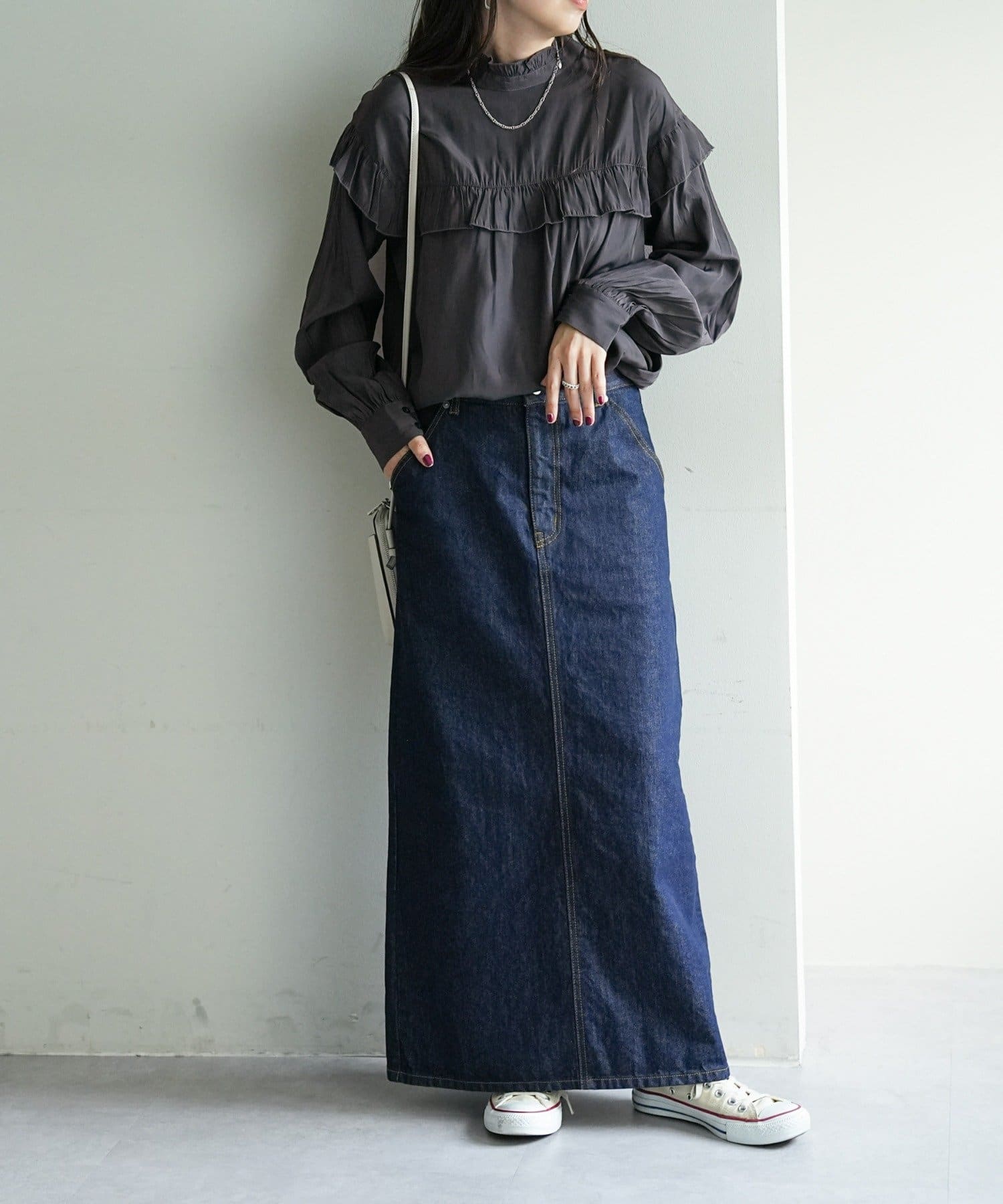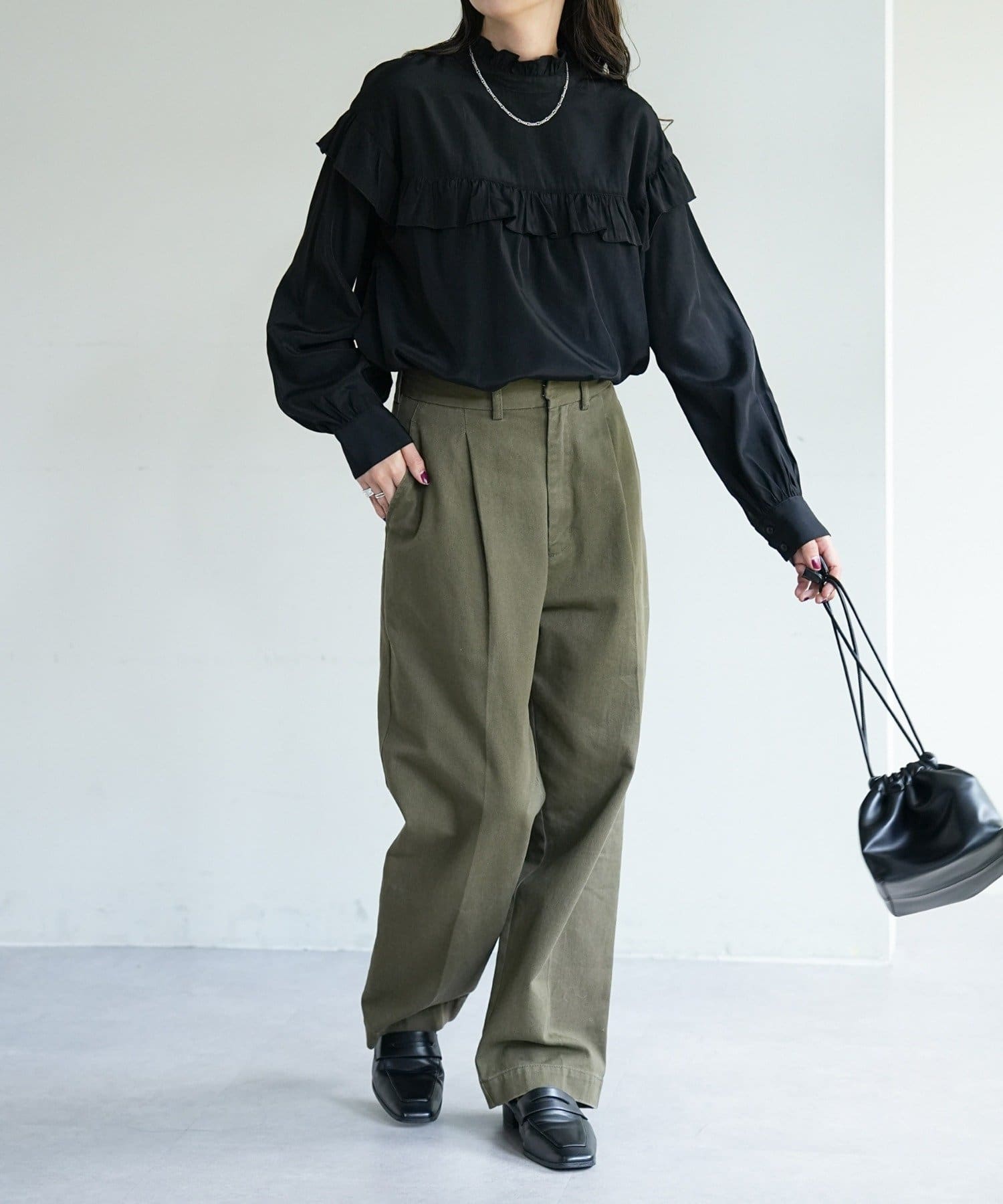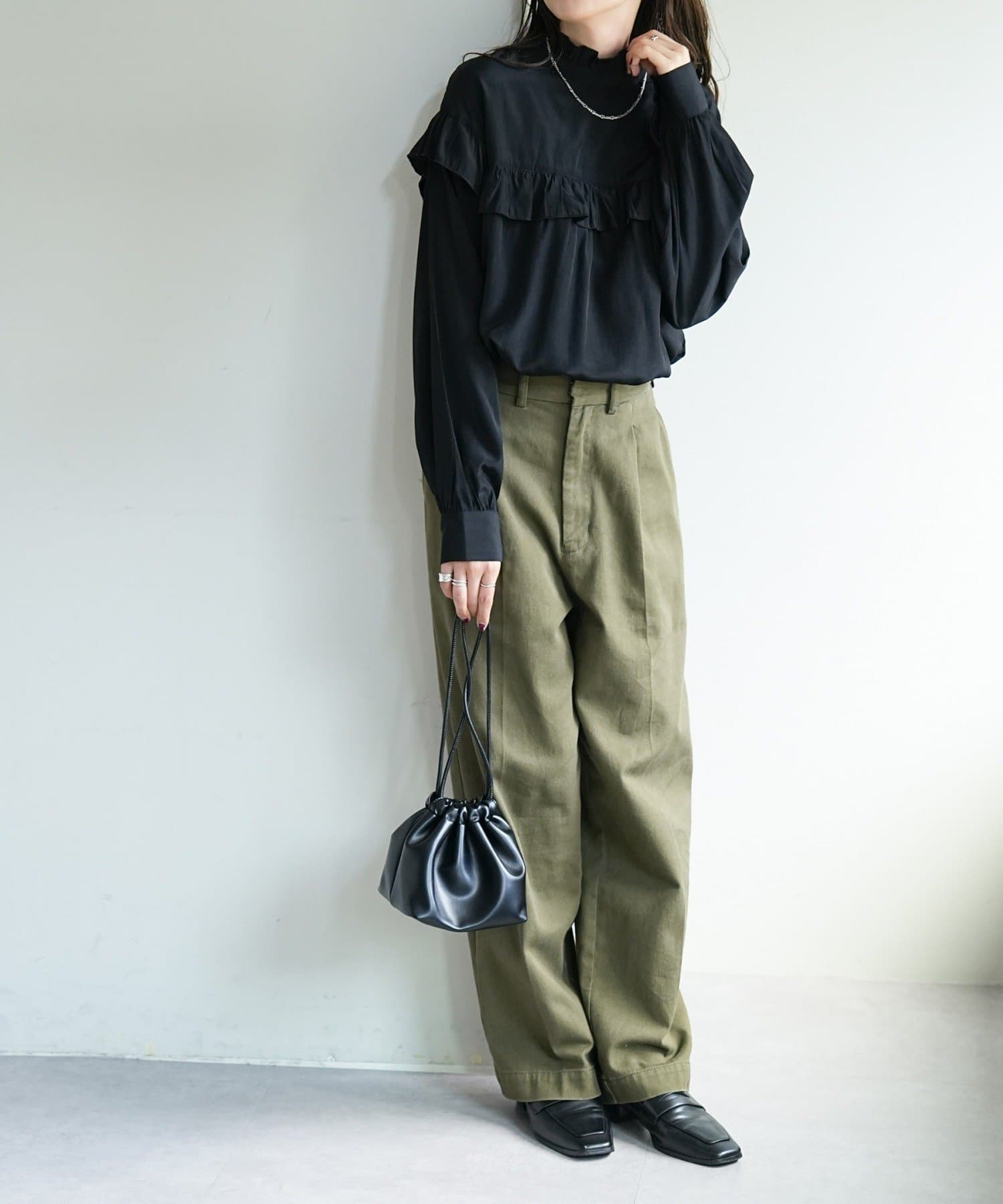 ・デニムやツイル素材のパンツ、ロングスカートと合わせて女性らしく楽しめる