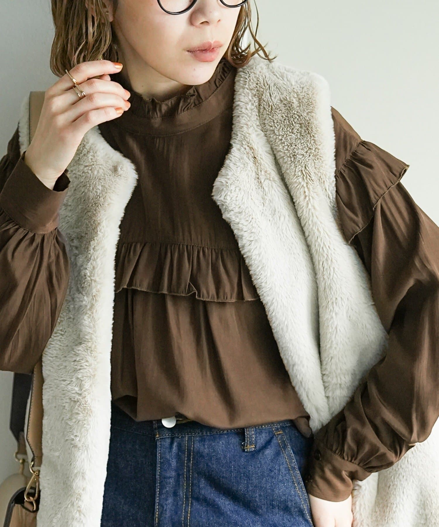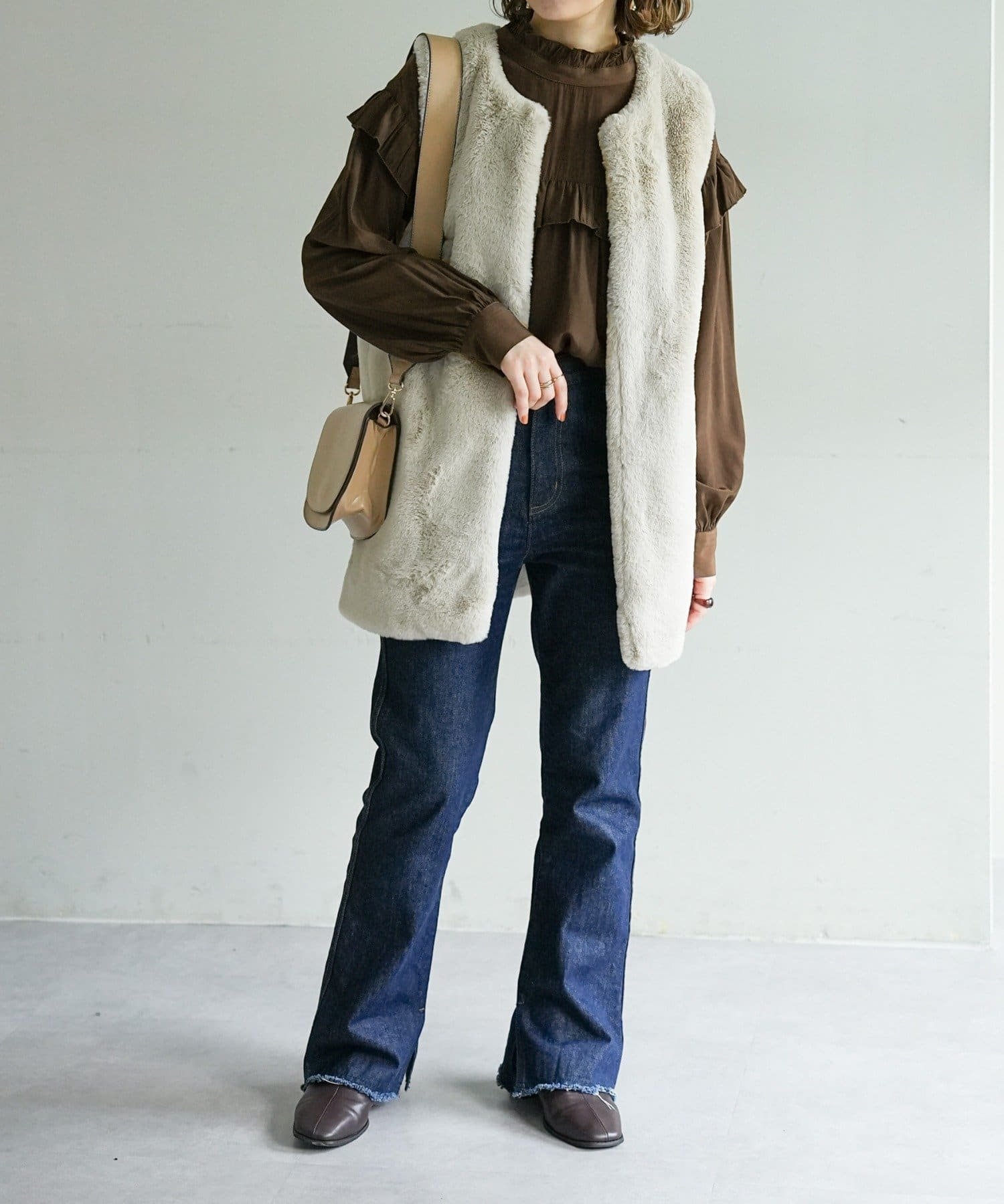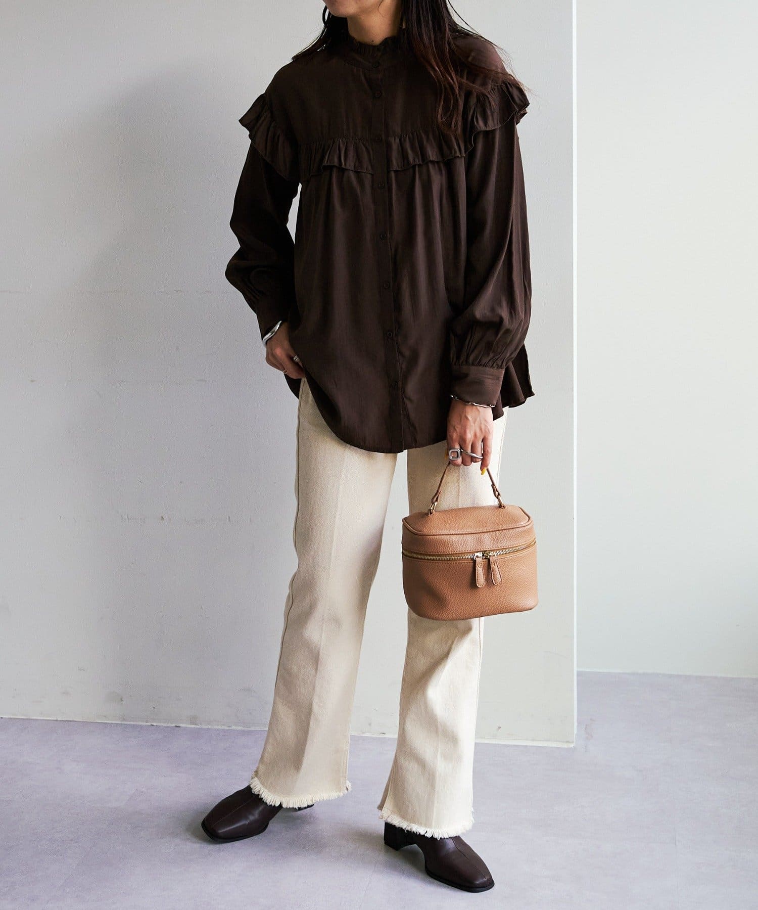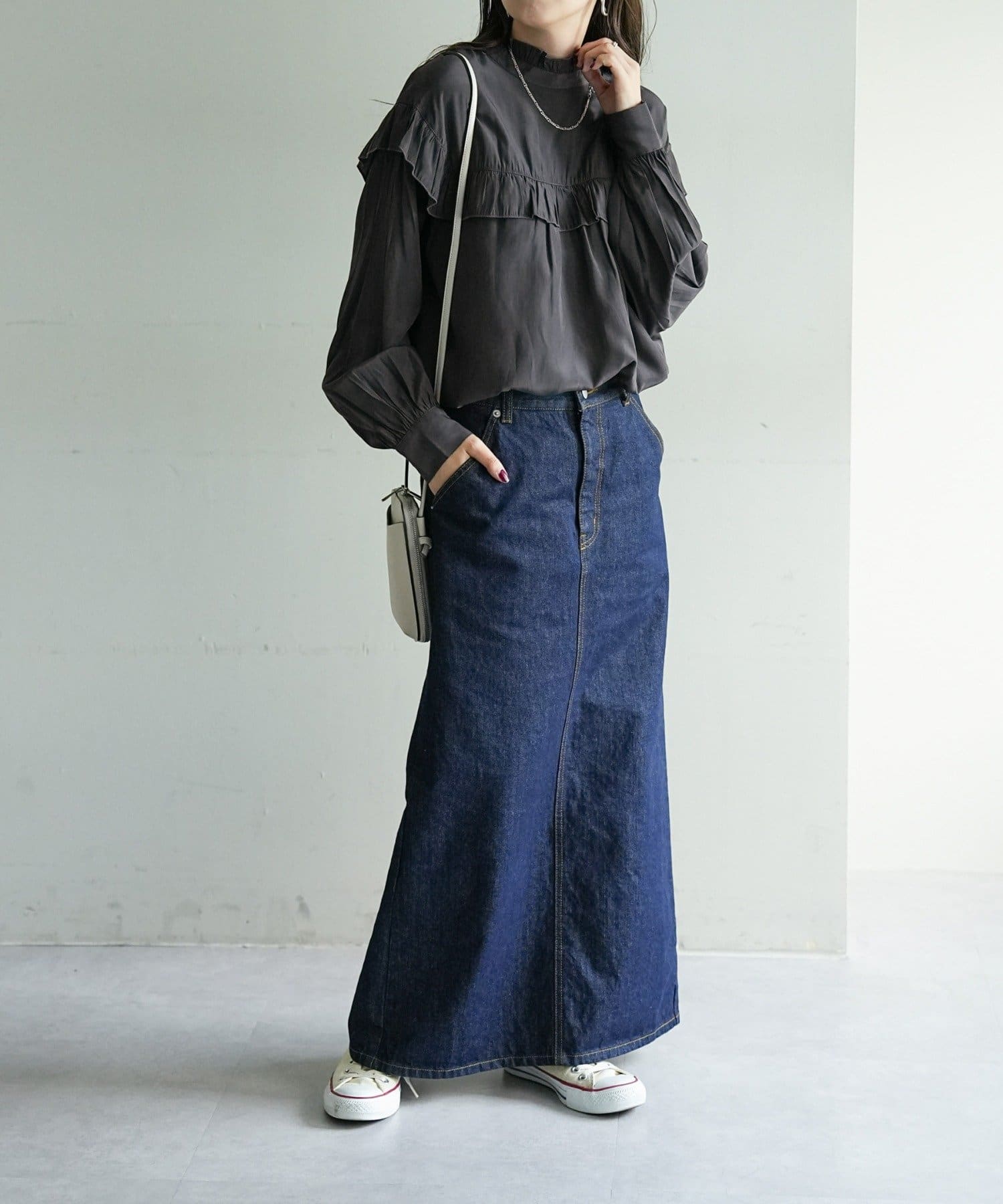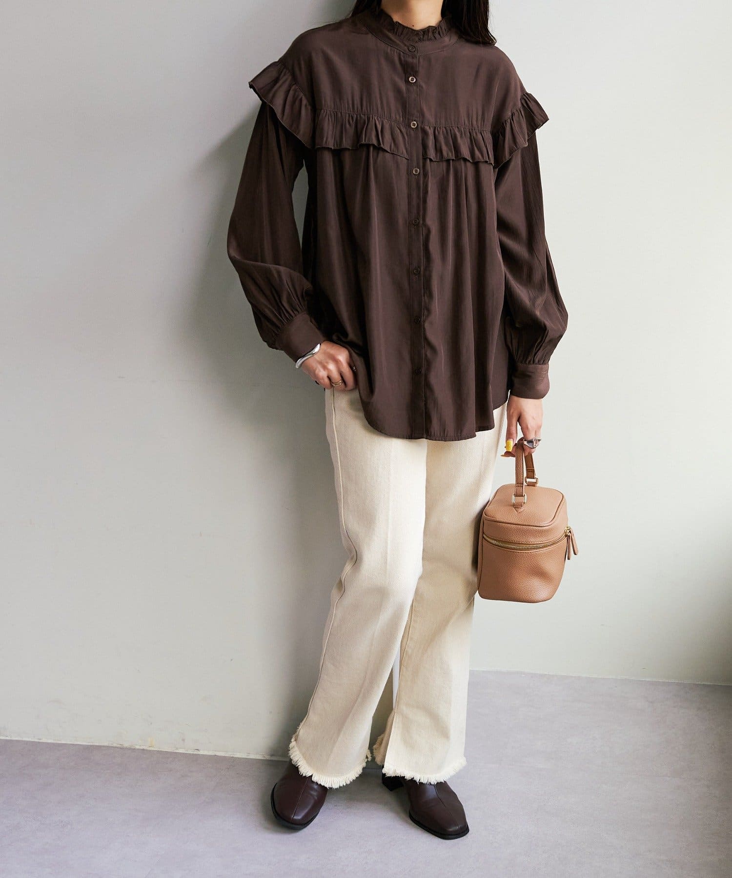 ・デニムやツイル素材のパンツ、ロングスカートと合わせて女性らしく楽しめる